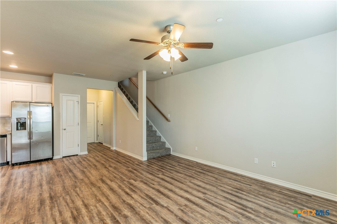 This is thoughtfully designed townhome where bedrooms are situated upstairs, and living spaces are downstairs. Enjoy the perks of a one-car garage, outdoor storage, covered patio, and fenced yard. The primary bedroom comes complete with its bathroom and a walk-in closet, providing comfort and privacy. One additional bedroom and loft share a bathroom with a double vanity for added convenience. The kitchen features stainless steel appliances and granite countertops, and upstairs laundry adds to the overall efficiency of this modern living space. Welcome to the perfect blend of style and practicality.