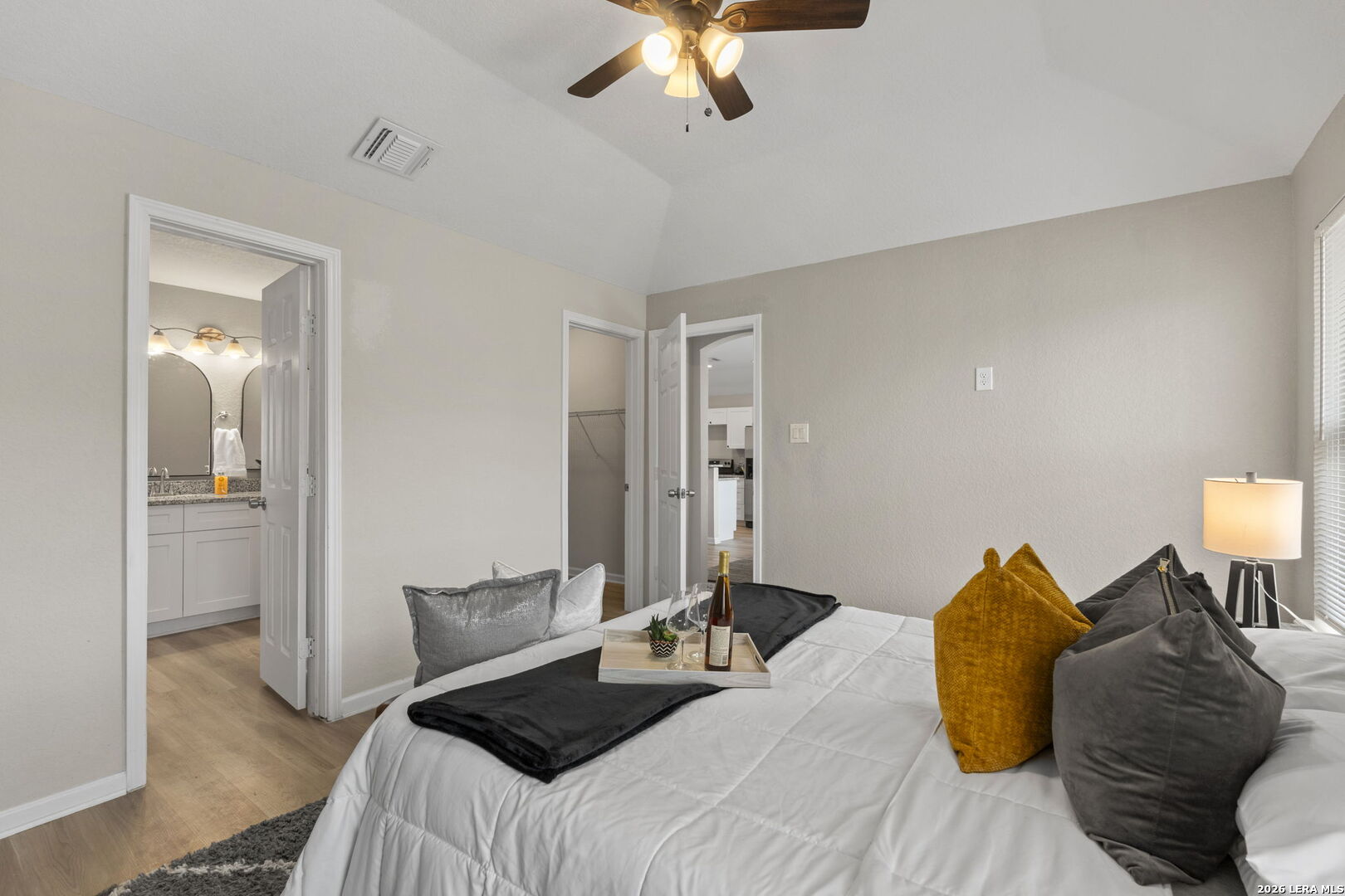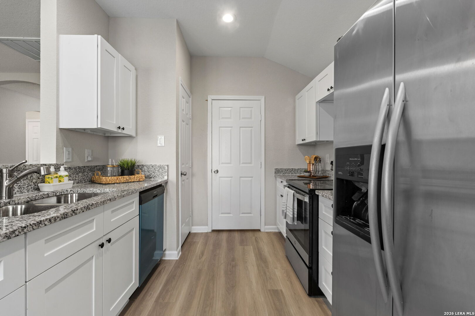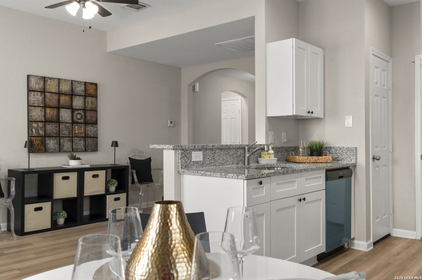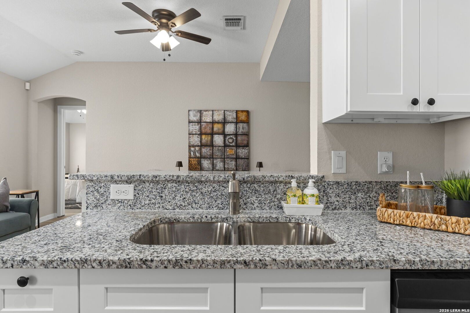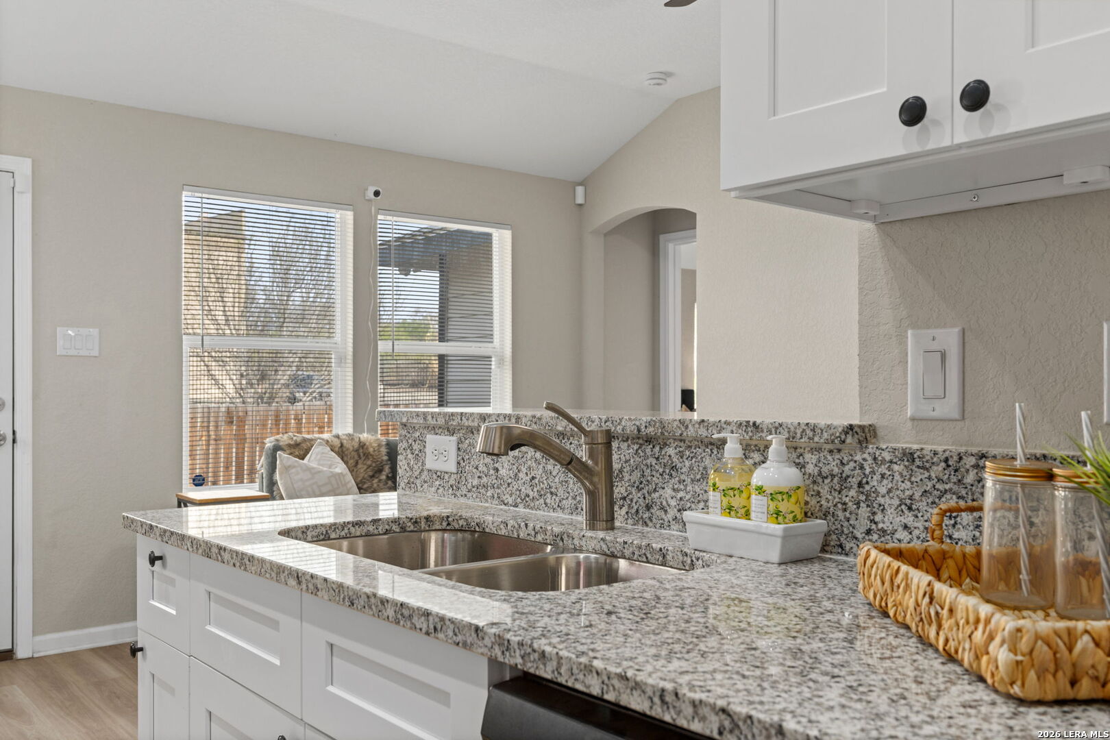 Charming home built in 2021 and gently lived in. This 3 bedroom, 2 bath single story offers high ceilings in the living area and primary bedroom, giving the entire home an open and airy feel. The kitchen features granite countertops, tile backsplash, stainless steel appliances, and plenty of cabinet and counter space. Both bathrooms have modern finishes that make the home feel fresh and updated. Luxury vinyl plank flooring runs throughout the entire home with no carpet at all, making it both stylish