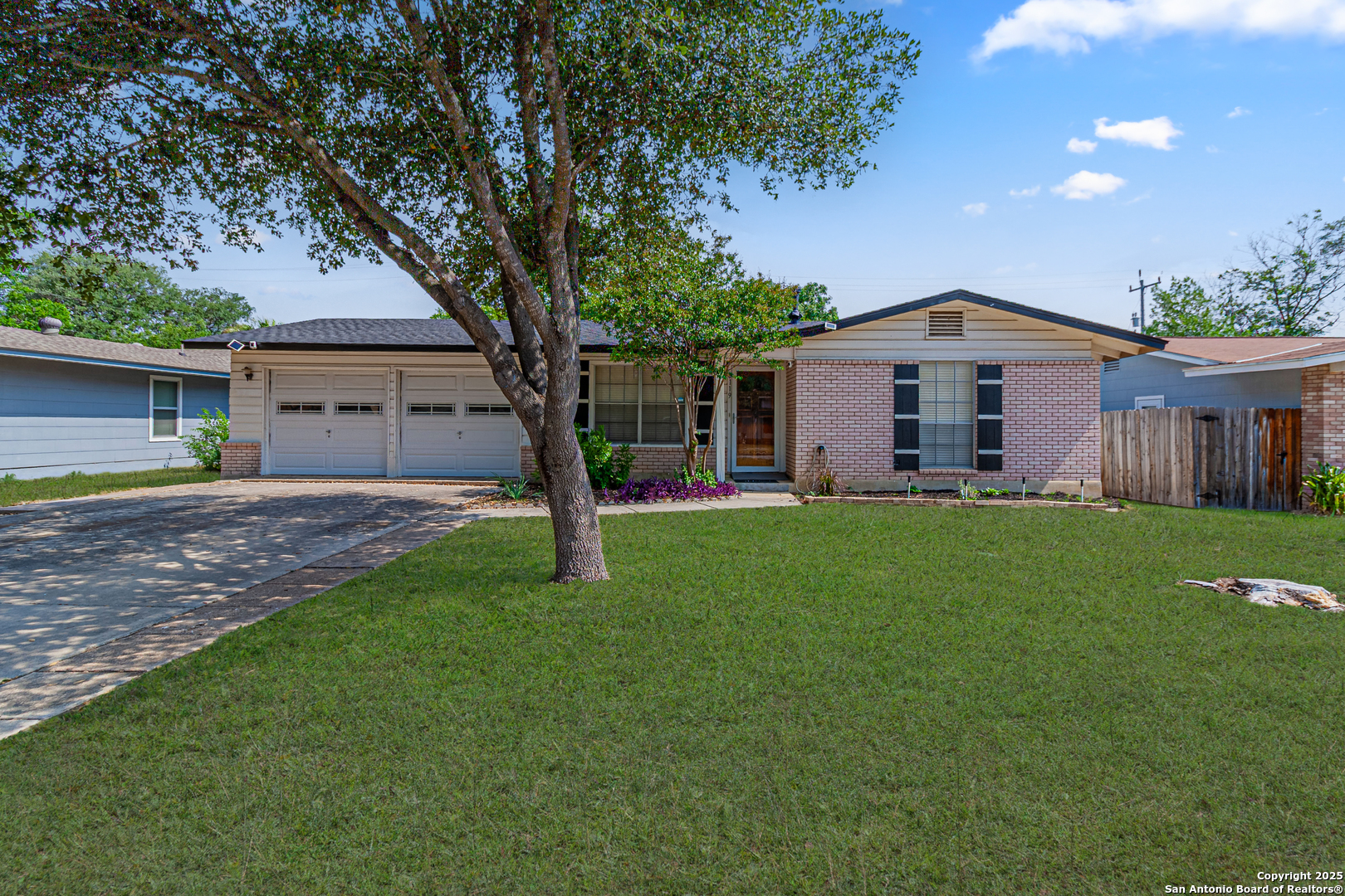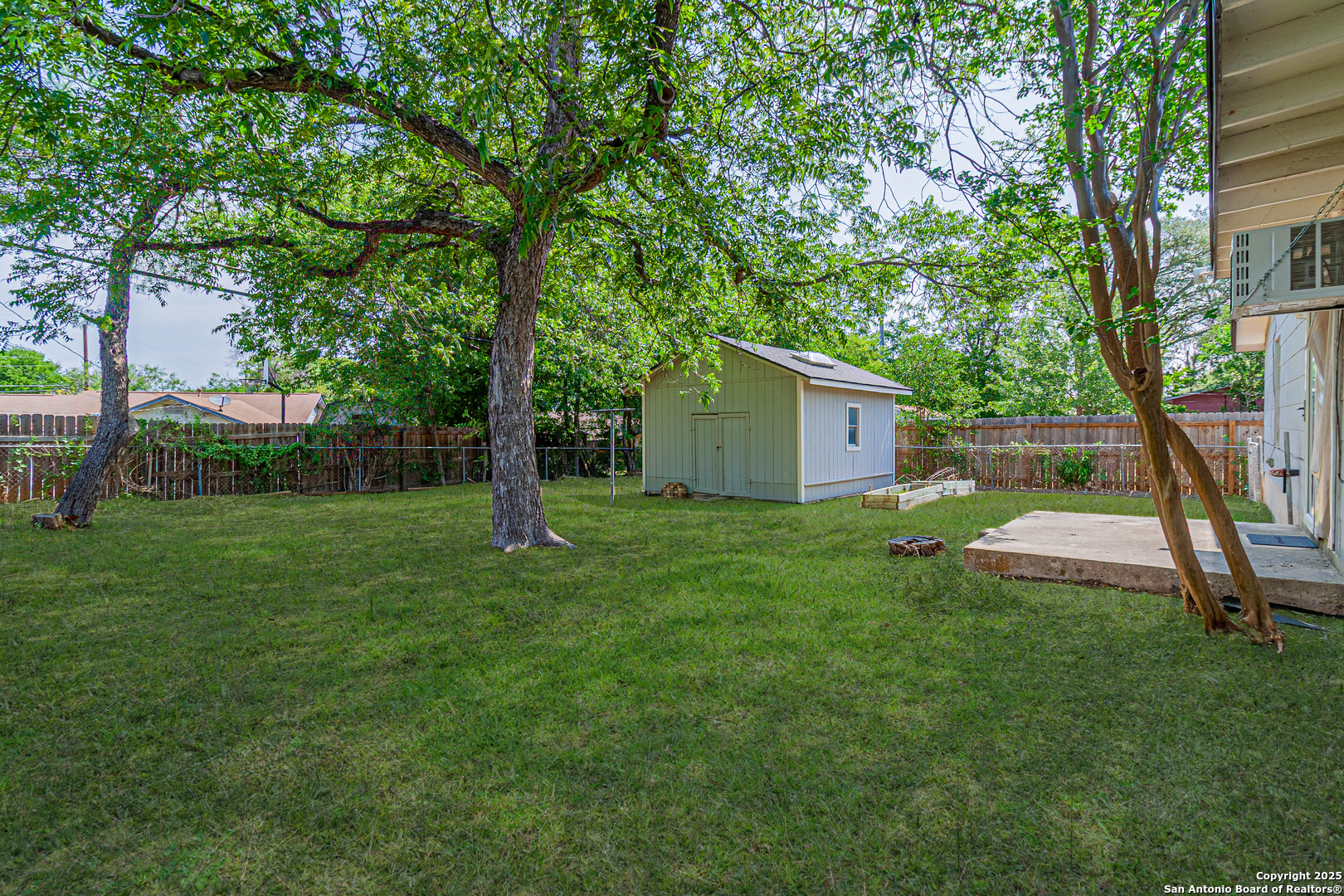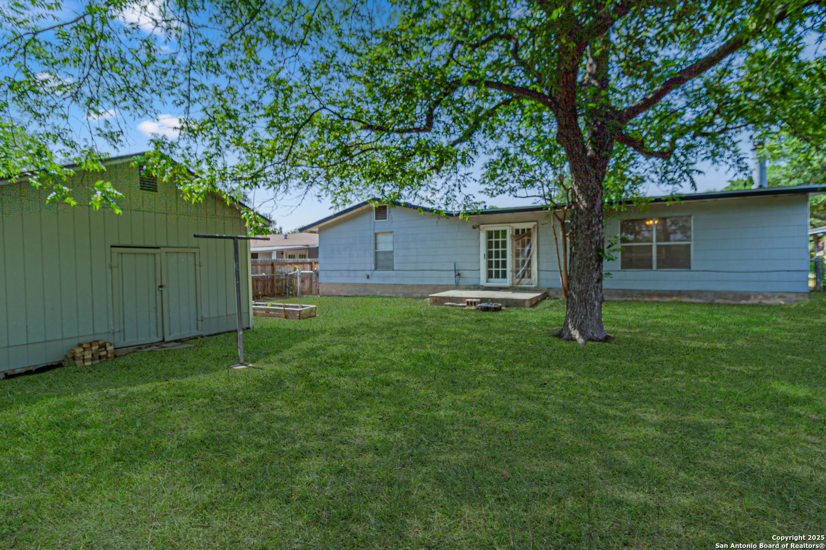 Discover this thoughtfully updated 4-bedroom, 2-bath home nestled in a well-established neighborhood. Located on a peaceful cul-de-sac, this inviting property features a spacious living area with classic parquet wood flooring and an oversized den with a cozy fireplace and brand-new plush carpeting-perfect for relaxing or entertaining. The kitchen offers ample cabinet space and has been enhanced with brand-new luxury vinyl plank flooring, which extends into both bathrooms for a cohesive, modern look. Fresh interior paint throughout the home adds a bright and clean aesthetic. Additional features include a smart thermostat and smart front door lock for added convenience, energy efficiency, and peace of mind. The secondary bathroom has been upgraded with an ADA-accessible shower, providing extra functionality. Step outside to a serene backyard retreat shaded by mature trees, complete with a large storage shed for extra space. Recent improvements include a new roof installed in Summer 2024, ensuring lasting value. Whether you're searching for a warm and comfortable family home or a smart long-term investment, this property is a fantastic opportunity-ideally located with quick access to the Medical Center and just minutes from Lackland AFB.
