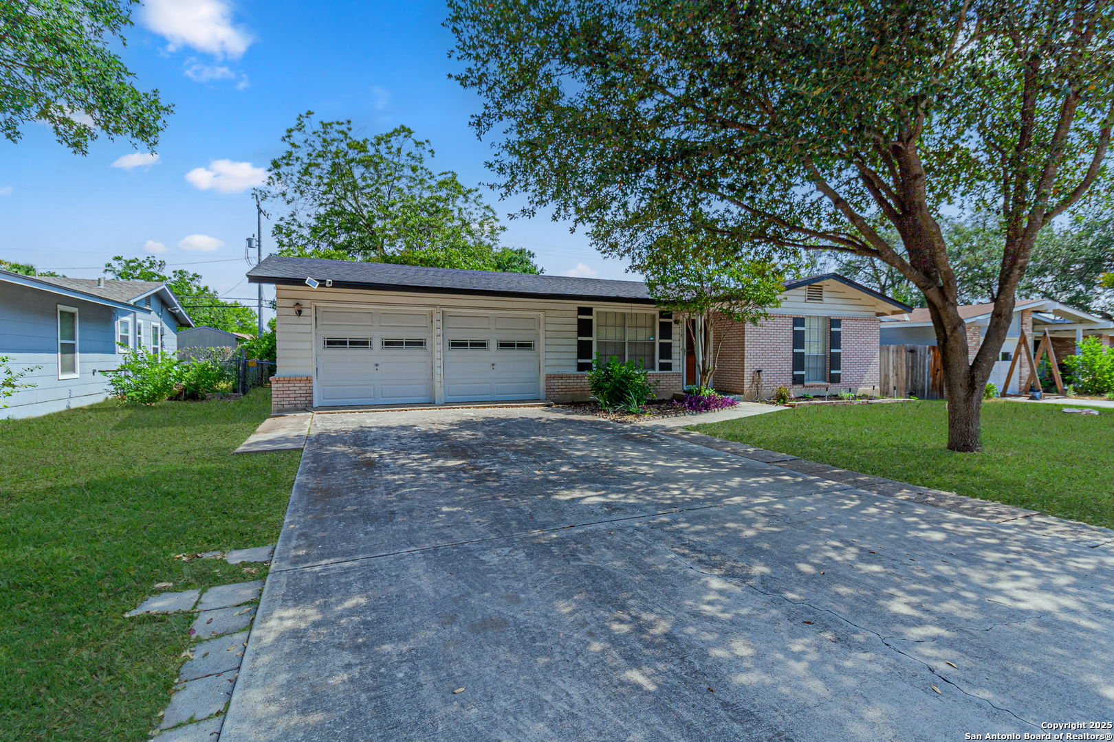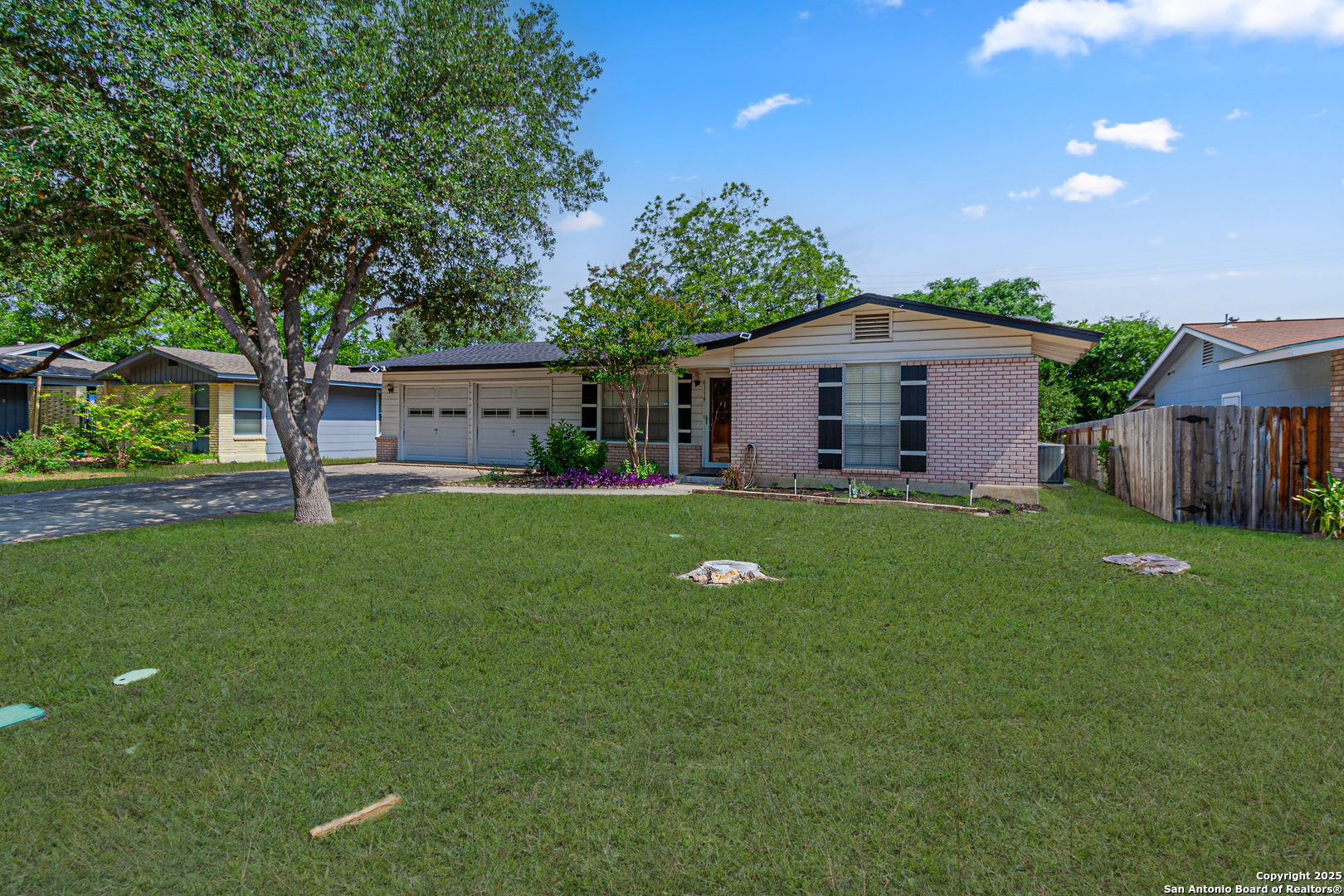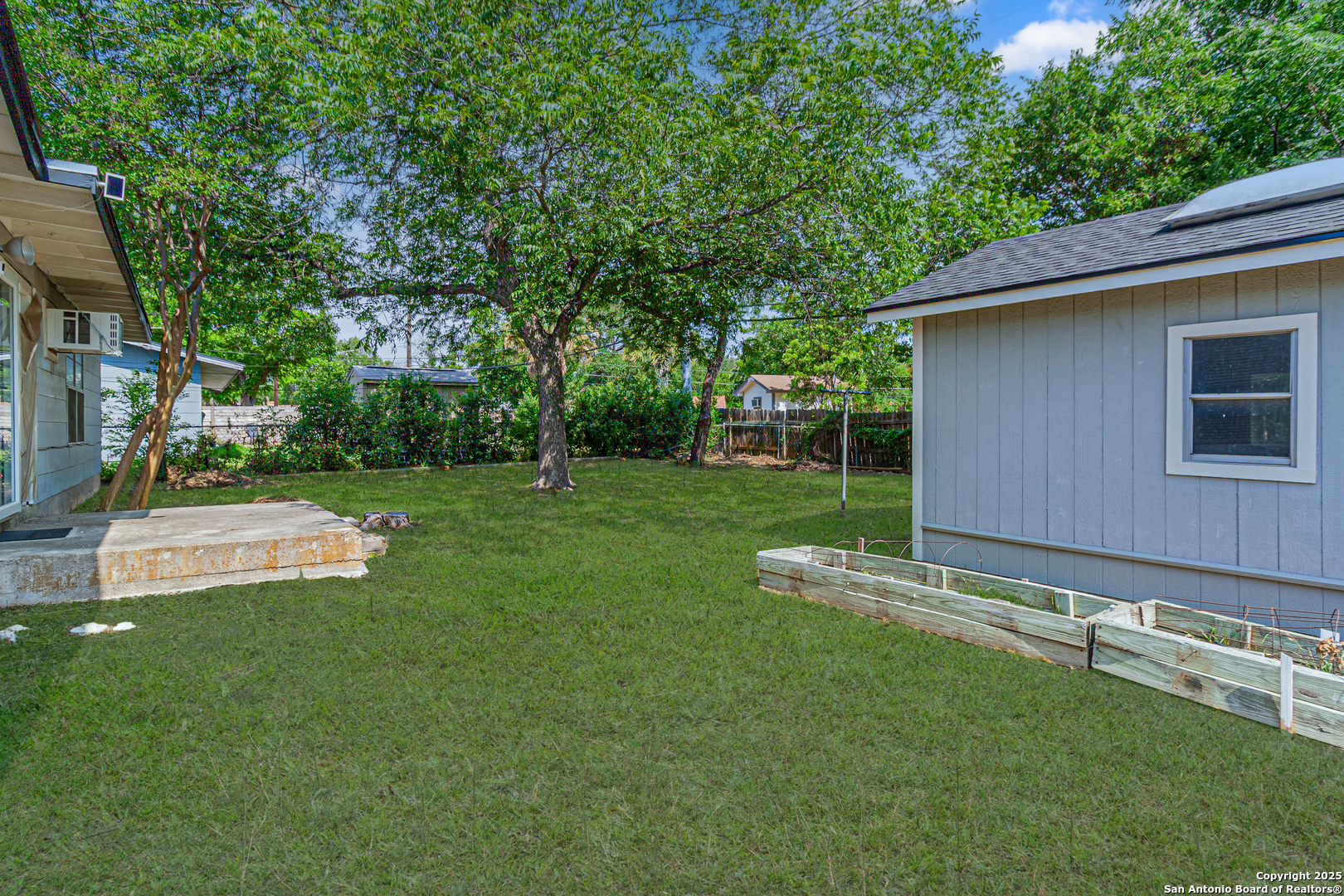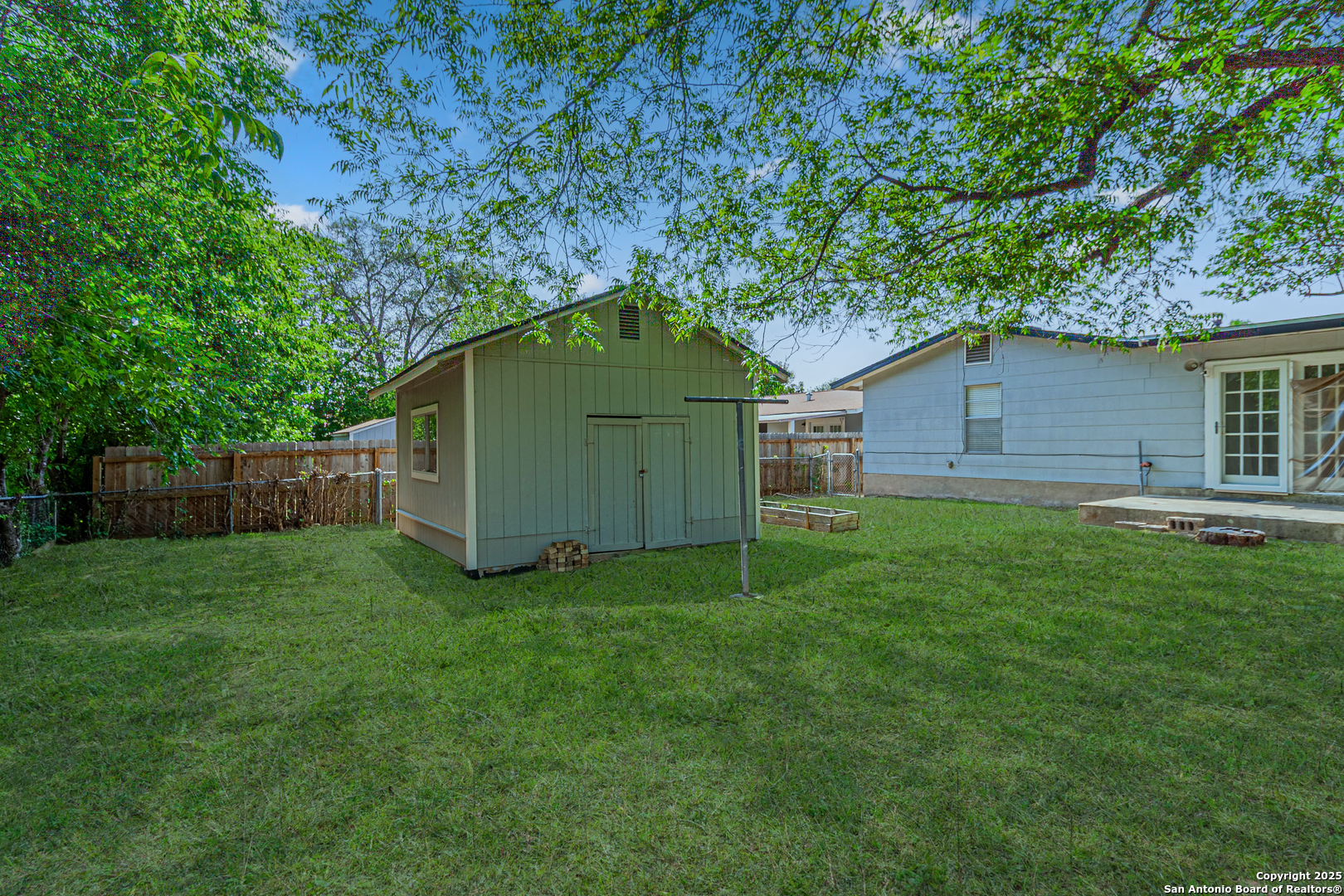 Discover this thoughtfully updated 4-bedroom, 2-bath home nestled in a well-established neighborhood. Located on a peaceful cul-de-sac, this inviting property features a spacious living area with classic parquet wood flooring and an oversized den with a cozy fireplace and brand-new plush carpeting-perfect for relaxing or entertaining. The kitchen offers ample cabinet space and has been enhanced with brand-new luxury vinyl plank flooring, which extends into both bathrooms for a cohesive, modern look. Fresh interior paint throughout the home adds a bright and clean aesthetic. Additional features include a smart thermostat and smart front door lock for added convenience, energy efficiency, and peace of mind. The secondary bathroom has been upgraded with an ADA-accessible shower, providing extra functionality. Step outside to a serene backyard retreat shaded by mature trees, complete with a large storage shed for extra space. Recent improvements include a new roof installed in Summer 2024, ensuring lasting value. Whether you're searching for a warm and comfortable family home or a smart long-term investment, this property is a fantastic opportunity-ideally located with quick access to the Medical Center and just minutes from Lackland AFB.