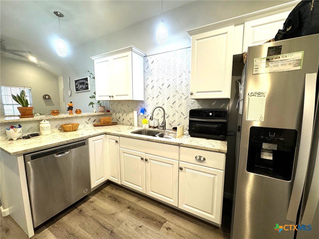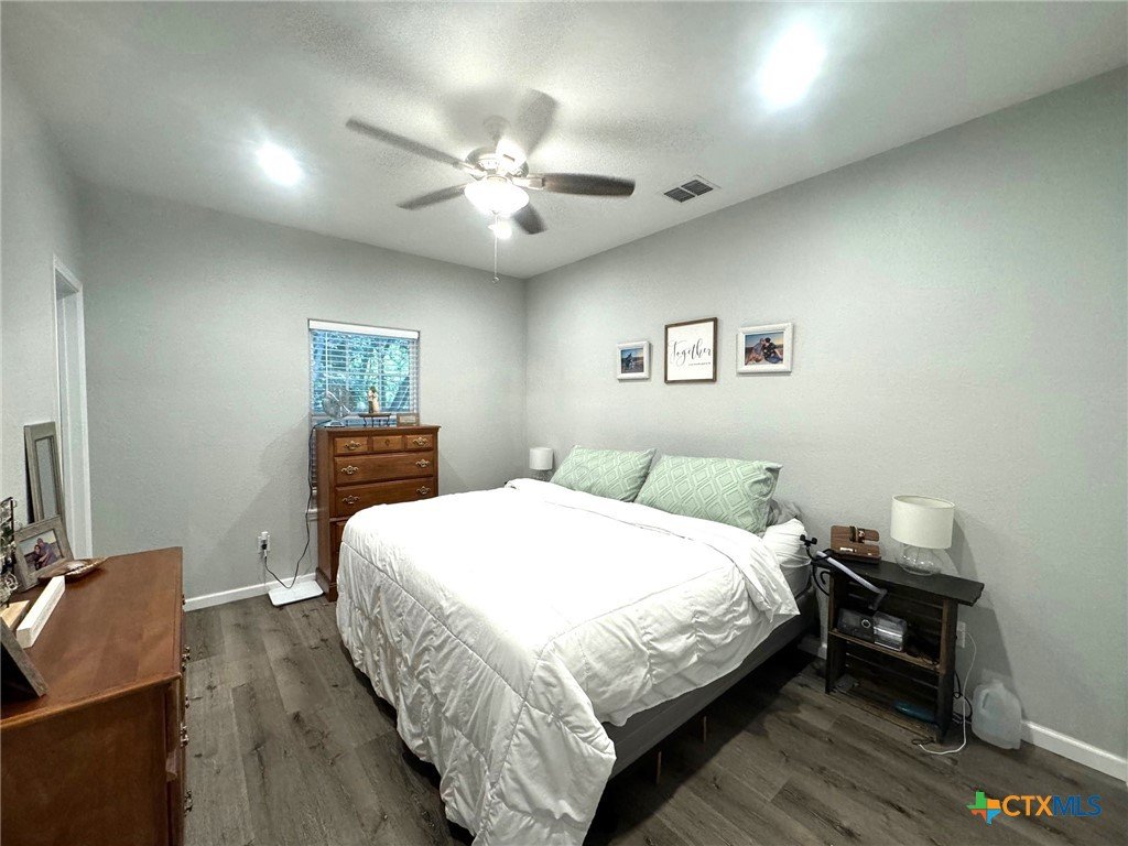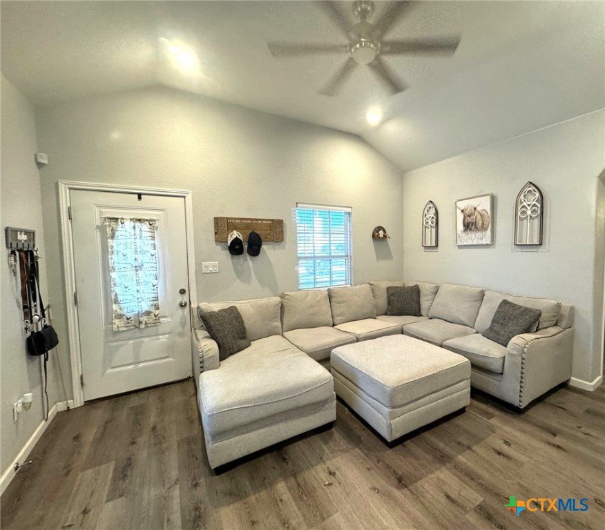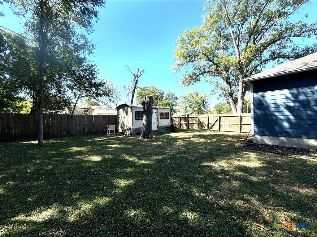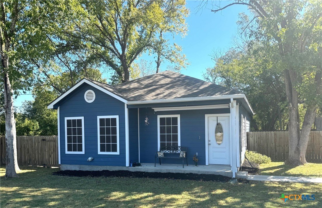 Welcome to your dream retreat! This cute and cozy 2-bedroom, 2-bathroom home boasts an inviting open floor plan with high ceilings that enhance the spacious feel. The kitchen and bathrooms feature elegant granite countertops, while full tile bathtubs add a touch of luxury. Both bedrooms are generously sized, complete with large closets for ample storage. Enjoy the warmth of laminate flooring throughout—no carpet here! Natural light floods the space through numerous windows, creating a bright and cheerful atmosphere. Step outside to find a covered front and rear porch, perfect for relaxing or entertaining. The large, fenced backyard offers plenty of room for outdoor activities, and the oversized concrete driveway ensures convenient parking. A substantial storage building is included, along with beautiful mature shade trees that provide a serene environment. Don’t miss out on this lovely home, ideally situated in a peaceful cul-de-sac!