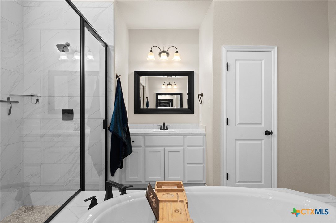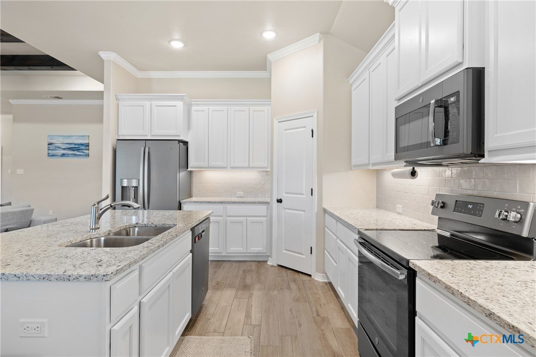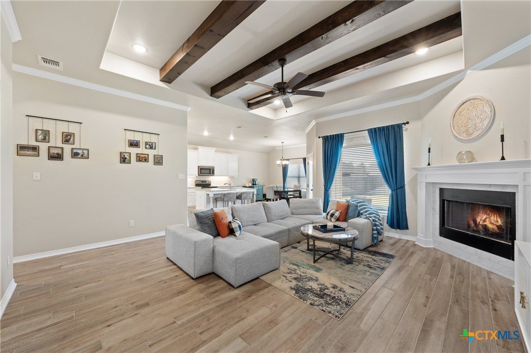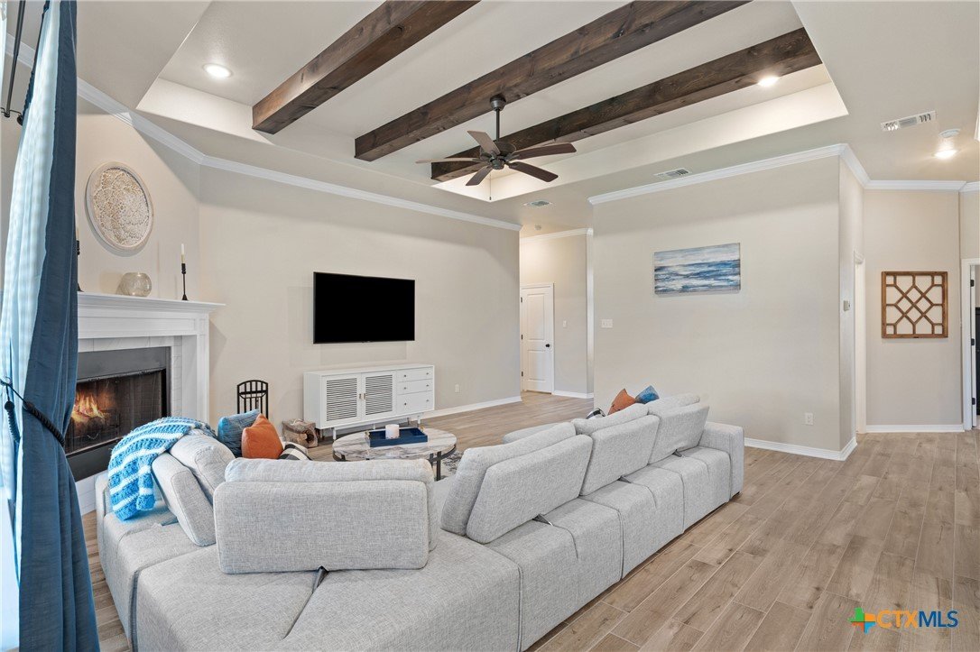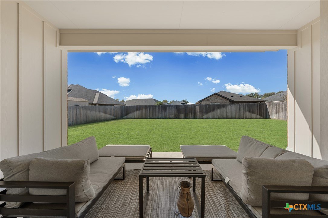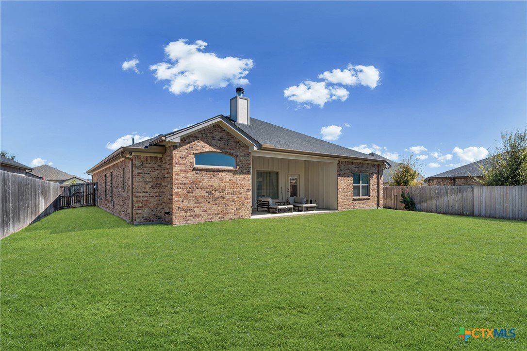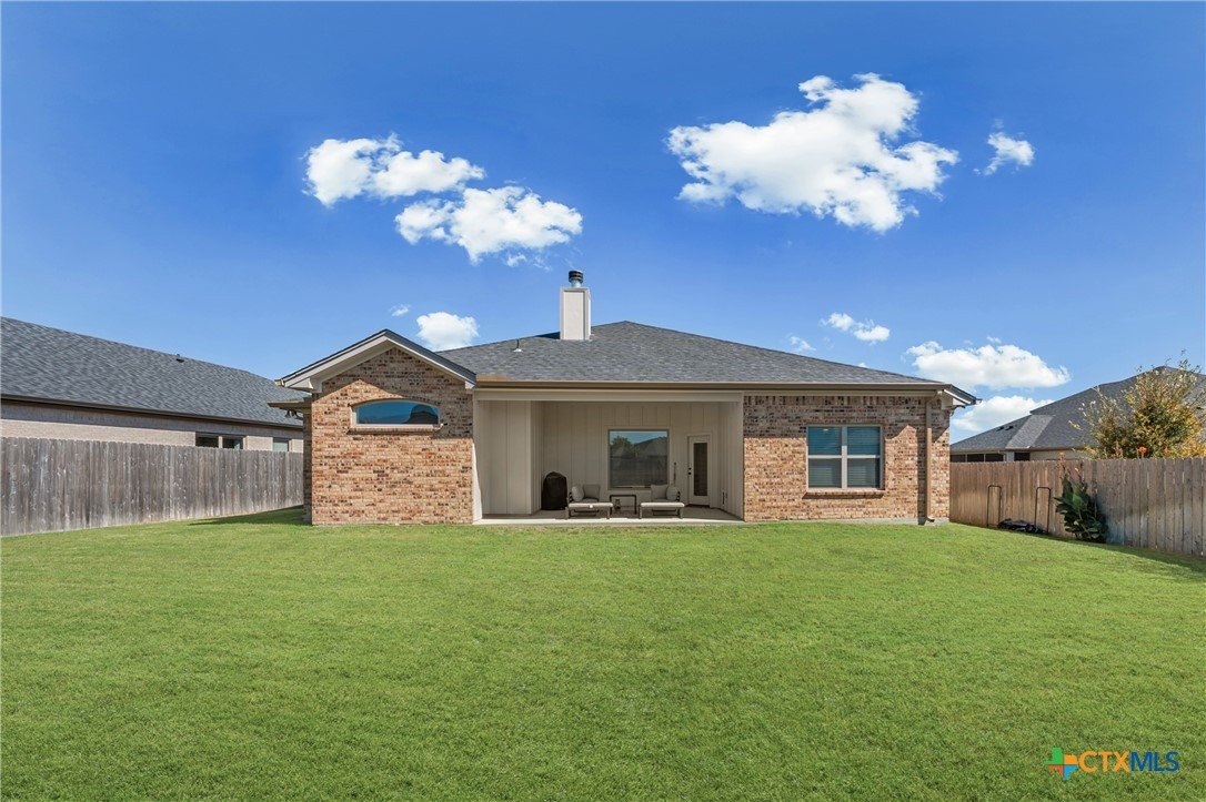 Bella Terra offers one of Temple's most sought after subdivisions in south Temple. This pristine home offers 4 bedrooms, (one bedroom can be an office, gym, bedroom or flex room), 2.5 baths with elegant features, open-concept floor plan, designer finishes, and a spacious living area for entertaining with a wall of windows providing abundant light into the home and views of the backyard and patio areas. The gourmet kitchen opens into a spacious main living area that is perfect for entertaining. Gourmet Kitchen has a large pantry, spacious island with breakfast bar and ample kitchen workspace, plus a large dining area for family gathering or entertaining. Retreat to your luxurious primary suite with a spa-inspired bath you will love! Master bath has elevated cabinets for each separate vanity area, amazing super extended shower with dual shower heads, and large walk-in closet. Step outside to your private backyard oasis with the large covered patio perfect for daily sunsets to relax! Attached 2 car garage home, prewired for security, 4 sides brick and limestone, spacious back yard, privacy fenced with full sprinkler system front and back. Community has a pool and playground area that has been recently added. Convenient access to BSW, VA hospitals, shopping, restaurants, and I-35. Come experience this resort-style living in a premier Temple community where luxury, comfort, and location come together beautifully.