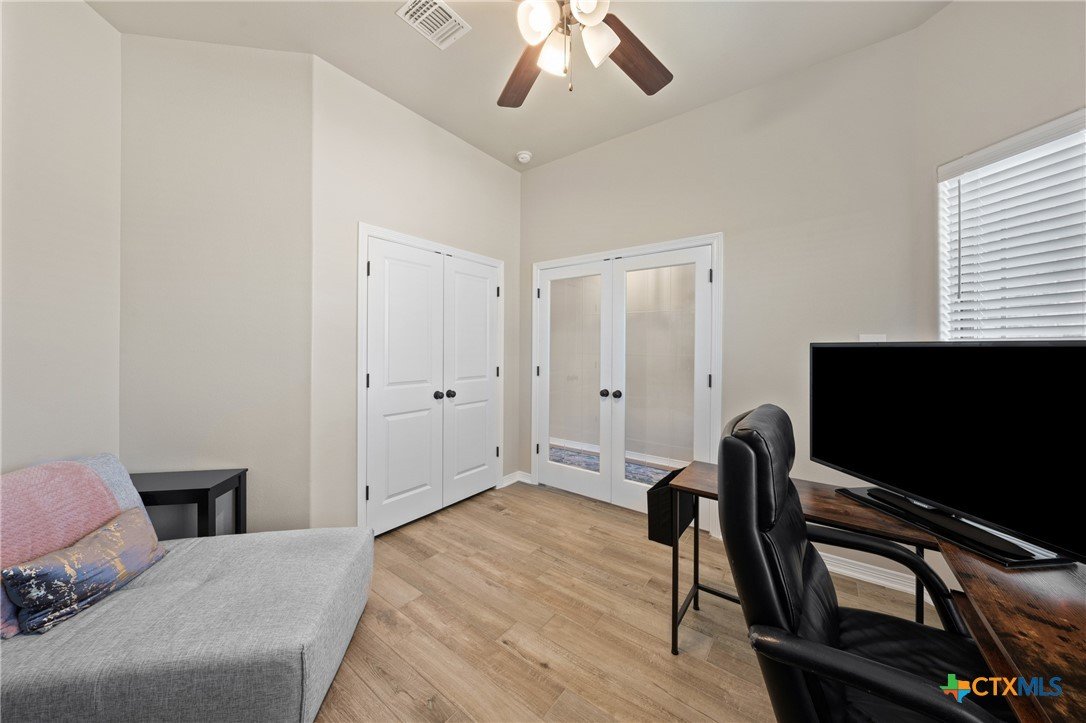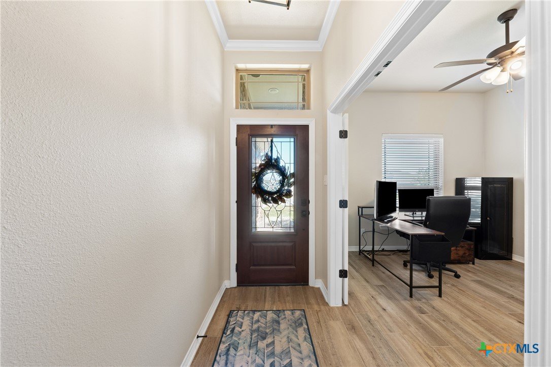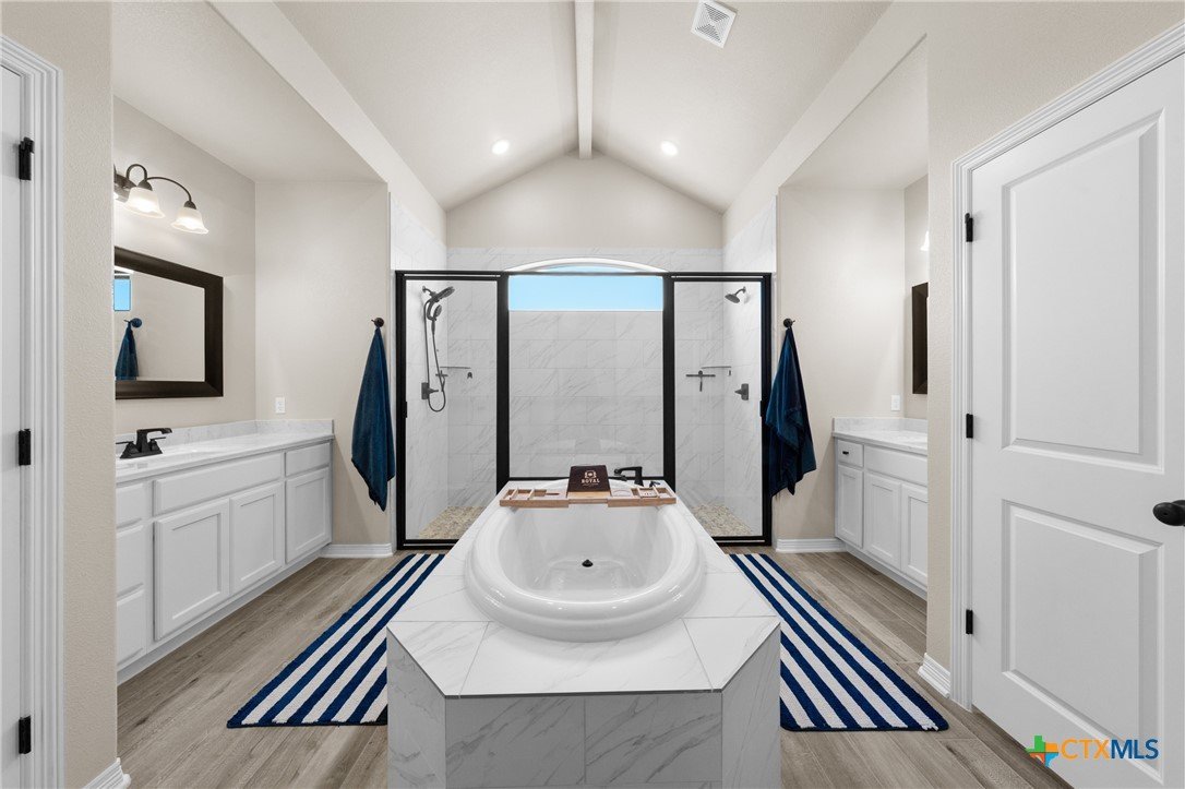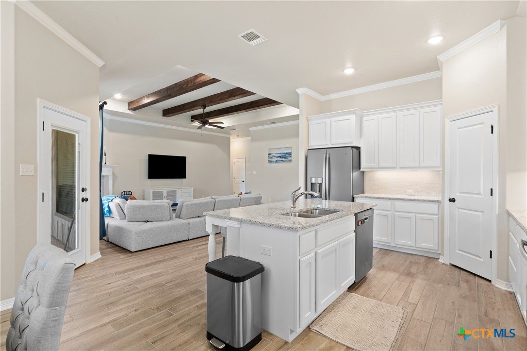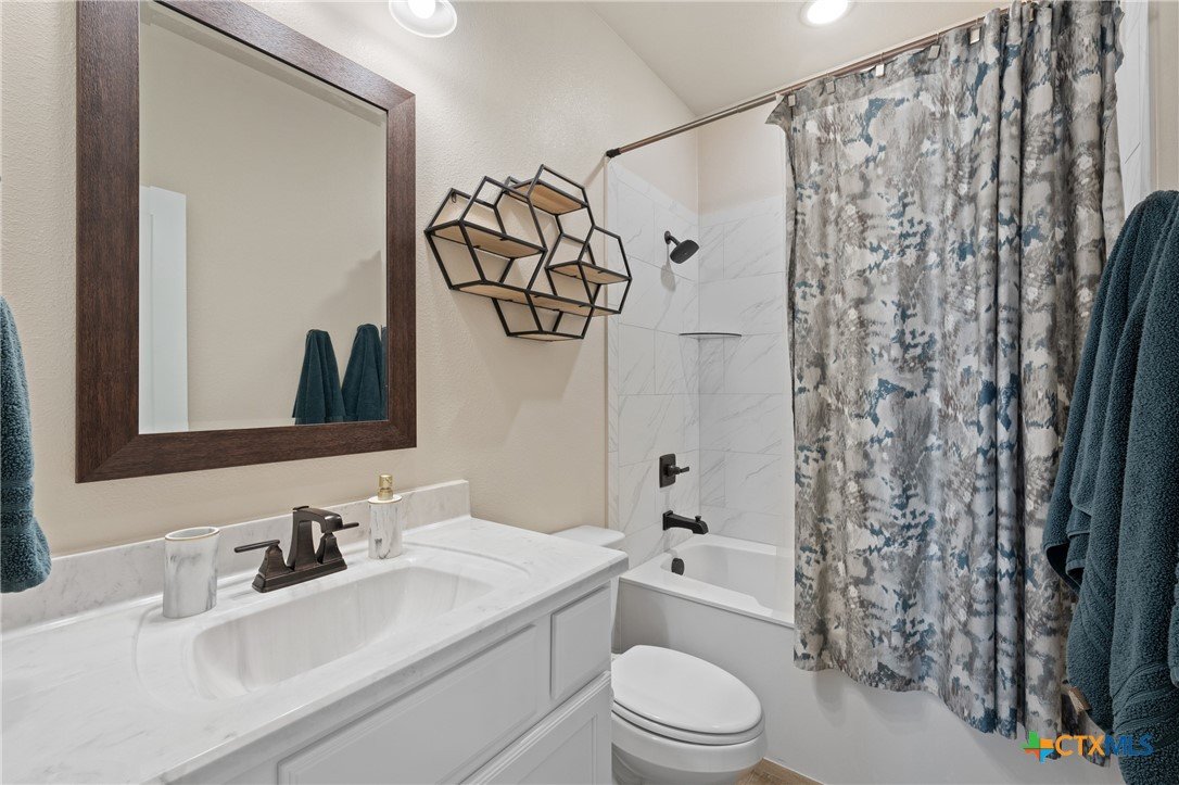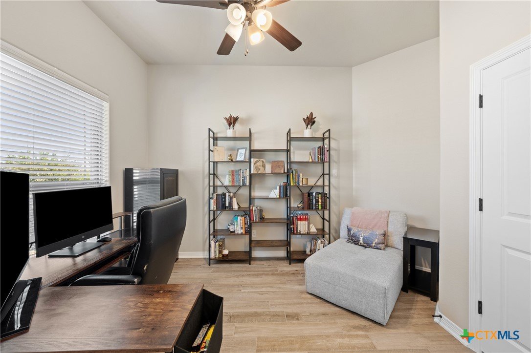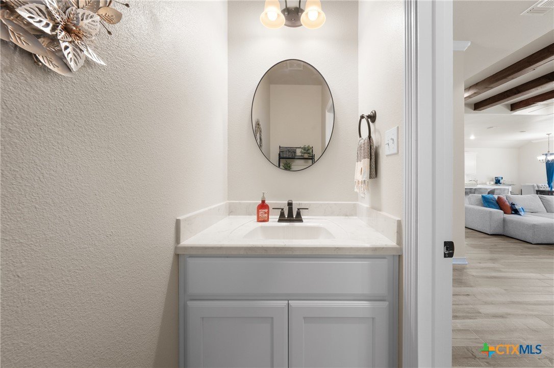 Bella Terra offers one of Temple's most sought after subdivisions in south Temple. This pristine home offers 4 bedrooms, (one bedroom can be an office, gym, bedroom or flex room), 2.5 baths with elegant features, open-concept floor plan, designer finishes, and a spacious living area for entertaining with a wall of windows providing abundant light into the home and views of the backyard and patio areas. The gourmet kitchen opens into a spacious main living area that is perfect for entertaining. Gourmet Kitchen has a large pantry, spacious island with breakfast bar and ample kitchen workspace, plus a large dining area for family gathering or entertaining. Retreat to your luxurious primary suite with a spa-inspired bath you will love! Master bath has elevated cabinets for each separate vanity area, amazing super extended shower with dual shower heads, and large walk-in closet. Step outside to your private backyard oasis with the large covered patio perfect for daily sunsets to relax! Attached 2 car garage home, prewired for security, 4 sides brick and limestone, spacious back yard, privacy fenced with full sprinkler system front and back. Community has a pool and playground area that has been recently added. Convenient access to BSW, VA hospitals, shopping, restaurants, and I-35. Come experience this resort-style living in a premier Temple community where luxury, comfort, and location come together beautifully.