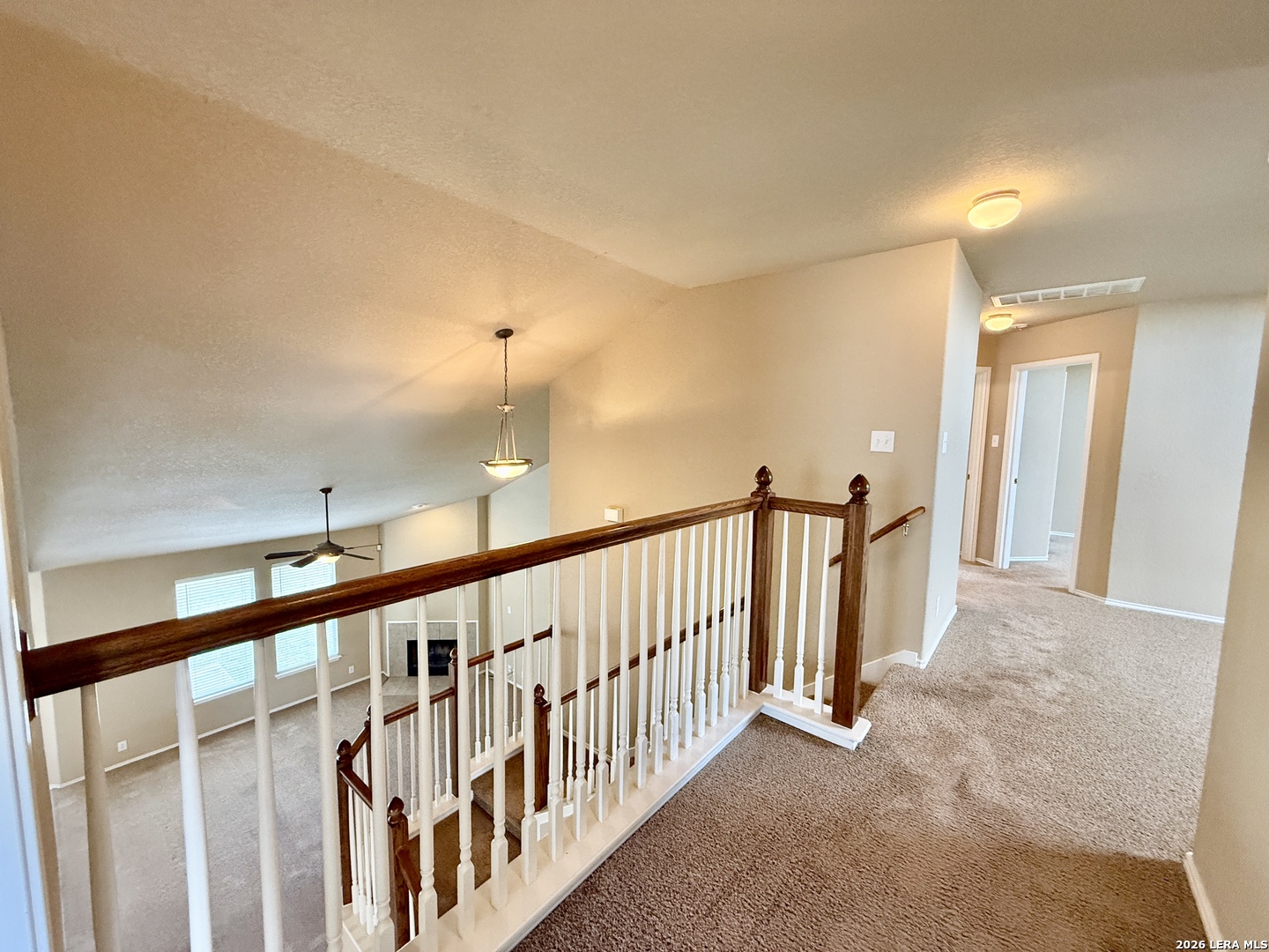 This home is located in the desirable Mission Hills Estates subdivision in popular New Braunfels! Executive two-story residence embodies Texas Hill Country living at its finest. From the moment you step inside, you're greeted with spacious living and dining areas, providing versatile space for relaxation and entertainment. One of the standout features of this home is the dual primary bedrooms with en-suite bathrooms and generous closet space. One primary bedroom conveniently located downstairs off the main living area, offering privacy and convenience, complete with a full bathroom and a walk-in closet. Upstairs, you'll find a large primary suite featuring a spacious walk-in closet and a luxurious primary bathroom complete with a garden tub, stand-up shower, and water closet. Two additional bedrooms located upstairs complete with a 3rd full bath. With a total of 4 bedrooms and 3.5 baths, this home offers ample space for both family and guests. Kitchen is open to the main living area complete with an eat-in kitchen and breakfast bar. Enjoy a nice window above the sink! Cozy up by the wood-burning fireplace in the downstairs main living area. So much room for activities! Laundry room downstairs. 2 car garage. Pre-plumbed for water softener. Fenced backyard. Schedule a tour today!