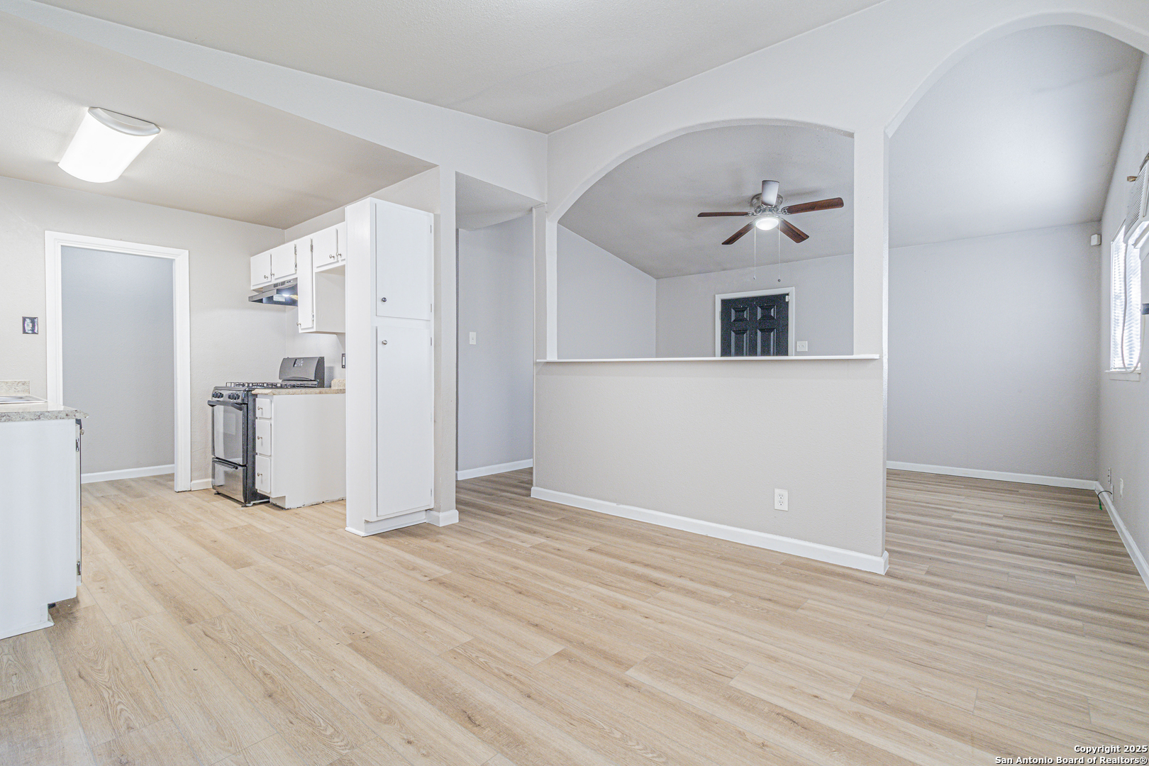 Come join us for this open house this upcoming weekend! Owner finance available! 20K down, 10percent interest on a 30 yr loan. Welcome to this beautifully renovated 3-bedroom, 1-bath home that combines modern updates with timeless charm. Step inside to discover brand new vinyl flooring throughout and soaring high ceilings that create an open, inviting atmosphere. The freshly painted interior enhances the home's bright and airy feel, while the stunning kitchen backsplash adds a touch of elegance and sophistication. The kitchen also features modern appliances that convey with the sale, making this home truly move-in ready. Outside, the property sits on an expansive lot-nearly a quarter of an acre-offering ample space for outdoor entertaining, gardening, or future expansion. The semi-circular driveway provides convenient and generous parking, ideal for homeowners with multiple vehicles. This fully refreshed property is ready to welcome its next owner to comfort, style, and functionality.