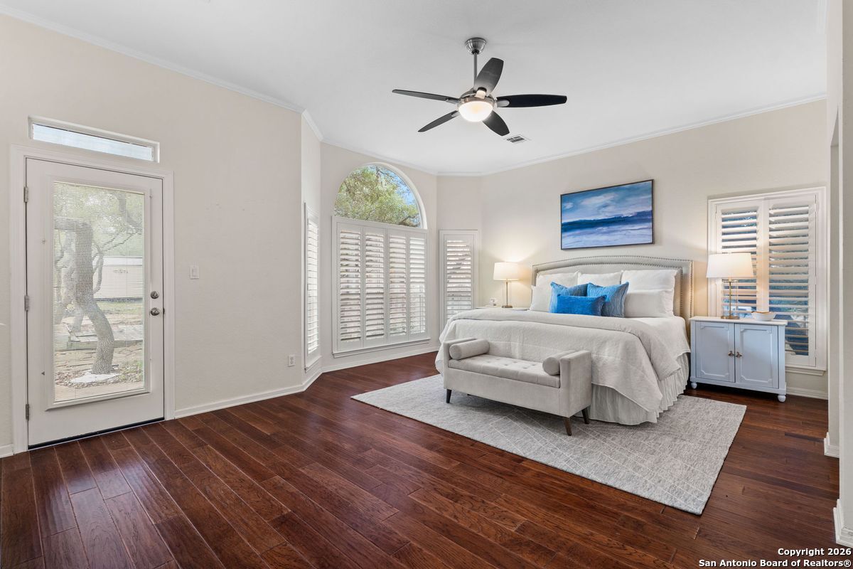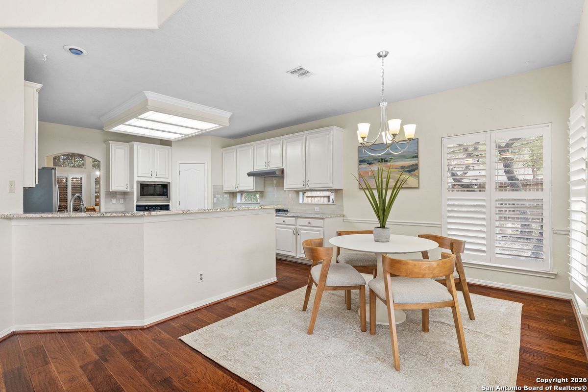 A rare opportunity to live in the coveted neighborhood of The Overlook in Stone Oak! This spacious 4-bedroom, 3.5-bathroom home offers 3 versatile living areas, soaring ceilings, and sits on a beautiful 1-acre lot filled with mature trees. Enjoy the added perk of a greenhouse, perfect for garden enthusiasts. Metal Roof was replaced in 2024. Located within highly acclaimed school boundaries and just minutes from top-tier shopping and dining-this property blends privacy, space, and convenience in one of San Antonio's most desirable communities.