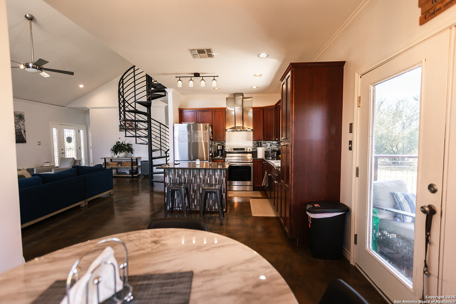 Beautiful views on this 2.5 cre tract of land on the outskirts of Schertz. The benefits of country living just 25 minutes from downtown San Antonio with easy access to I-10 E. Come see this unique property's flare from the garage door that opens from the living room to the side patio, to the matte black staircase that leads up to the master bedroom. A list of home improvements.