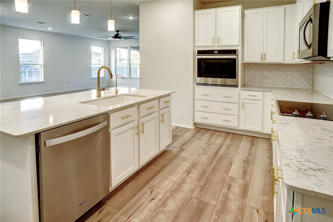 Shows pride of ownership. Closing costs negotiable. Walk to Lockhart Jr. High. This home has been tastefully designed with high-end finishes. This showcase of a kitchen has an abundance of counter space, quartz countertops, a built-in oven and ample cabinet storage. The luxurious vinyl plank flooring flows throughout the primary areas of the home. The bathrooms are an absolute show stopper. Your guests will be awed by the colorful finishes. The back patio pergola and spacious yard are perfect for hosting amazing BBQs. Sprinkler System. This home has it all. A real gem.