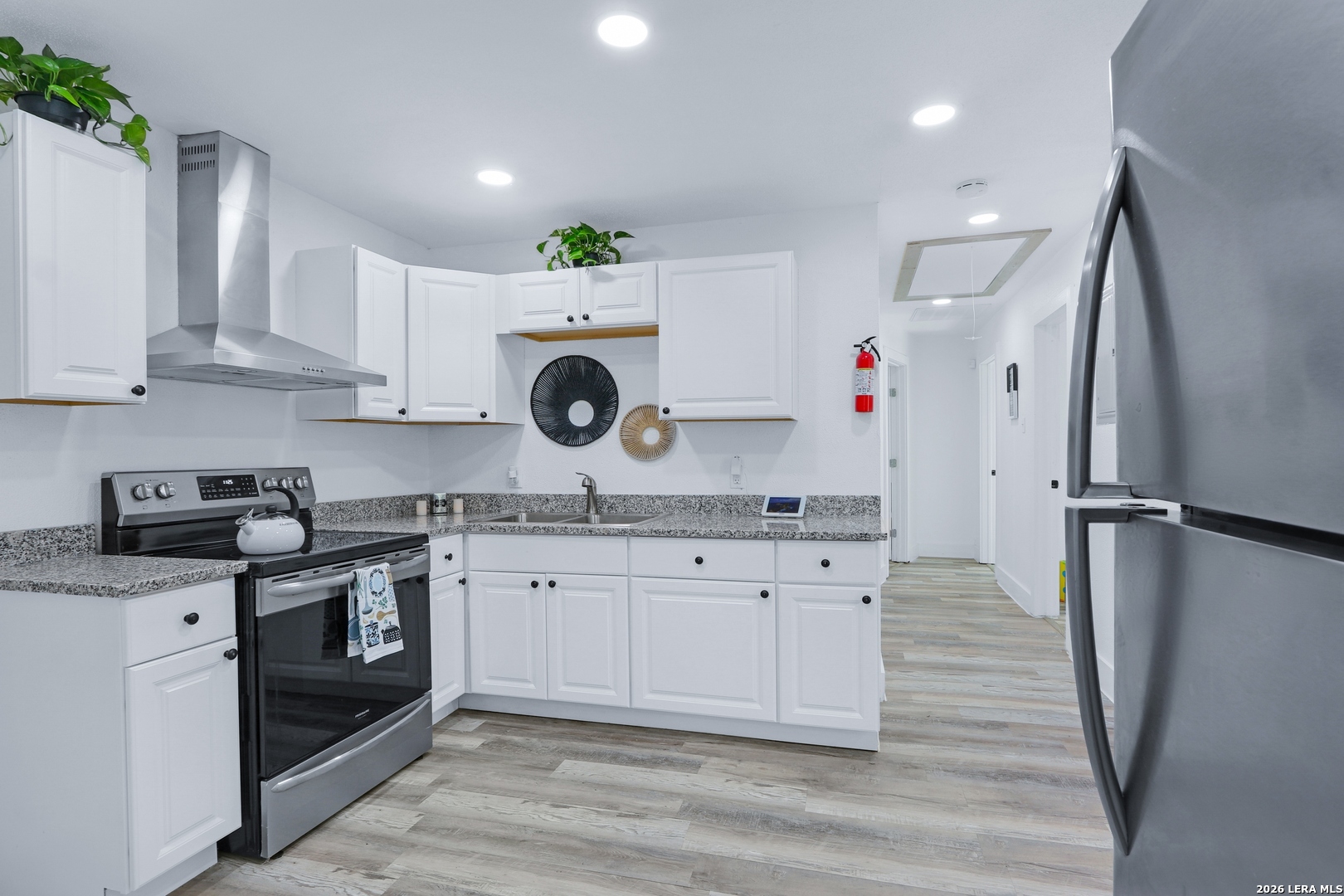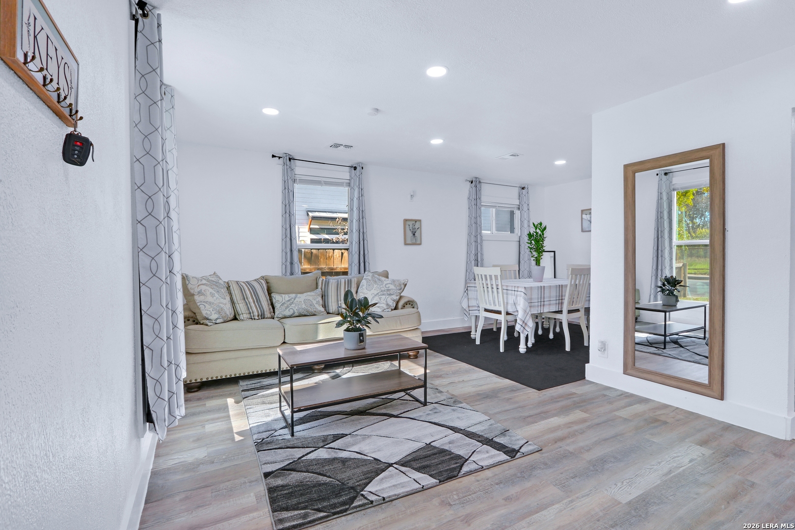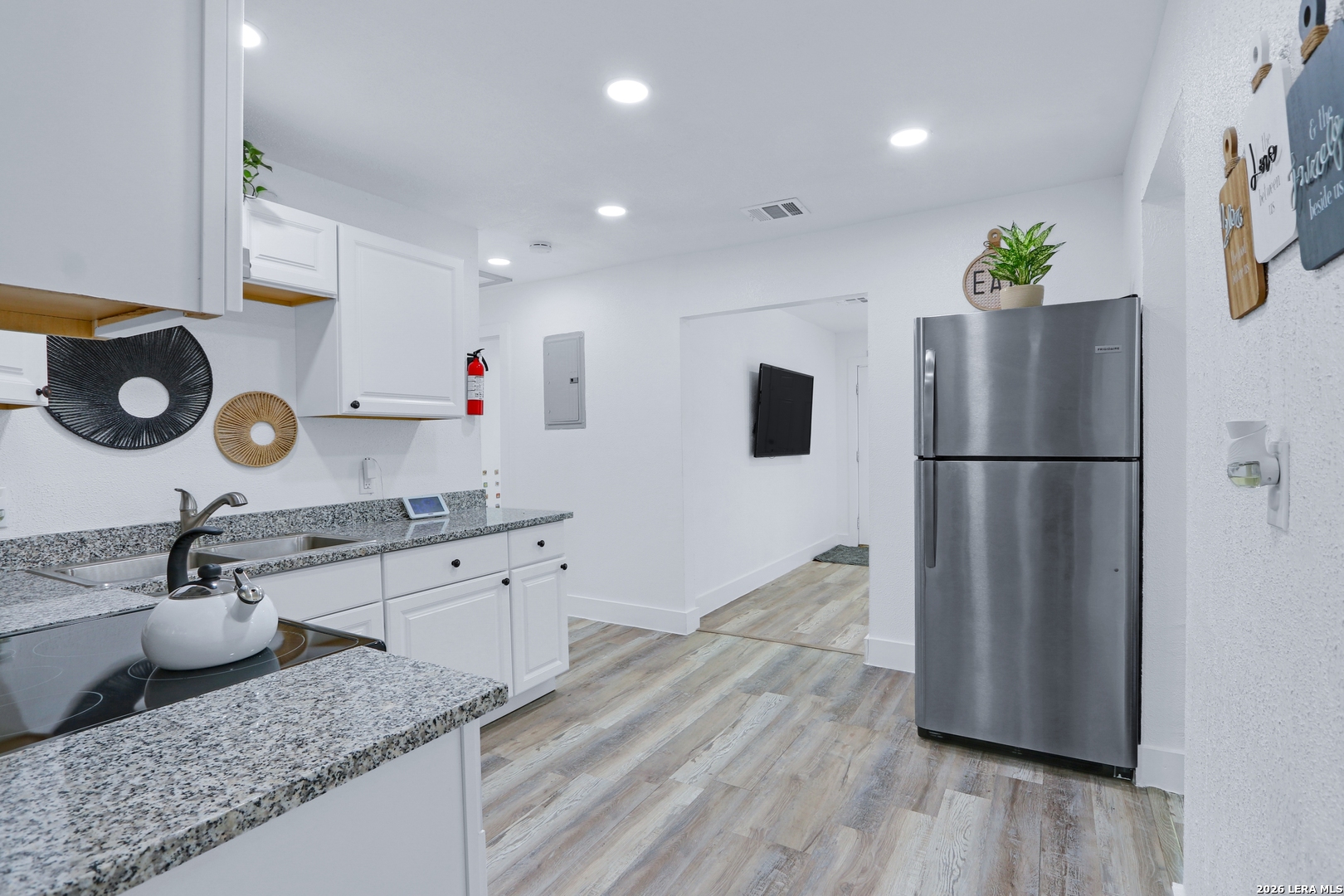 Beautifully renovated single-story home just minutes from downtown San Antonio! This 3-bedroom, 2-bath residence offers 1,565 sq ft of stylish, updated living space. The modern kitchen showcases new cabinetry and stainless steel appliances, while both bathrooms have been completely remodeled with new fixtures. The primary suite features a luxurious jacuzzi tub for ultimate relaxation. New flooring flows throughout the home. Ideally located with convenient access to downtown, major highways, dining, and entertainment. A must-see!