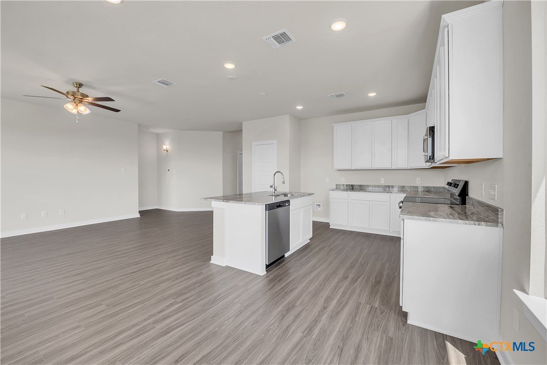 This four-bedroom, two bath home is a great option for those looking for more bedrooms without a second story! You won’t believe your eyes as you walk into the great space that is the open concept living room, dining room, and kitchen. With all of its wonderful features, to include walk-in closets, granite countertops, and corner kitchen with island, you are sure to love this home! Additional options included: Stainless steel appliances, painted cabinets throughout, Level 2 granite countertops throughout, a Level 2 decorative tile backsplash, kitchen is prewired for pendant lighting, and a dual primary bathroom vanity.
