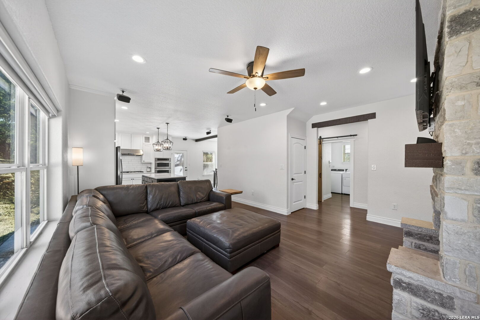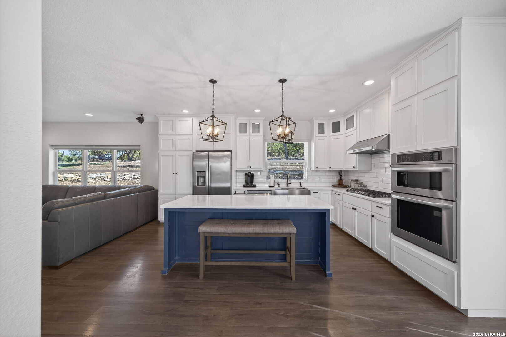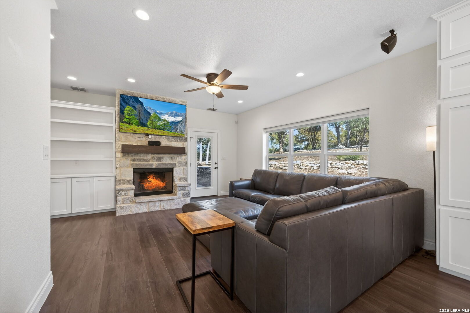 Welcome to 616 Crossman-where Hill Country views meet modern luxury and the noise of the world politely stays at the gate. Perched on one of the highest elevations in The Legends, this stunning home delivers the rare combination buyers crave: privacy, views, and comfort-without sacrificing convenience. Set on a full one-acre lot inside a small, gated community, this property feels like your own private Hill Country retreat while still keeping civilization just a short drive away. The moment you arrive, the sleek, winding concrete driveway and oversized two-car garage set the tone-plenty of room for guests, gatherings, and weekend entertaining. Step inside and you'll find 4 spacious bedrooms, thoughtfully laid out, with durable dark-tone LVP wood flooring and tile throughout-beautiful, low-maintenance, and built for real life. The heart of the home features a tastefully designed kitchen that opens effortlessly to the living space, anchored by a cozy wood-burning fireplace that makes evenings feel warm and grounded. Whether it's a quiet night in or hosting friends, this home handles both with ease. But let's talk about what truly sets this property apart. Out back, the elevated corner deck is your front-row seat to some of the most breathtaking sunsets in the Texas Hill Country. From this vantage point, the views stretch far and wide-rolling hills, open skies, and a sense of calm you can't manufacture. Sit back, exhale, and let the day melt away. The recently fenced backyard creates a secure space for pets or play, while the whole-home filtration system with dual reverse-osmosis tanks adds an extra layer of comfort and quality you'll appreciate every single day. This thing is literally industrial strength and will come in very handy. Upstairs, one bedroom steals the show with custom built-in bench seating and 180-degree windows, offering a panoramic Hill Country view that's nothing short of magical-perfect as a reading nook, office, or serene retreat. Don't forget the upstairs space that can be used as a separate upstairs living or game room as well. Located just 20 minutes in nearly any direction from some of the Hill Country's most sought-after destinations, this home delivers the best of both worlds: peaceful seclusion and easy access to everything that makes this area so desirable. Competitively priced, beautifully positioned, and loaded with potential-616 Crossman isn't just a home, it's a lifestyle upgrade. Schedule your showing and come experience what it feels like to truly live above it all.
