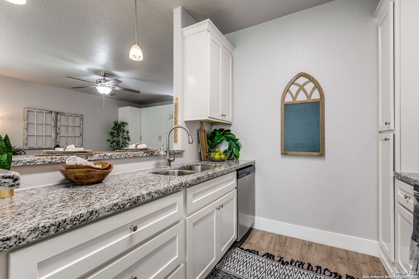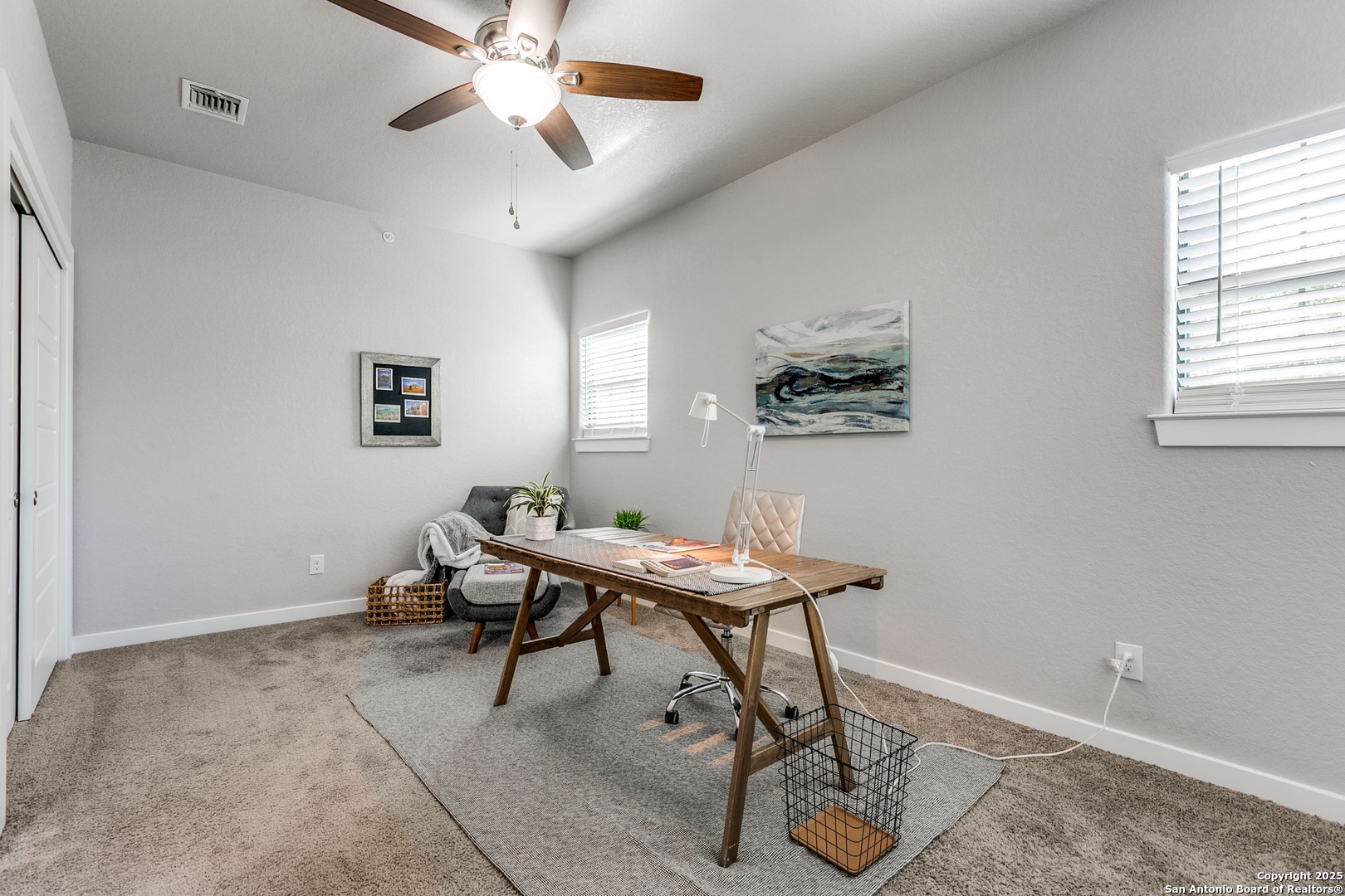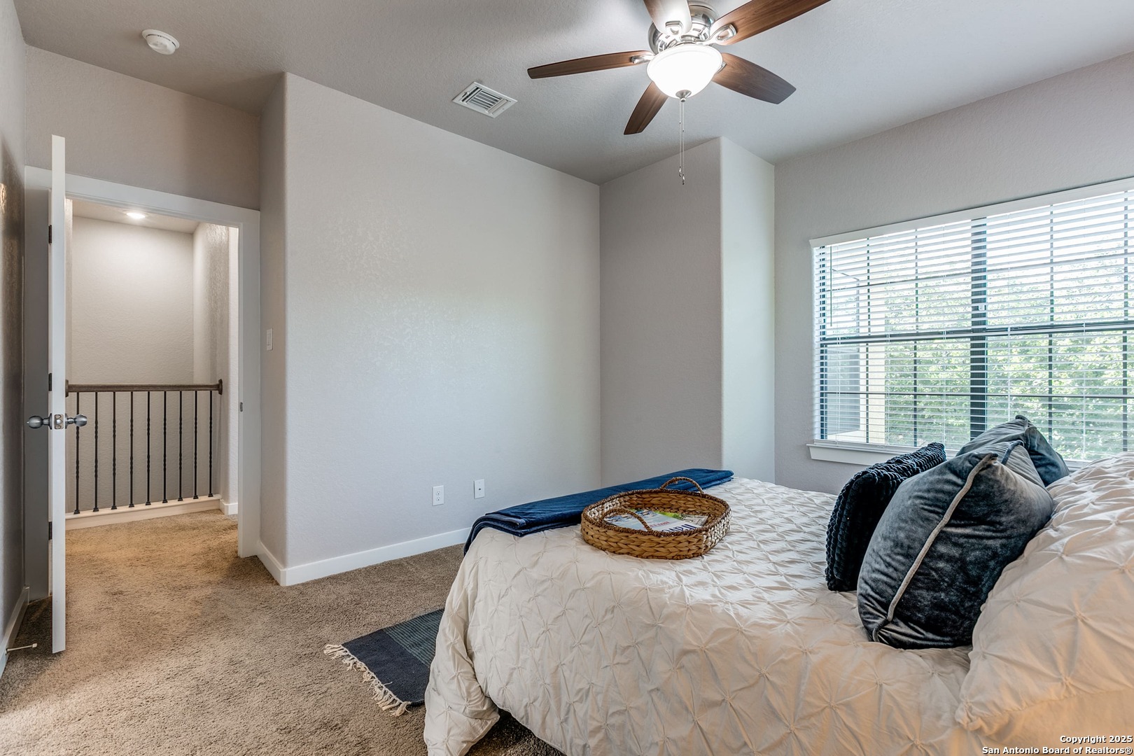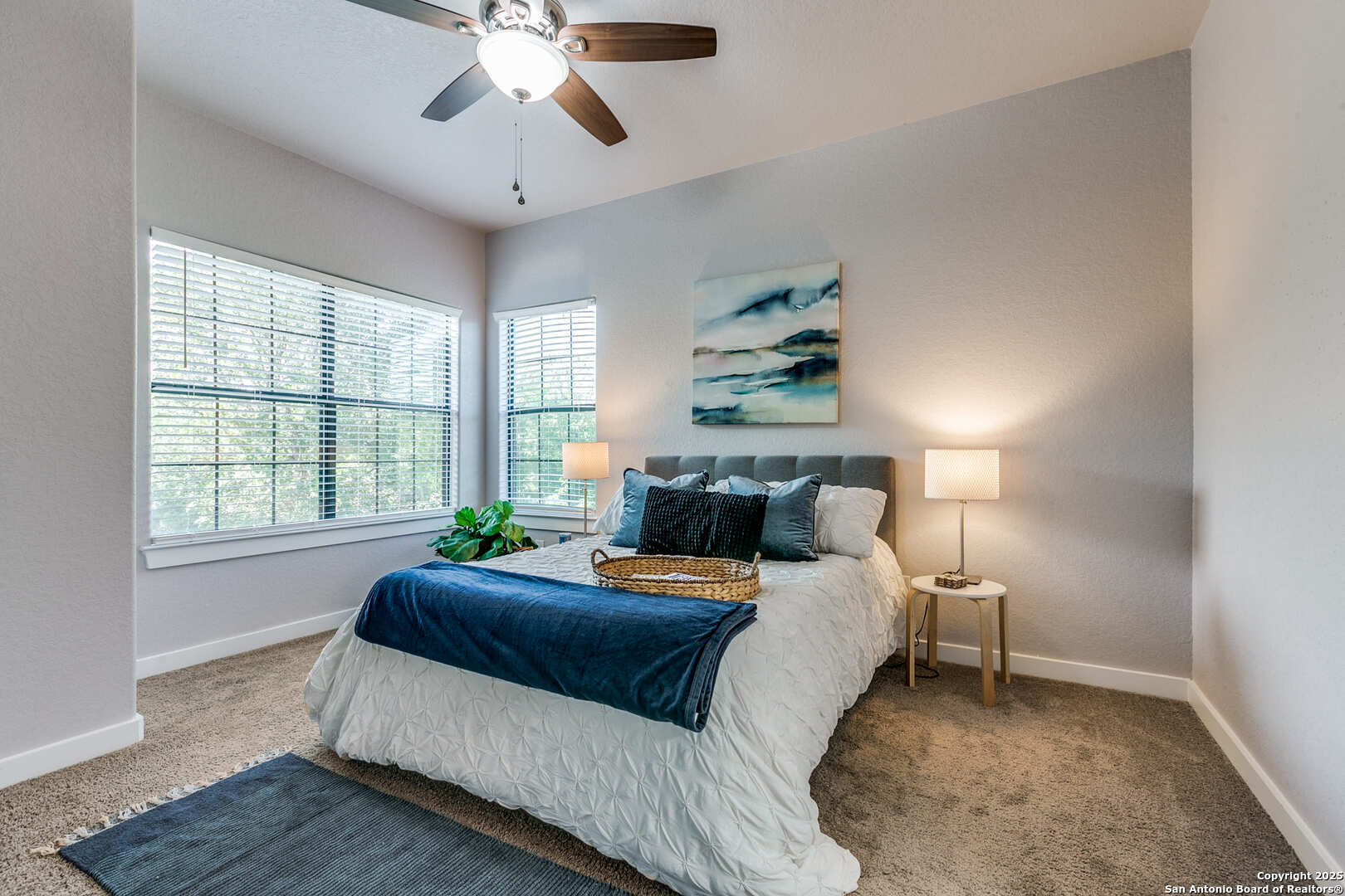 Immaculate corner-unit condo overlooking a serene greenbelt, offering peace and privacy. Centrally situated near the Medical Center, this 2019-built residence combines modern design with low-maintenance living. The open-concept main level features durable wood-look tile floors, built-in shelving for additional storage, and a full bath for added convenience. The kitchen boasts granite countertops, a breakfast bar off the peninsula, and a pantry/utility space with laundry just steps away. Upstairs, both bedrooms offer en-suite baths, with the primary suite including a well-appointed walk-in closet complete with built-in organization. Washer and dryer are included.