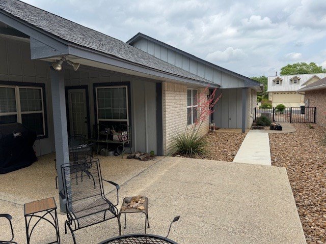 Stop the car Momma I'm getting out! This is the one of the most affordable, low maintenance opportunities in Fredericksburg! With a full slate of Fall season events coming up soon, and with this LOW MAINTENANCE option, skip the hotel and BnB reservations and go straight to your home in town. Oktoberfest is just around the corner, the Mesquite Art Fest runs on Oct. 10, 11, & 12, the Food and Wine Fest happens the last week of October. In November, we have the hunting season, Thanksgiving, and Christmas celebrations. Think of the fun you and friends could have spending time at one or all of these events in Fredericksburg! But if you have to rent a room, you are likely to find there is "no room at the inn" during much of the fall season. Instead, you can spend your leisure time enjoying the town while staying just a few blocks off Main Street!. Watch the deer graze just down the street under a small grove of trees. And the low maintenance? There is nothing to mow, so landscape maintenance is minimal and your water bill stays low! Private, quiet patio area to sit outside and enjoy morning coffee and juice, or try out that new brisket marinade you heard about. Vaulted ceiling inside gives you that wide open feeling. The kitchen is wide open to the living/relaxation area. Split floor plan with the MBDRM w jetted tub and shower on one end and 2 more bedrooms on the opposite end. In the cooler months, there is an electric fireplace to help create atmosphere and add warmth without carrying in a load of wood. The exterior is HardiPlank and masonry. Great place for family and friends to enjoy Fredericksburg whenever you want! All information is deemed reliable but Buyers should verify and do their own due diligence to their own satisfaction.