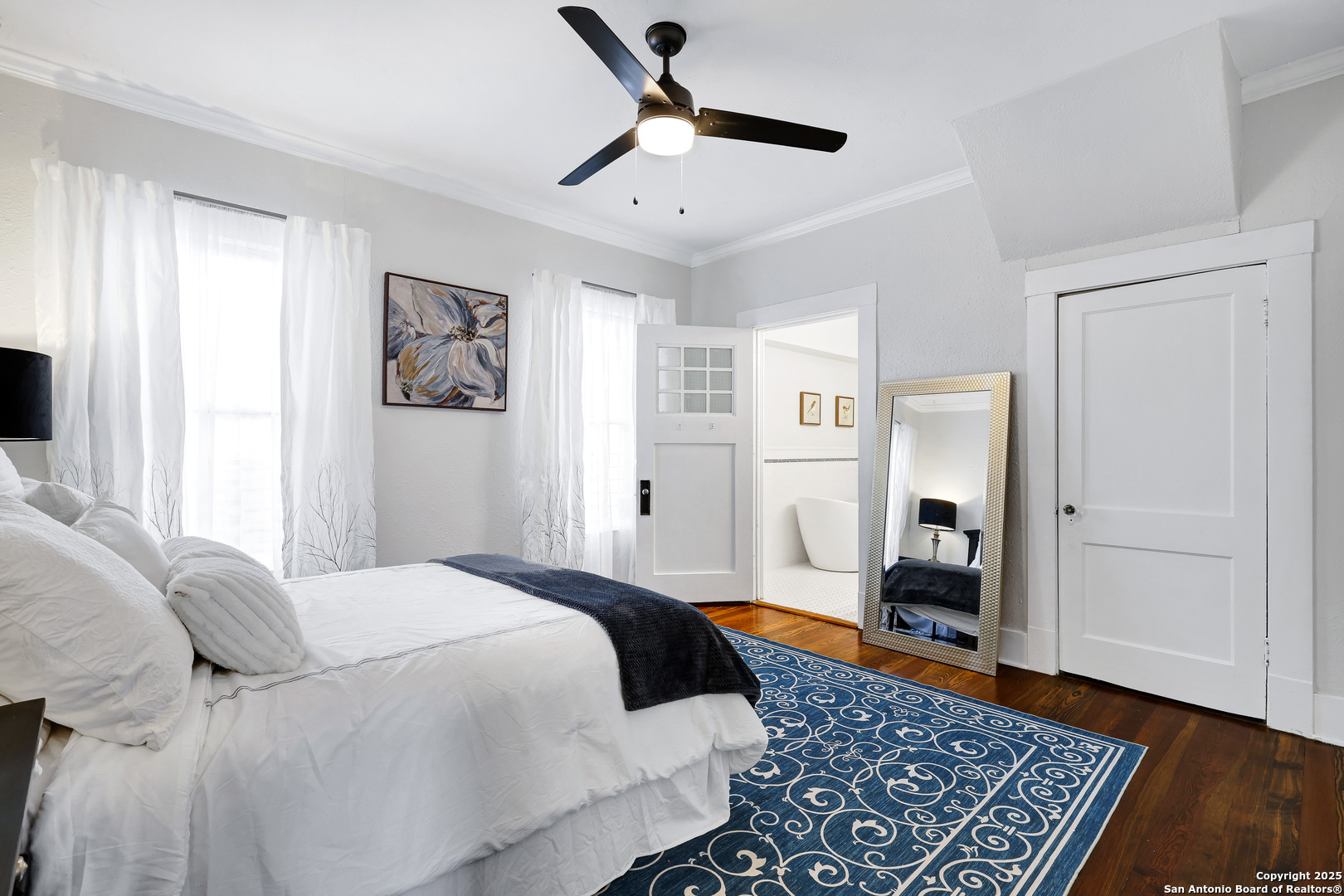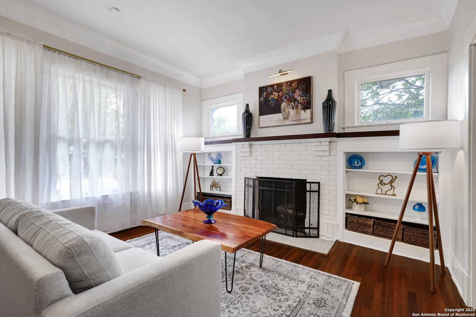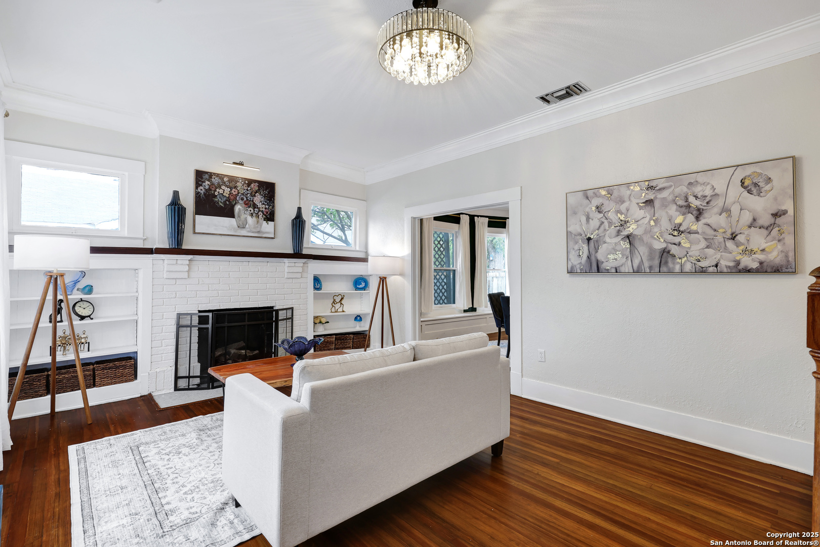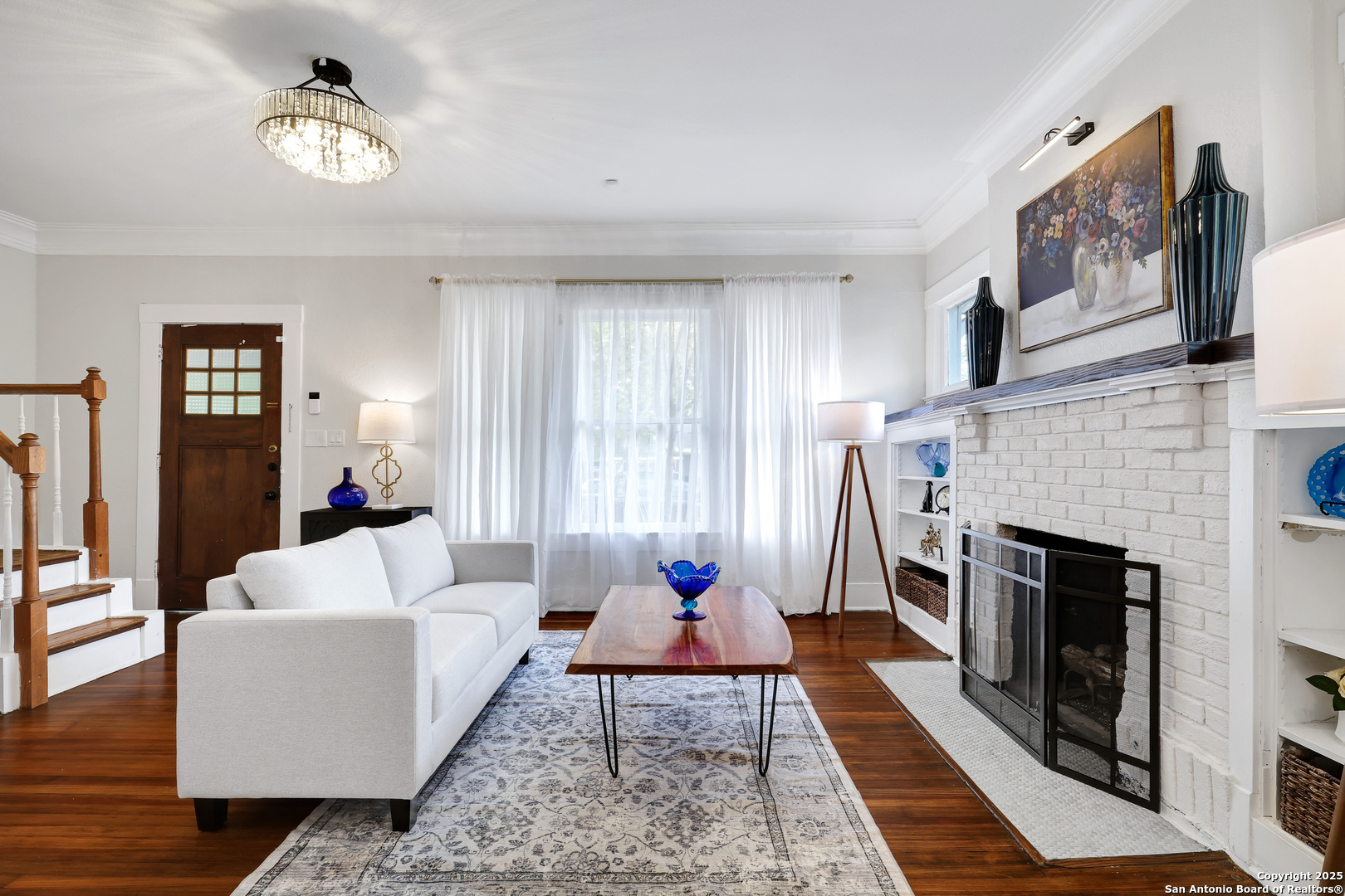 Historic Charm Meets Modern Comfort in Tobin Hill! Step into this beautifully preserved two-story home in the heart of Tobin Hill, where timeless character blends seamlessly with today's conveniences. Relaxed living & warm welcomes with a cozy front porch! Inside, you'll find 4 spacious bedrooms, 2.5 bathrooms, & multiple living areas, including a front living room with a charming fireplace framed by built-in bookcases. The home also features a light-filled den with a wall of French windows and door opening to a patio and turfed yard perfect for outdoor games & entertaining. The upstairs loft reading nook offers a quiet retreat, while the formal dining room features a large bay window with a built-in bench seat that opens for storage, combining character with function. The home features updated bathrooms, including a spa-inspired primary suite with a free-standing tub & oversized shower. The kitchen boasts quartz countertops, and all appliances convey! Washer and dryer are located in a large utility room with abundant cabinetry. Wood flooring throughout enhances the historic charm, complemented by modern updates like a newer metal roof, 2 HVACs, electrical & plumbing for peace of mind. Enjoy unmatched convenience with easy access to I-35, 281/I-37, Airport, Trinity University and UIW! Stroll a few blocks to the Pearl & River Walk! Investor Potential for Short Term Rentals! Own a piece of history in one of San Antonio's most vibrant neighborhoods!