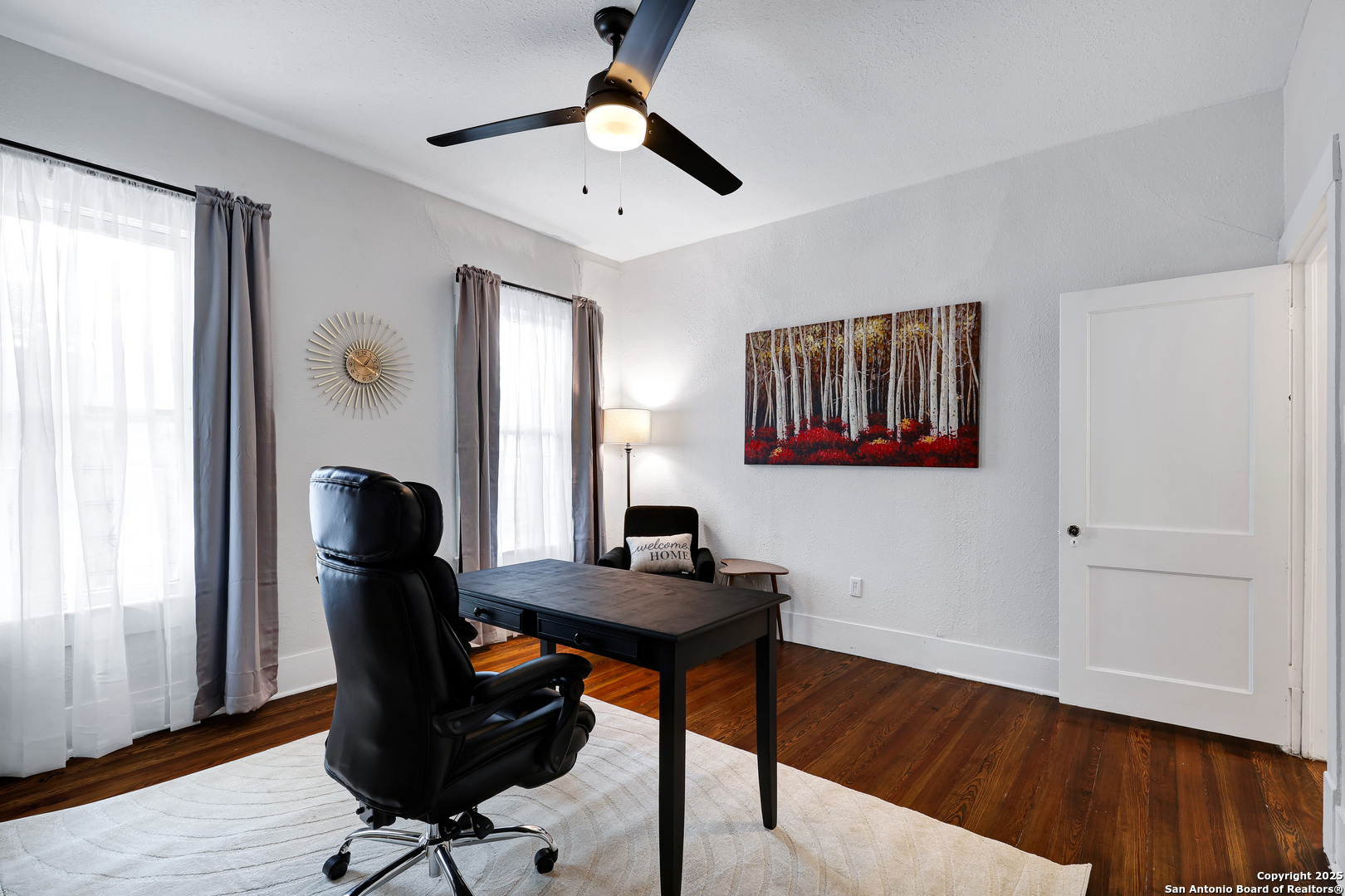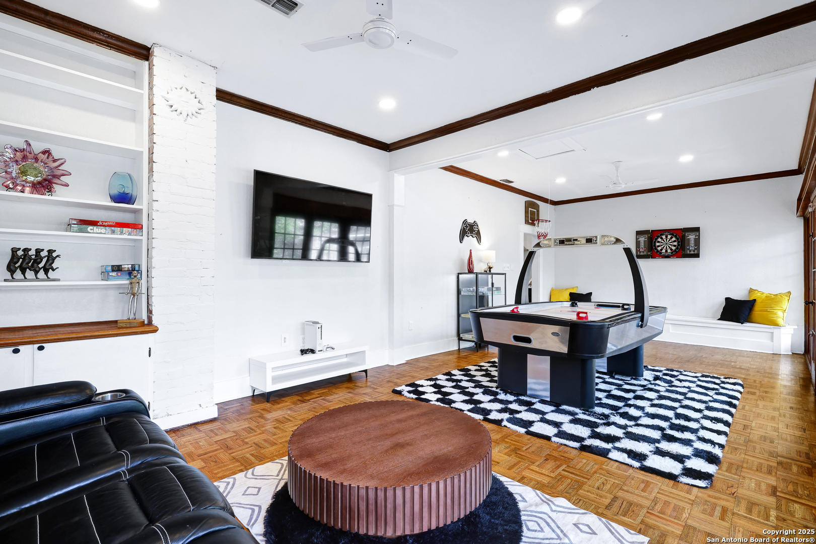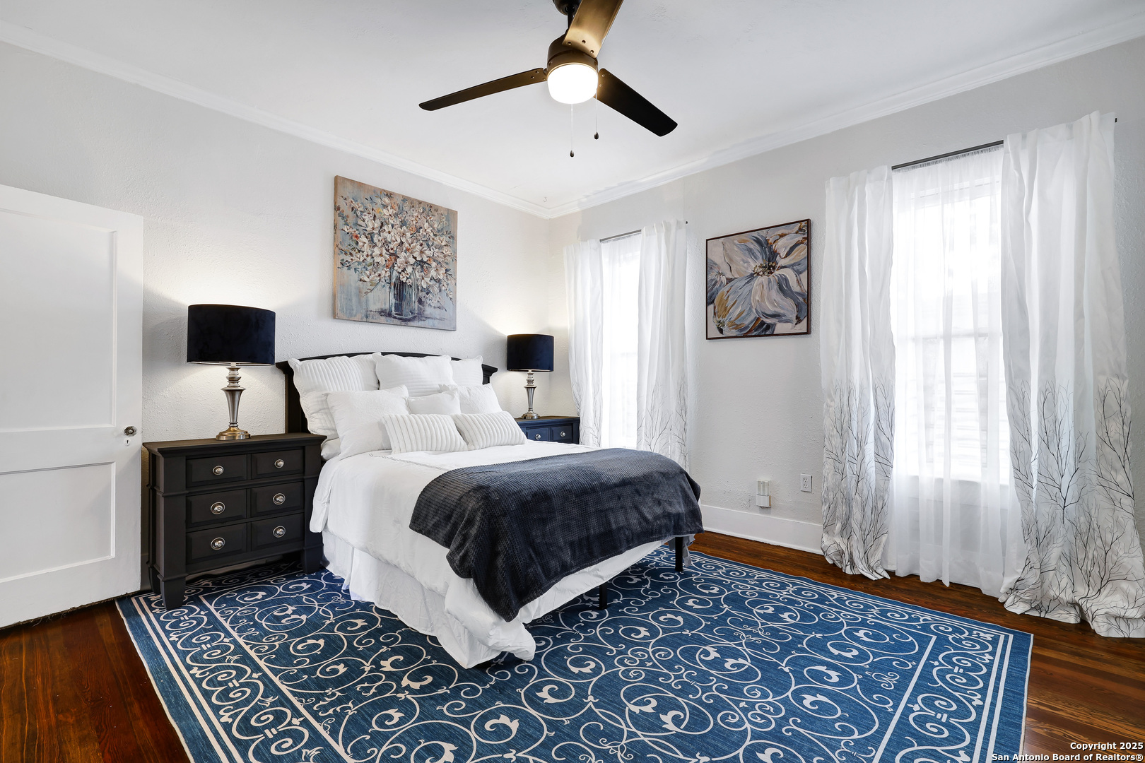 Historic Charm Meets Modern Comfort in Tobin Hill! Step into this beautifully preserved two-story home in the heart of Tobin Hill, where timeless character blends seamlessly with today's conveniences. Relaxed living & warm welcomes with a cozy front porch! Inside, you'll find 4 spacious bedrooms, 2.5 bathrooms, & multiple living areas, including a front living room with a charming fireplace framed by built-in bookcases. The home also features a light-filled den with a wall of French windows and door opening to a patio and turfed yard perfect for outdoor games & entertaining. The upstairs loft reading nook offers a quiet retreat, while the formal dining room features a large bay window with a built-in bench seat that opens for storage, combining character with function. The home features updated bathrooms, including a spa-inspired primary suite with a free-standing tub & oversized shower. The kitchen boasts quartz countertops, and all appliances convey! Washer and dryer are located in a large utility room with abundant cabinetry. Wood flooring throughout enhances the historic charm, complemented by modern updates like a newer metal roof, 2 HVACs, electrical & plumbing for peace of mind. Enjoy unmatched convenience with easy access to I-35, 281/I-37, Airport, Trinity University and UIW! Stroll a few blocks to the Pearl & River Walk! Investor Potential for Short Term Rentals! Own a piece of history in one of San Antonio's most vibrant neighborhoods!