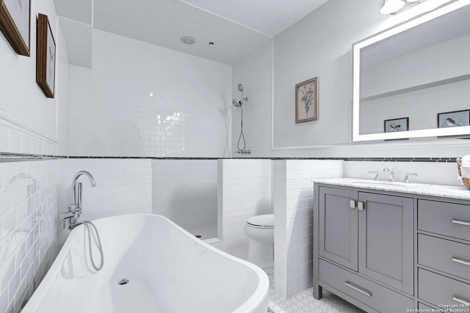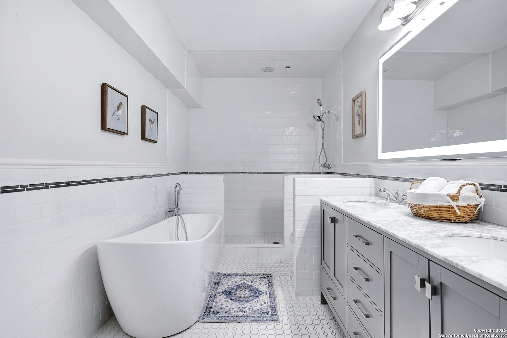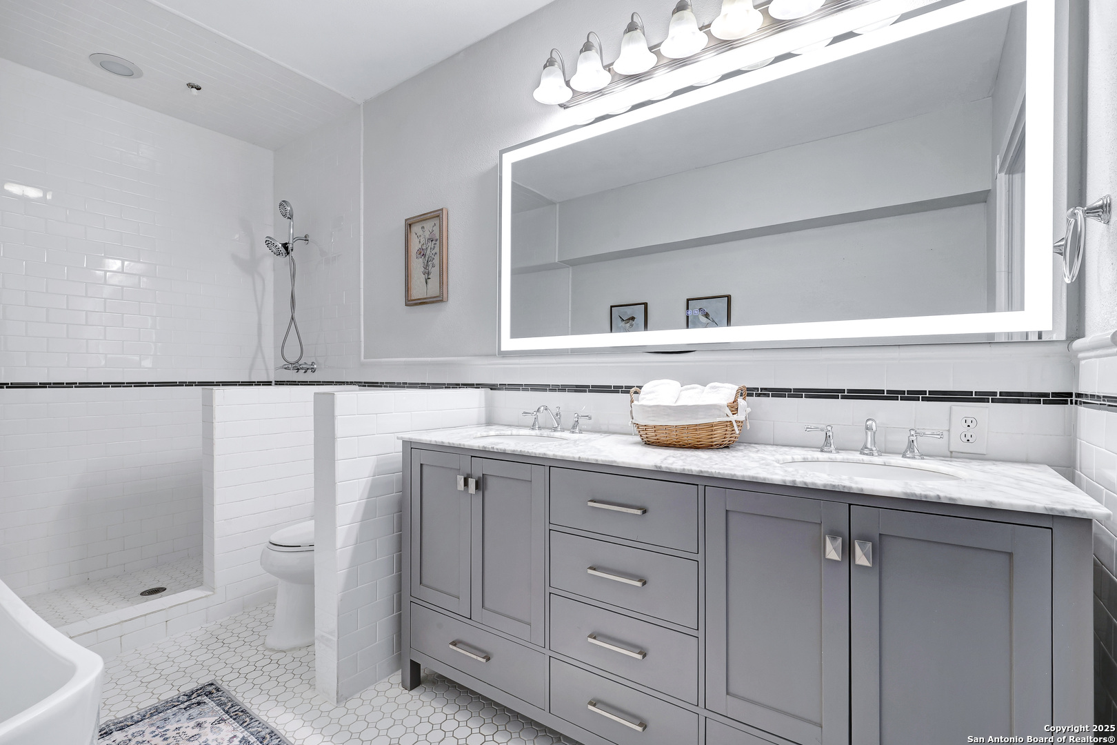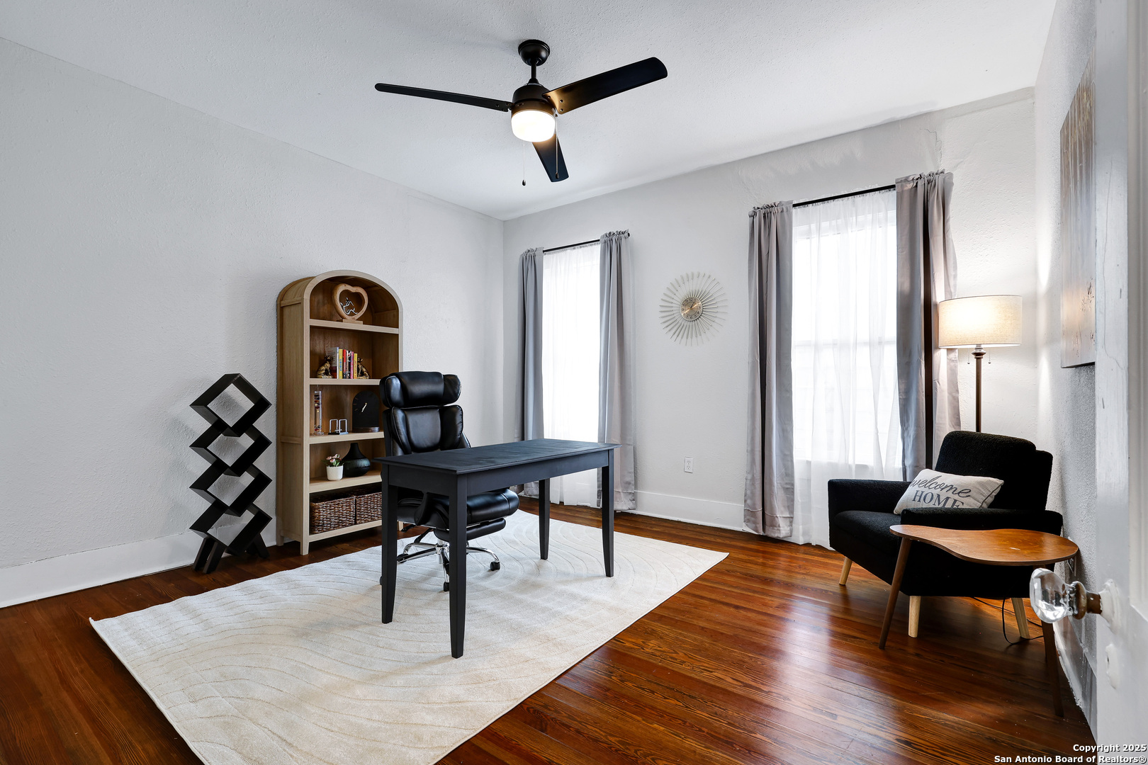 Historic Charm Meets Modern Comfort in Tobin Hill! Step into this beautifully preserved two-story home in the heart of Tobin Hill, where timeless character blends seamlessly with today's conveniences. Relaxed living & warm welcomes with a cozy front porch! Inside, you'll find 4 spacious bedrooms, 2.5 bathrooms, & multiple living areas, including a front living room with a charming fireplace framed by built-in bookcases. The home also features a light-filled den with a wall of French windows and door opening to a patio and turfed yard perfect for outdoor games & entertaining. The upstairs loft reading nook offers a quiet retreat, while the formal dining room features a large bay window with a built-in bench seat that opens for storage, combining character with function. The home features updated bathrooms, including a spa-inspired primary suite with a free-standing tub & oversized shower. The kitchen boasts quartz countertops, and all appliances convey! Washer and dryer are located in a large utility room with abundant cabinetry. Wood flooring throughout enhances the historic charm, complemented by modern updates like a newer metal roof, 2 HVACs, electrical & plumbing for peace of mind. Enjoy unmatched convenience with easy access to I-35, 281/I-37, Airport, Trinity University and UIW! Stroll a few blocks to the Pearl & River Walk! Investor Potential for Short Term Rentals! Own a piece of history in one of San Antonio's most vibrant neighborhoods!