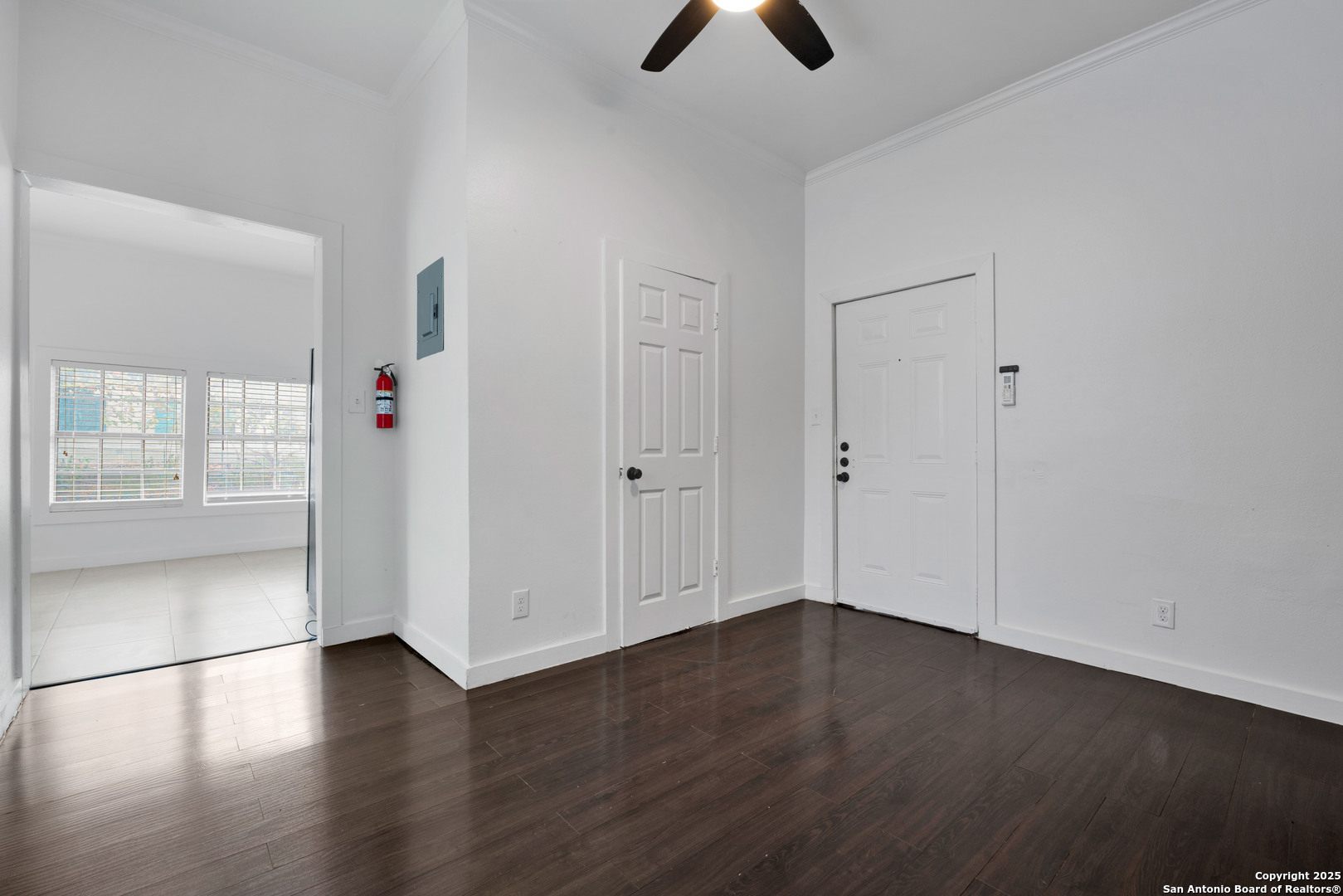 Step into this cozy efficiency in a charming 4-unit building built in 1942, just minutes from downtown. Unit 1 features a clever Murphy bed in the combined bedroom/living area, making the space functional and comfortable. Freshly painted with an updated bathroom, this unit is move-in ready! Perfect for tenants who want a stylish, convenient, and easy-to-maintain home near the heart of the city! Flat Rate for Utilities: $120 electricity, $30 water