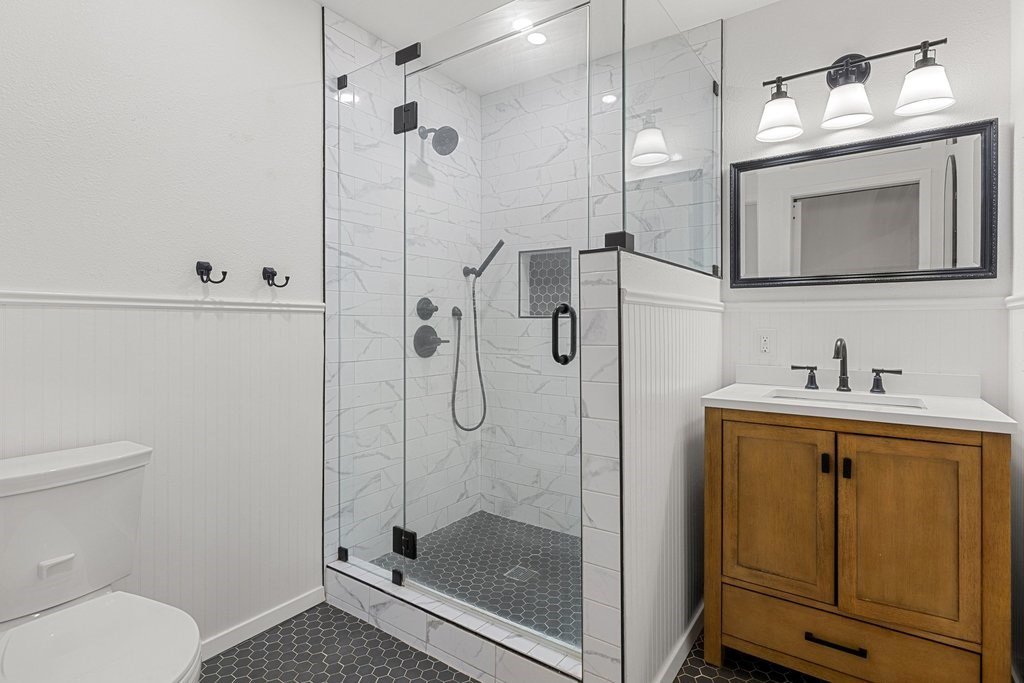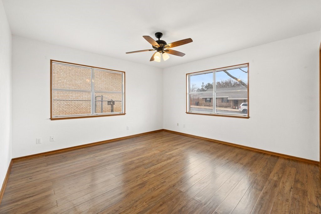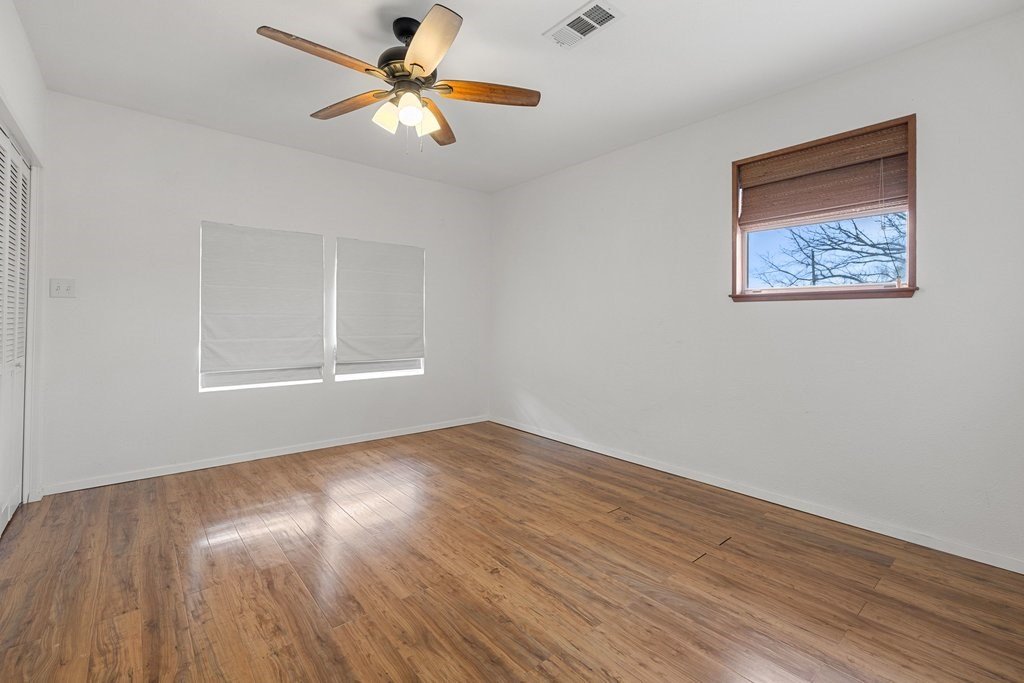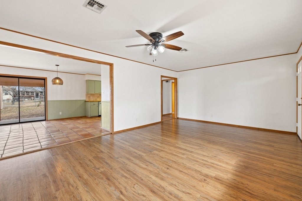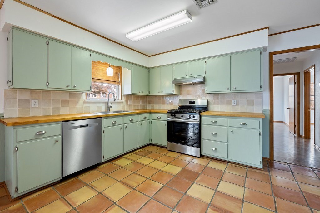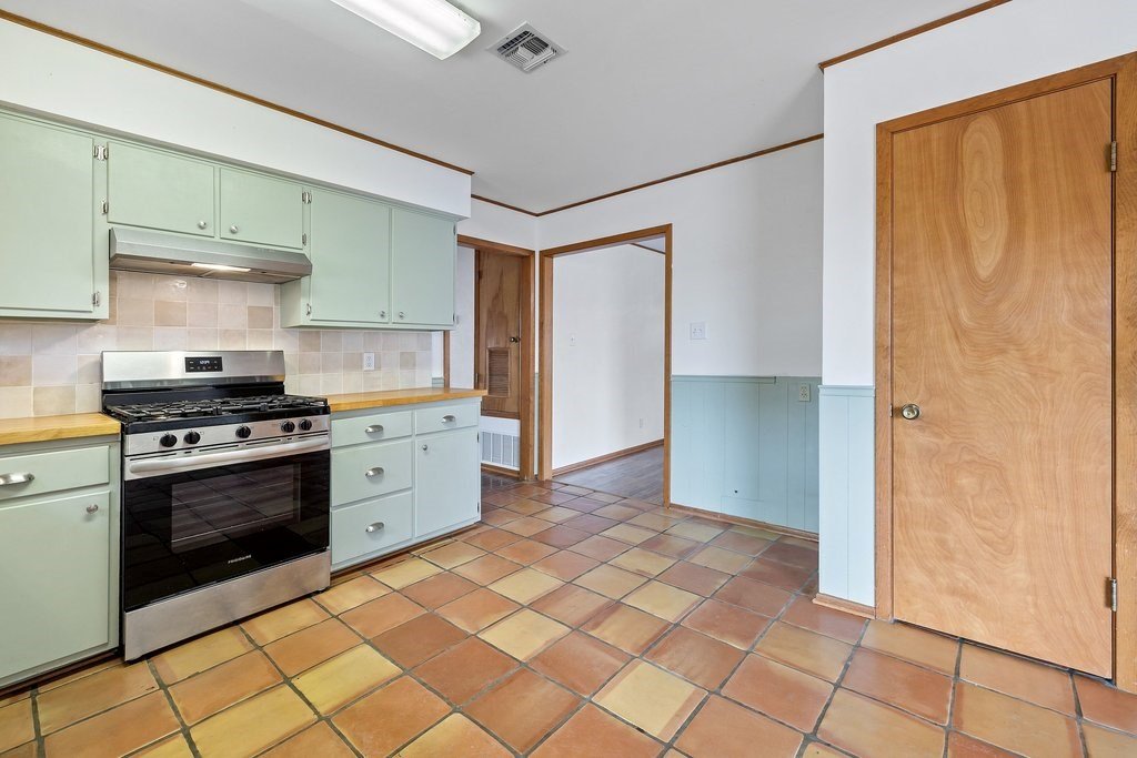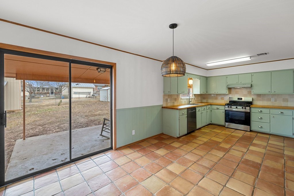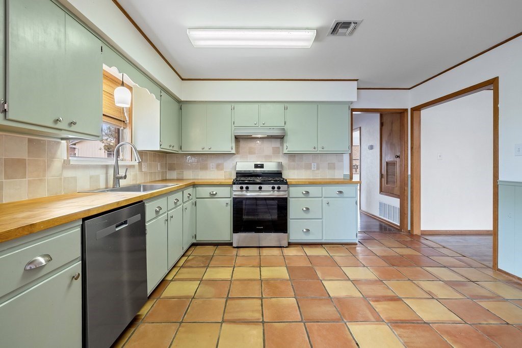 Situated on an oversized and quiet almost quarter acre lot, this single story 3 bed 3 full bath home has many recent updates while preserving charming accents like saltillo tile and classic brick. The open kitchen includes a gas range flanked by painted cabinets, butcher block counters and a view to the backyard. The recently completed primary suite has double closets, great natural light and an ensuite bath with designer tile. A large living room, two additional bedrooms and full bathrooms as well as a laundry room complete the home. The backyard is level and has a large and covered porch ideal for morning coffee or evening relaxation. Other recent updates include a new HVAC/Heating system, hot water heater and backyard storage building. This building is a great hobby space, workshop, man cave or she shed, storage building or kids playhouse. An additional small storage building leaves plenty of room for all your yard or garden tools. Home is move-in ready!