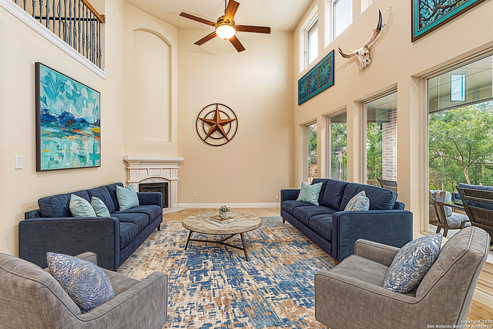 Welcome to 618 Oak Brook in the sought West New Braunfels Neighborhood of Oak Run. Don't miss that Oak Run enjoys significantly lower property taxes than nearby neighborhoods. This is a special home that can be seen from the moment you enter the vaulted entry. From the moment you enter, you're greeted by a warm and inviting space, starting with a library with French doors and a formal living room that frame the grand two-story entryway. The open family room is filled with natural light from a wall of windows, and features a cozy corner fireplace and soaring 18-foot ceilings - perfect for everyday living and family gatherings. The kitchen is the heart of the home, with a large island offering built-in seating, a walk-in pantry, and a butler's pantry connecting to the formal dining area - ideal for hosting holidays and special occasions. The plantation shutters are an extra touch of excellence. The private primary suite downstairs feels like a true retreat, complete with a curved wall of windows and a spacious bath featuring a garden tub, glass-enclosed shower, dual vanities, and a walk-in closet. A private guest suite is just off the entry hallway. Up the grand staircase, you'll find three bedrooms, a large game room and the perfect spot for a media room, giving everyone their own space to relax, play, or work. There is ample storage on both levels and in the 2 pull down attics. Don't miss the peaceful upstairs view of the trees - a perfect backdrop for quiet mornings or evening sunsets. Set on a quiet cul-de-sac lot with beautiful mature trees and a three-car garage, 618 Oak Brook offers wonderful convenience to top-rated schools, shopping, dining, and entertainment. This is a home built for making memories - come see it today!