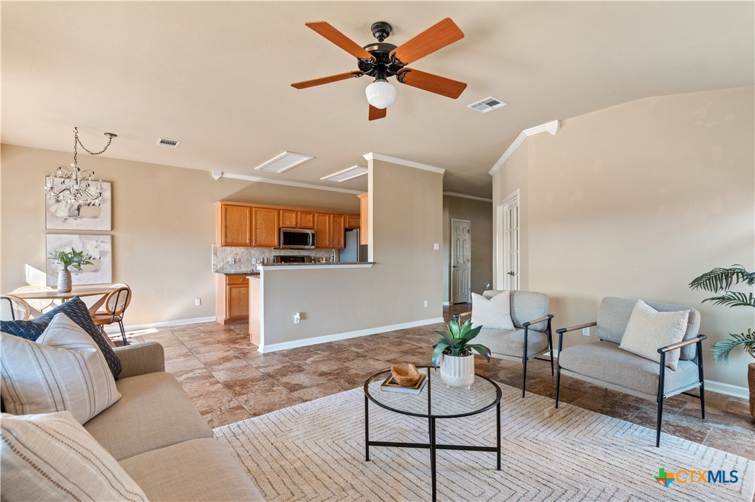 This charming and cozy home is next to Cedar Park's thriving entertainment district - Blue Corn Harvest, 1431 Cafe, BJs Brewhouse, Salb BBQ, Tumble 22, and many more are within a 1/2 mile radius. Seven mature hardwood trees frame your entries and shade lush raised stone beds in front and back laws. Matching granite counters in the kitchen and bathrooms and stainless steel appliances. All bedrooms have engineered hardwood flooring and oversized tile throughout - no carpet! Contemporary ceiling fans and Bali window blinds in all rooms. Designer cabinet pulls and door knobs throughout. The garage has an expoxy sealed floor and fresh paint on the walls. Two sheds, washer/dryer and refrigerator will convey.