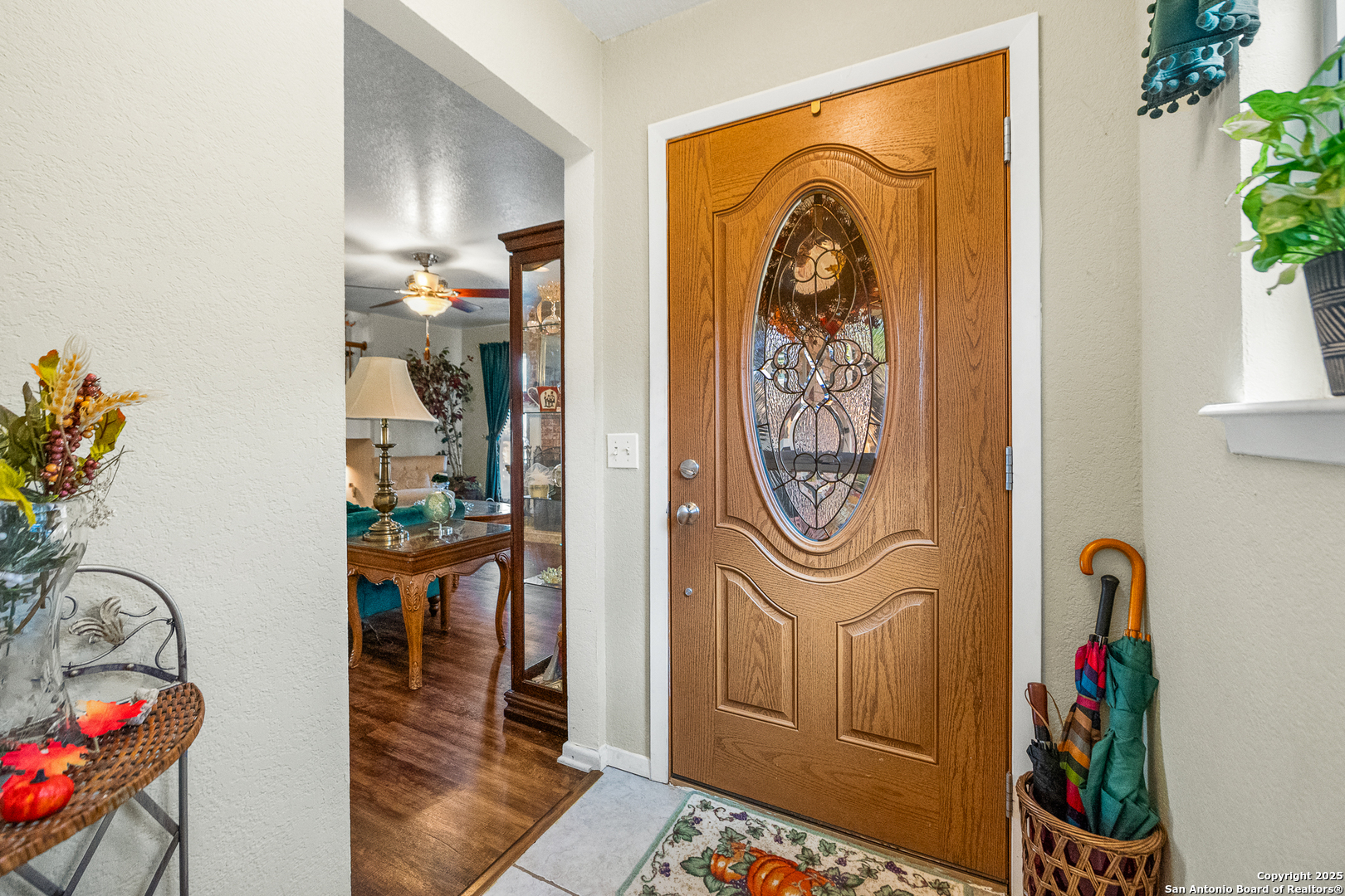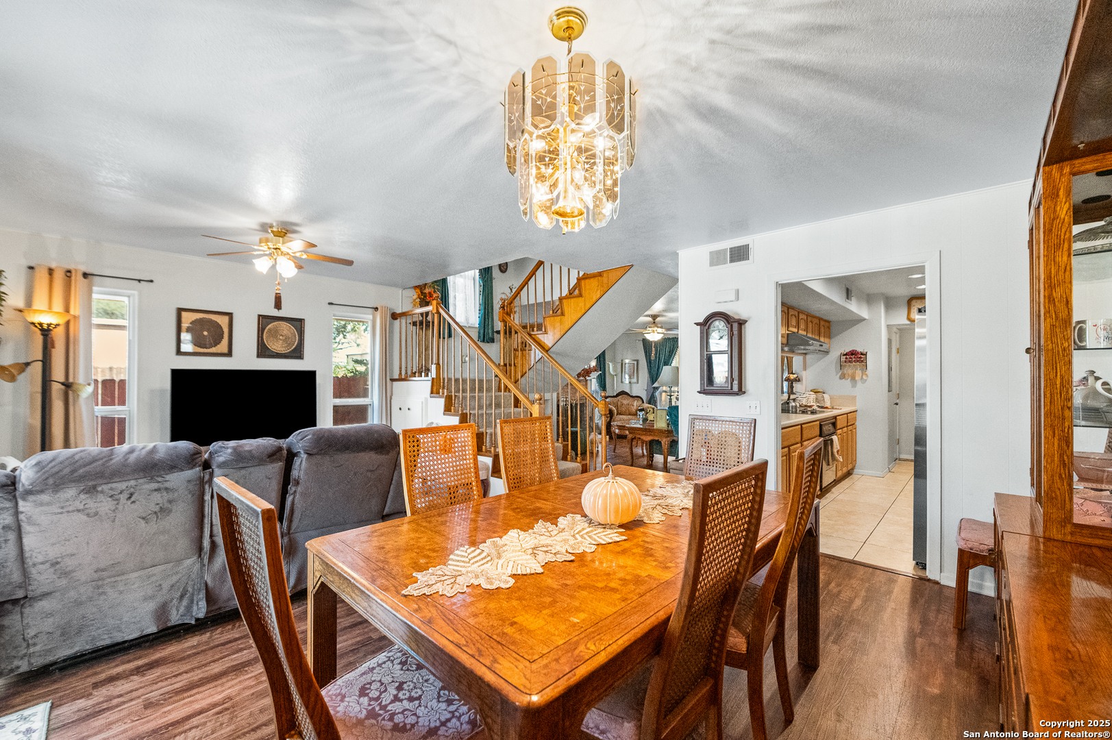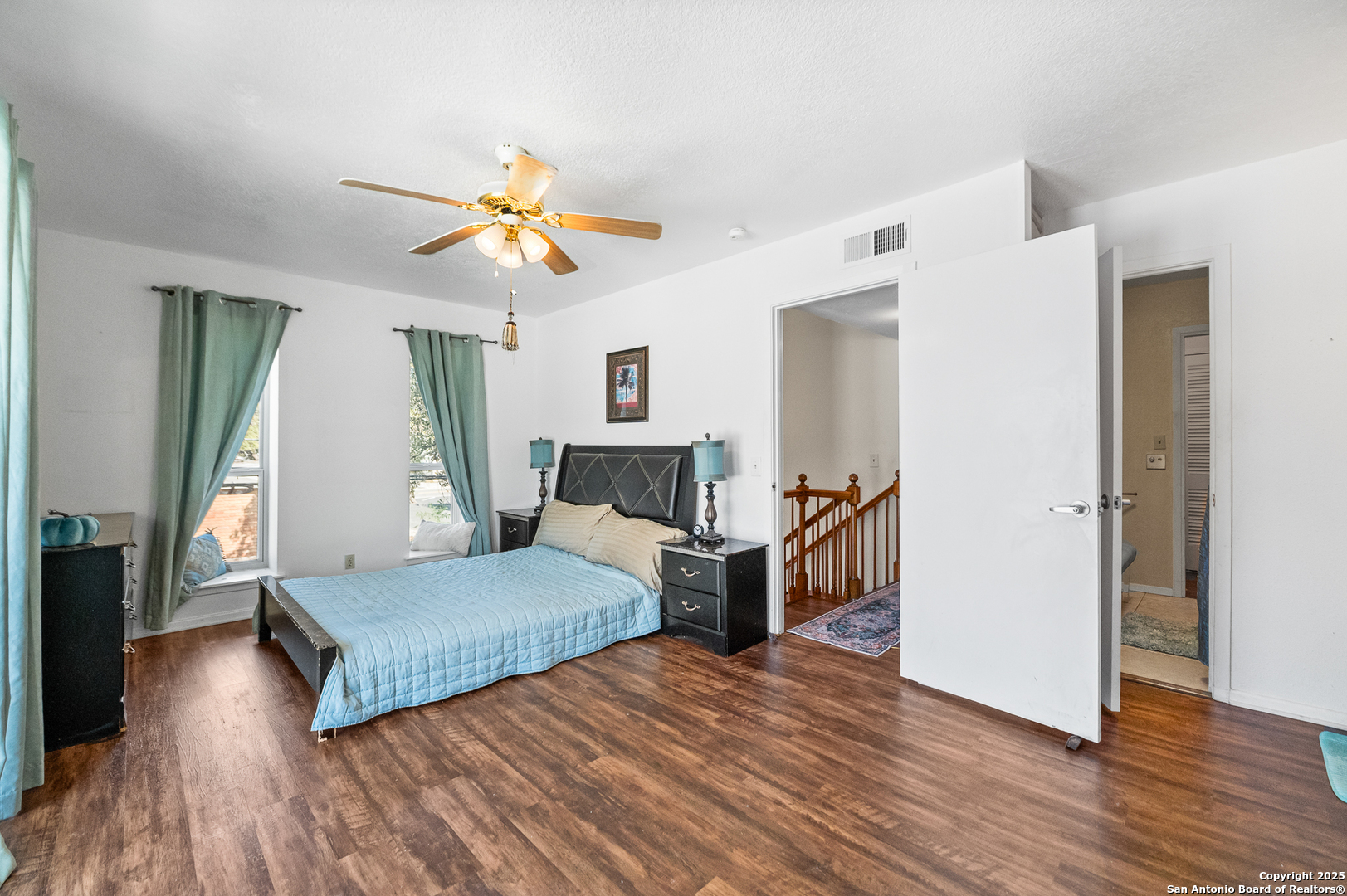 Welcome to this beautifully & private corner unit that blends charm, comfort, & functionality in all the right ways. Gorgeous natural light fills this spacious home featuring an open floor plan that makes everyday living feel effortless. The inviting living room sets the tone with a classic brick fireplace,wood-burning or gas-for cozy evenings or casual get-togethers. Just around the corner, the fun and flexible family room opens seamlessly to the dining area, creating a warm space that's perfect for entertaining or relaxing with loved ones. The kitchen is a standout with generous storage, ample counter space for meal prep, and a welcoming eat-in breakfast bar that connects beautifully with all main living areas. Whether you're chatting with guests or keeping an eye on what's happening in the family room, this kitchen is the heart of the home. Upstairs, you'll find two spacious and relaxing bedrooms, each with its own dedicated vanity area, connected by a shared bathroom and shower/tub combo-ideal for privacy and convenience. The second bedroom features sliding glass doors that open onto a balcony overlooking your private enclosed patio, which leads directly to a large, two-car garage. Beyond the home, enjoy a well-maintained community with top-notch amenities including a pool, park and playground, dog run, clubhouse, and a friendly, responsive management team. Conveniently close to the airport for travelers and with easy access to both 281 and 410 and Wurzbach Pkwy, everything you need is just minutes away. Comfort, space, and community-it's all here, waiting for you.