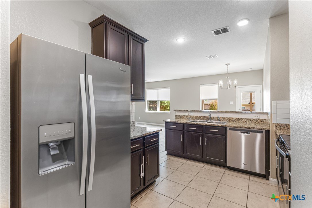 Welcome Home! This brand-new, single-story home features 3 bedrooms and 2 bathrooms in a thoughtfully designed layout. The kitchen boasts beautiful wood cabinetry, energy-efficient appliances. Fresh paint and new carpet throughout give the home a crisp, move-in-ready feel. The front bedroom features a stylish accent wall, while remote-controlled shades throughout the home add comfort and convenience. Additional highlights include raised six-panel doors, brushed nickel hardware, a spacious primary closet, and a convenient utility room. Step outside to enjoy the covered patio-perfect for relaxing or entertaining. This home is packed with modern features for comfortable, stylish living!