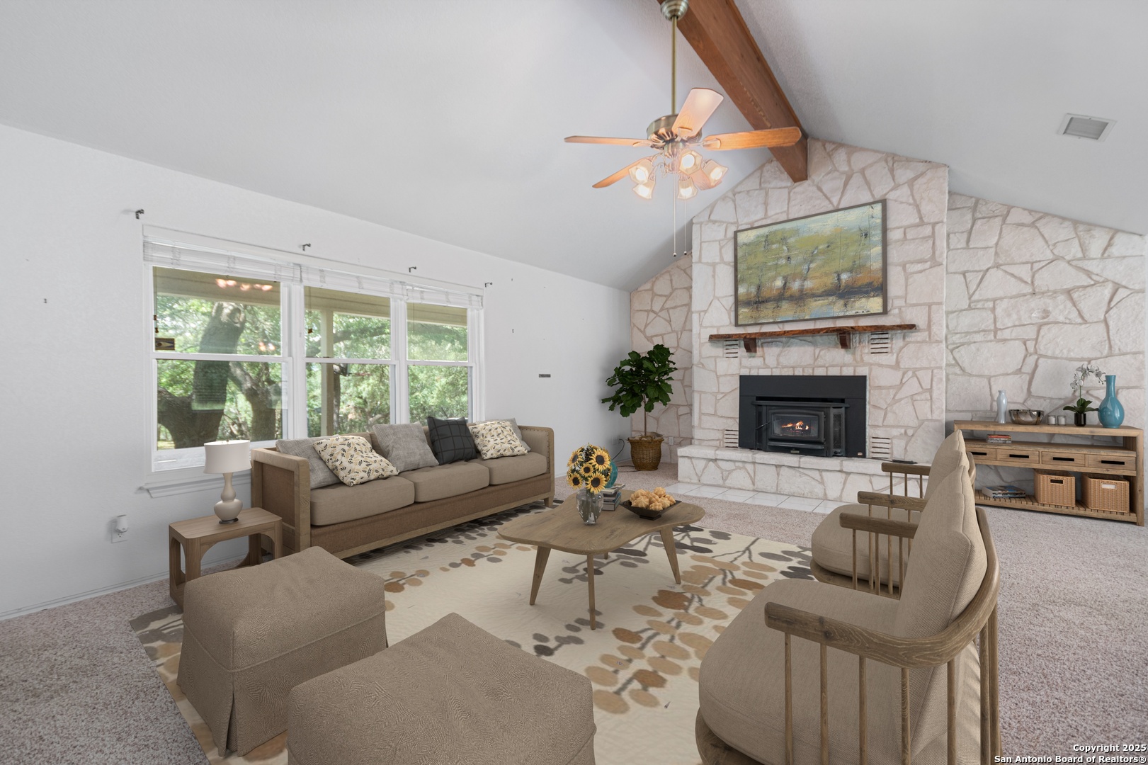 Charming 3-Bedroom Ranch-Style Home on 2 Acres with Endless Potential. Nestled on a spacious 2-acre lot, this classic 3-bedroom, 2-bath ranch-style home offers the perfect blend of country charm and untapped potential. Set back from the road and surrounded by mature trees and open skies, the property provides a peaceful retreat with room to grow. Inside, the heart of the home features a warm and inviting living room anchored by a stunning floor-to-ceiling rock fireplace-perfect for cozy nights in or entertaining guests. The open floor plan includes a functional kitchen with ample cabinet space and a breakfast area. Each of the three bedrooms offers generous space and natural light, with the primary suite including an en-suite bath. The home's single-level design provides ease of living and accessibility. With great bones, classic features, and a solid foundation, this property is ready for your personal touches. Whether you're a first-time buyer, an investor, or someone seeking a countryside escape, this home is full of promise.
