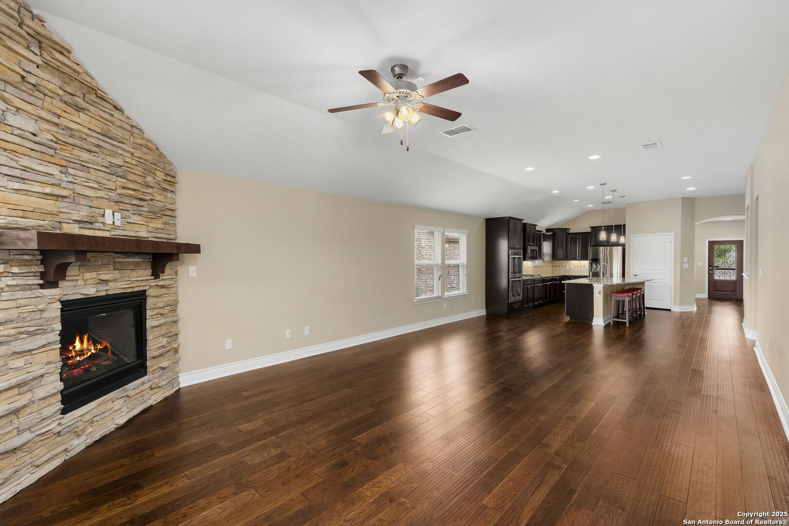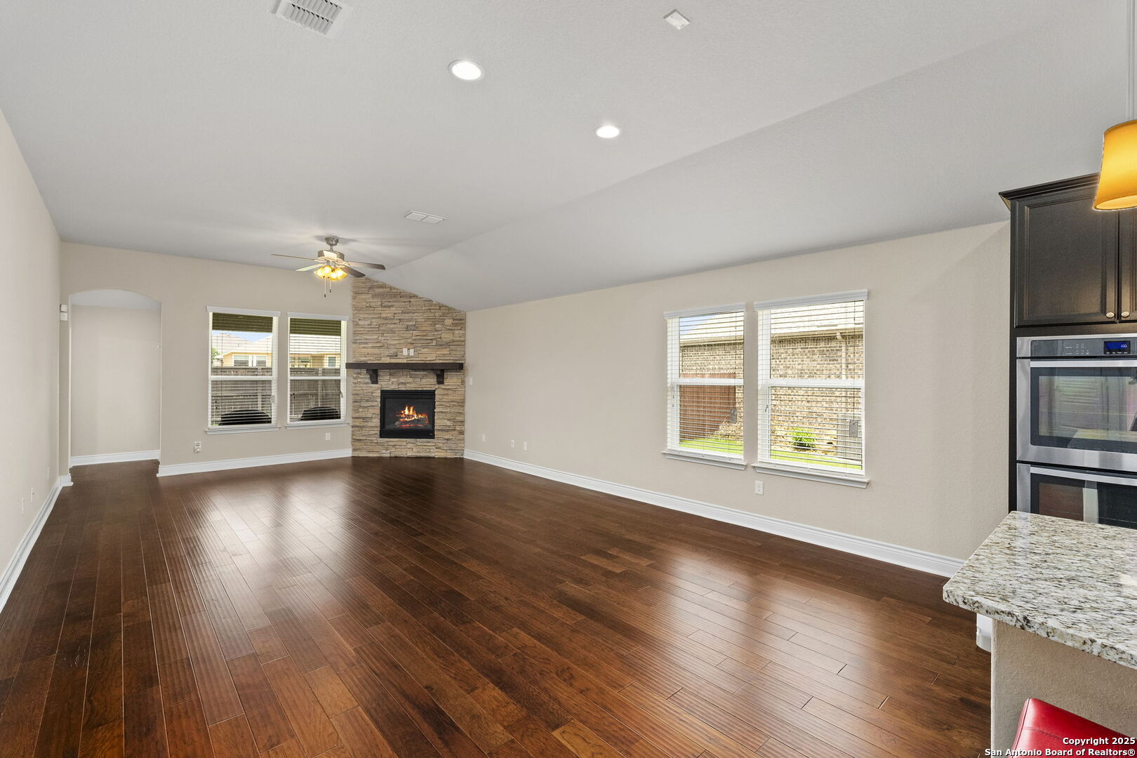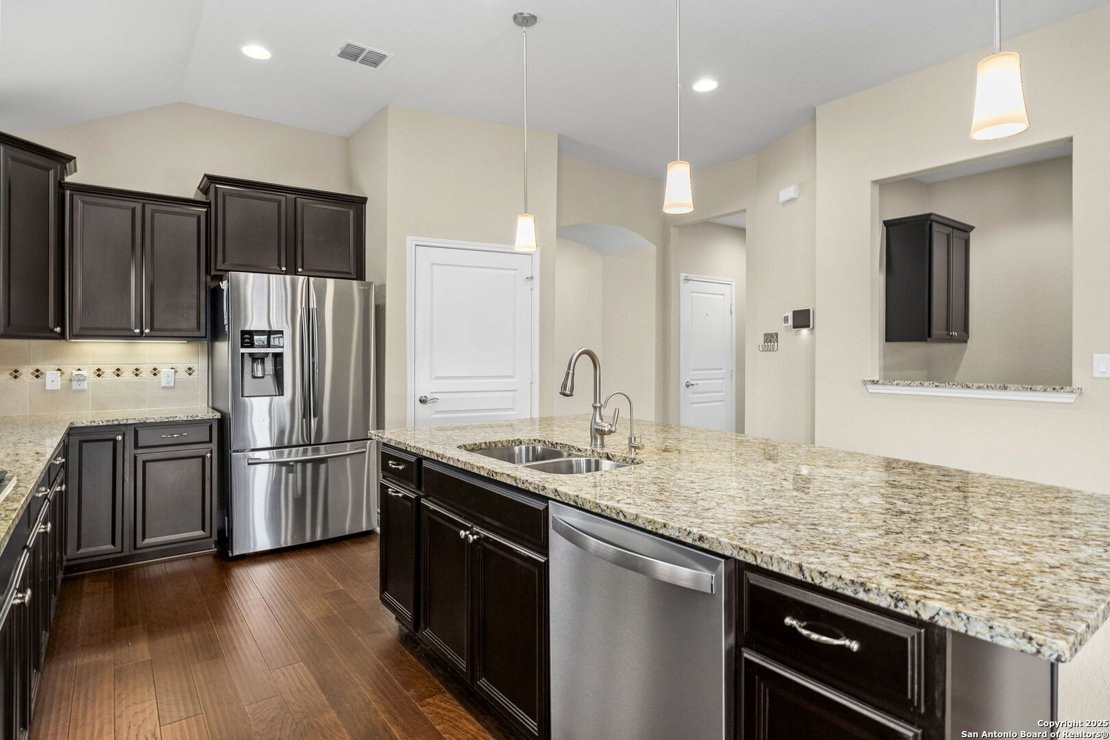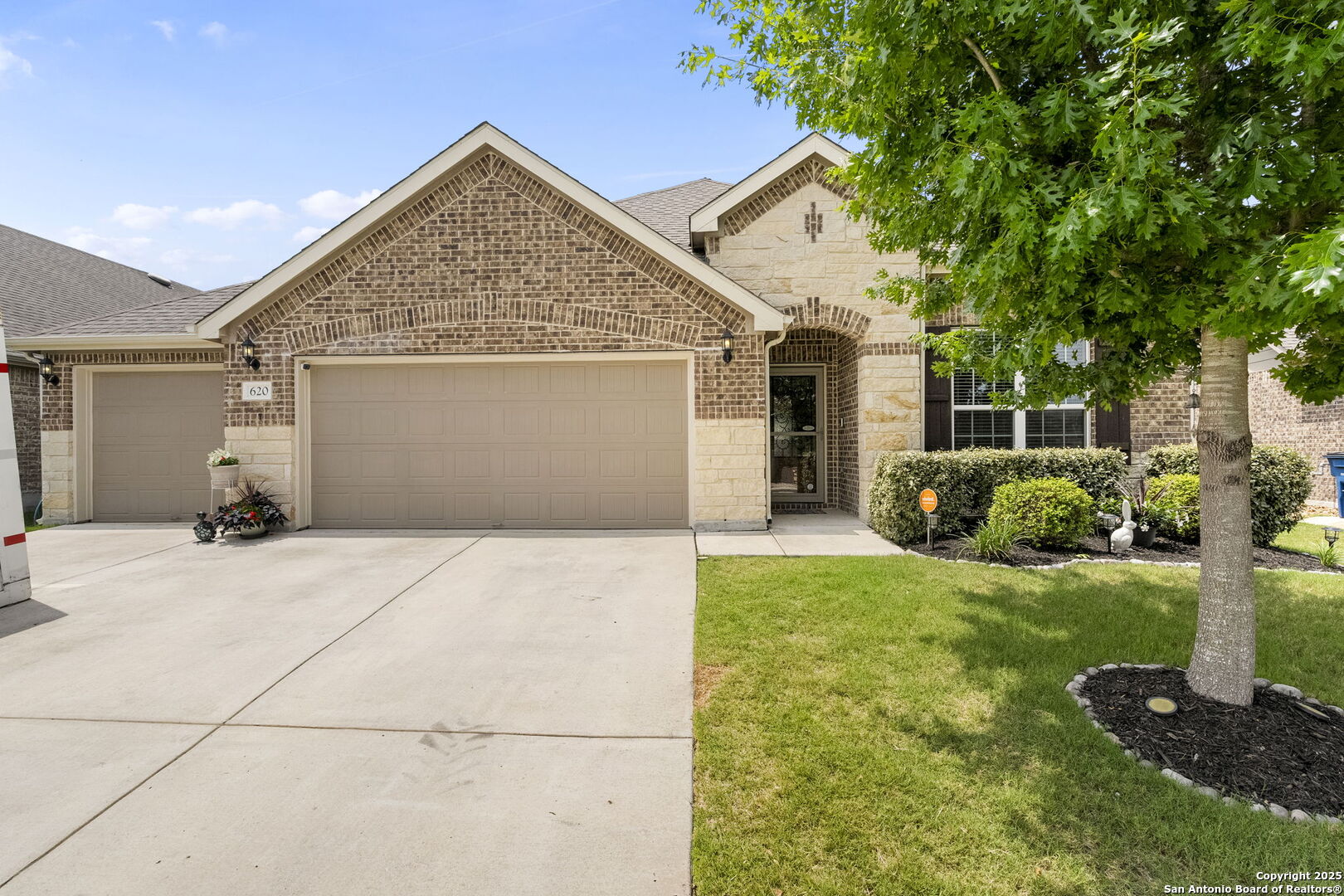 Still accepting back up offers.Welcome to this truly exceptional Pulte-built home in the desirable Ridgemont community! Builder Home Warranty till 11-2027 and Choice Appliance Home Warranty till 9-2027. Built in 2017 and meticulously maintained, this single-story, ADA-compliant home features 36" doorways, a roll-in shower, grab bars, and no steps-perfect for accessibility and comfort. Inside, enjoy 3 bedrooms, 2 baths, a rare 3-car finished garage, and a front flex space ideal for a home office or dining. Stunning Mohawk hand-scraped hardwood floors, granite counters in kitchen and baths, double oven, gas stove, upgraded microwave, and pull-out drawers create a beautiful, functional kitchen. Extras include: surround sound wiring, canned lighting, faux wood blinds, ceiling fans in all rooms, mudroom with built-ins, and a laundry room with sink and cabinets. Primary suite boasts a roll-in shower, private toilet room, and extra storage. Enjoy peace of mind with a lifetime water softener, water filtration system, newer windows, full gutters, professionally maintained sprinkler & HVAC systems, foundation stabilization with warranty, and fresh interior/exterior paint. Pest control system inside walls. The HOA features a pool, grill area, and summer food trucks! This home is move-in ready and lives like a model-don't miss it!