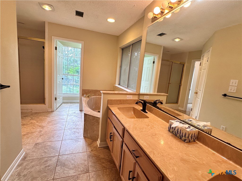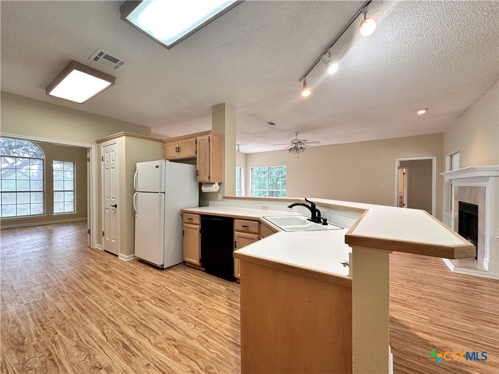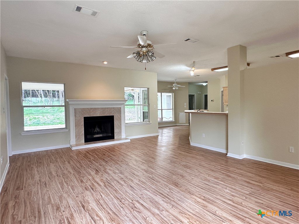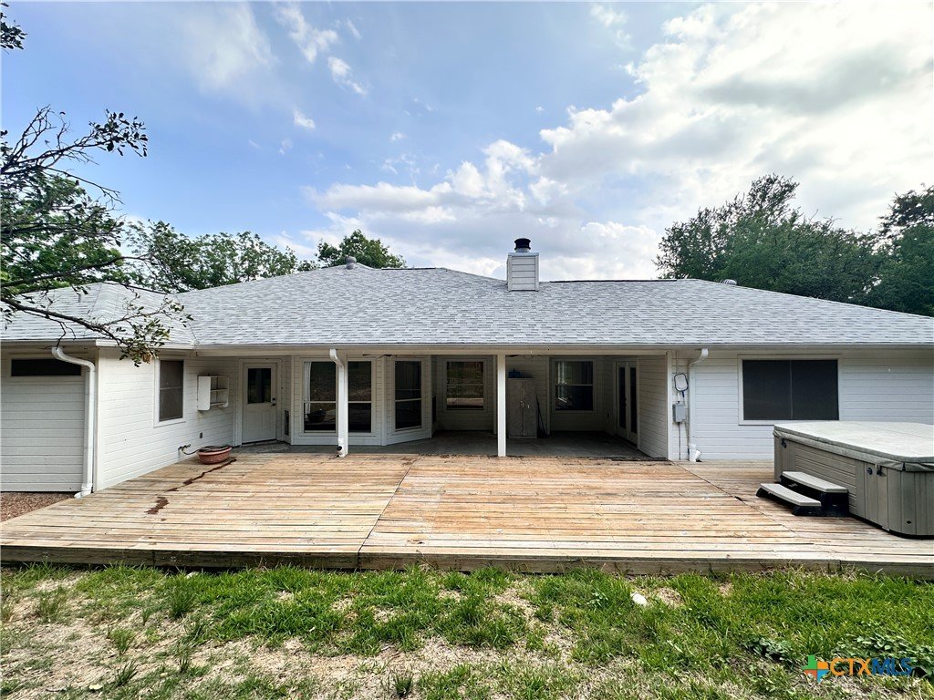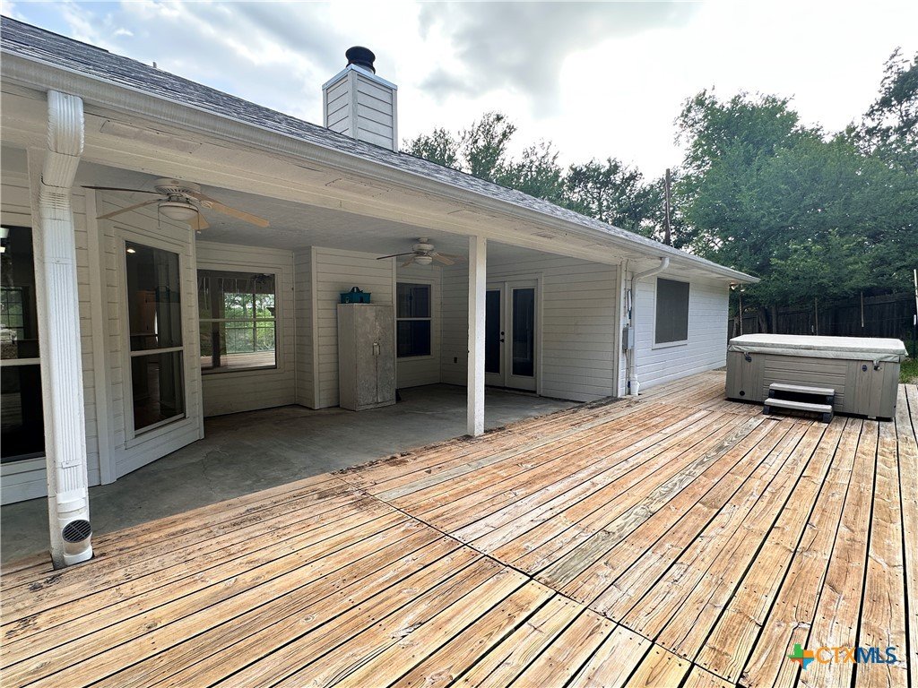 A 3/2 home with a full acre, tree covered lot that offers a nice balance of indoor and outdoor space. The 2025 sqft feels very spacious, especially with the open layout between the kitchen and living room. The fireplace is always a cozy touch, and the breakfast bar is super convenient for quick meals. The primary suite has a large bathroom with a double vanity and garden tub, separate shower, two walk-in closets is definitely a plus. A covered patio with a large deck significantly expands your outdoor living space and is perfect for entertaining, no matter the weather. Outdoor spa, refrigerator, and washer/dyer all come with the home. Roof is 1 year old, HVAC systems with UV lights and HEPA filters plus all metal ductwork, and just freshly painted! All this home needs is your final touches.