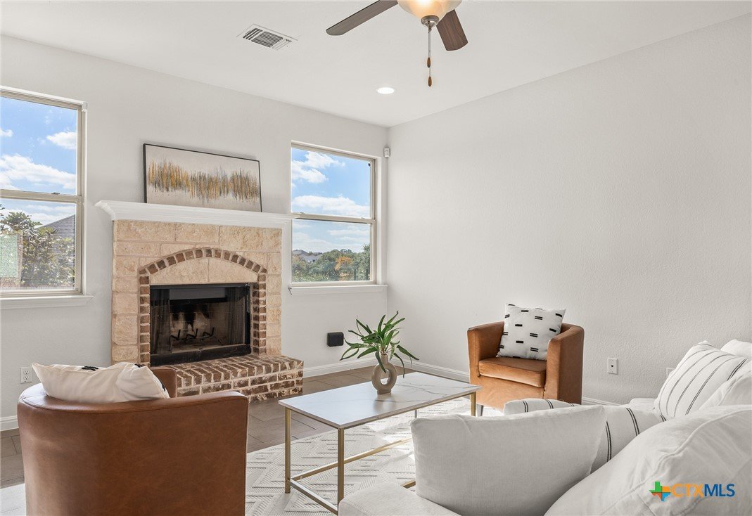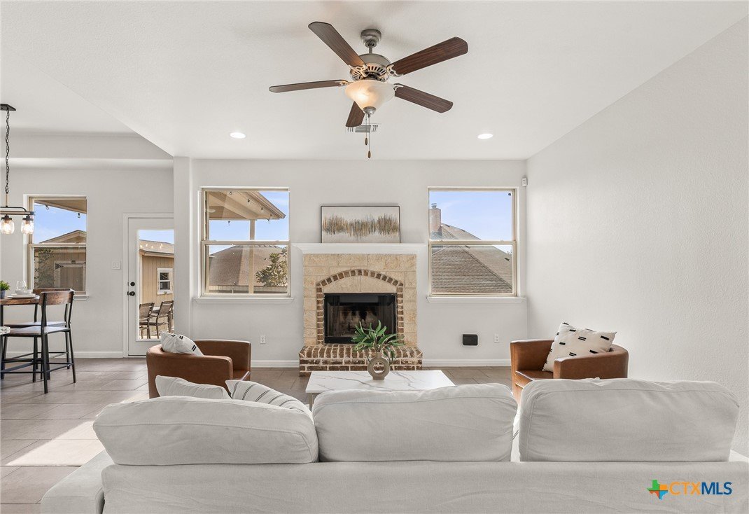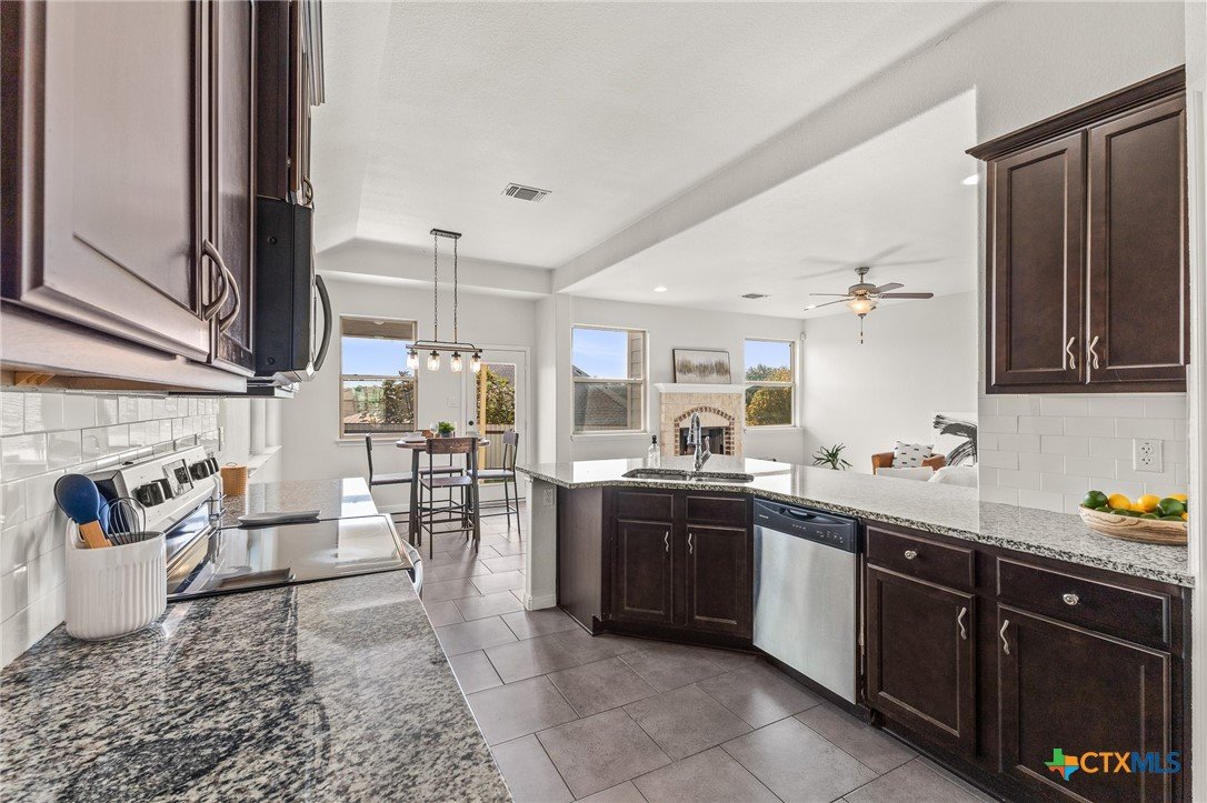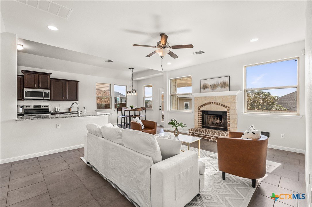 SELLER OFFERING RATE BUY DOWN! Built in 2017, this two-story residence offers 2,390 square feet of thoughtfully designed living space with 4 bedrooms, 2.5 bathrooms, a formal dining area, and an upstairs second living space that is perfect for family gatherings or a game room. Step inside to find an open concept main level featuring wood look tile flooring, a spacious living room with a wood burning fireplace, and a formal dining area ideal for entertaining. The kitchen is the heart of the home, complete with granite countertops, stainless steel appliances, a pantry, and ample cabinet space, all open to the dining and living areas for effortless flow. Upstairs, enjoy a large secondary living area offering flexibility for a playroom, media space, or home office. The primary suite includes a spa like bathroom with dual vanities, a soaking tub, separate shower, and a generous walk in closet. Additional bedrooms are well sized and versatile for guests, family, or work from home setups. Outside, unwind in your private backyard featuring a covered patio, privacy fencing, and room to entertain. The two car garage and extended driveway add functionality and convenience. Located near schools, shopping, parks, and major highways, this home combines comfort, space, and modern design in one of Killeen’s most desirable neighborhoods.