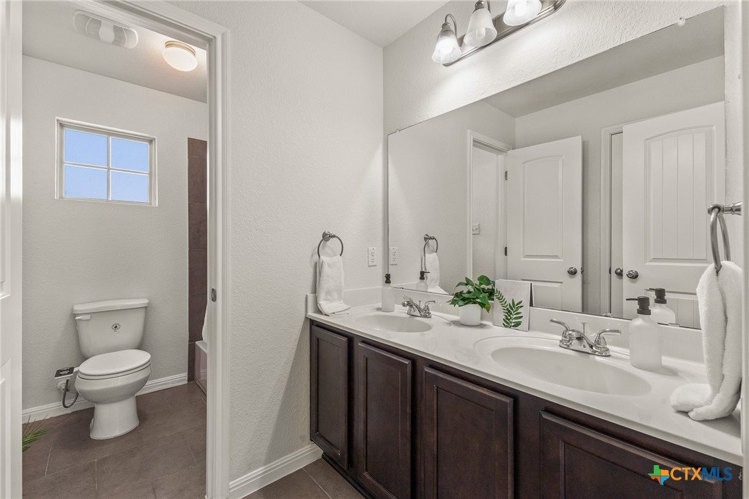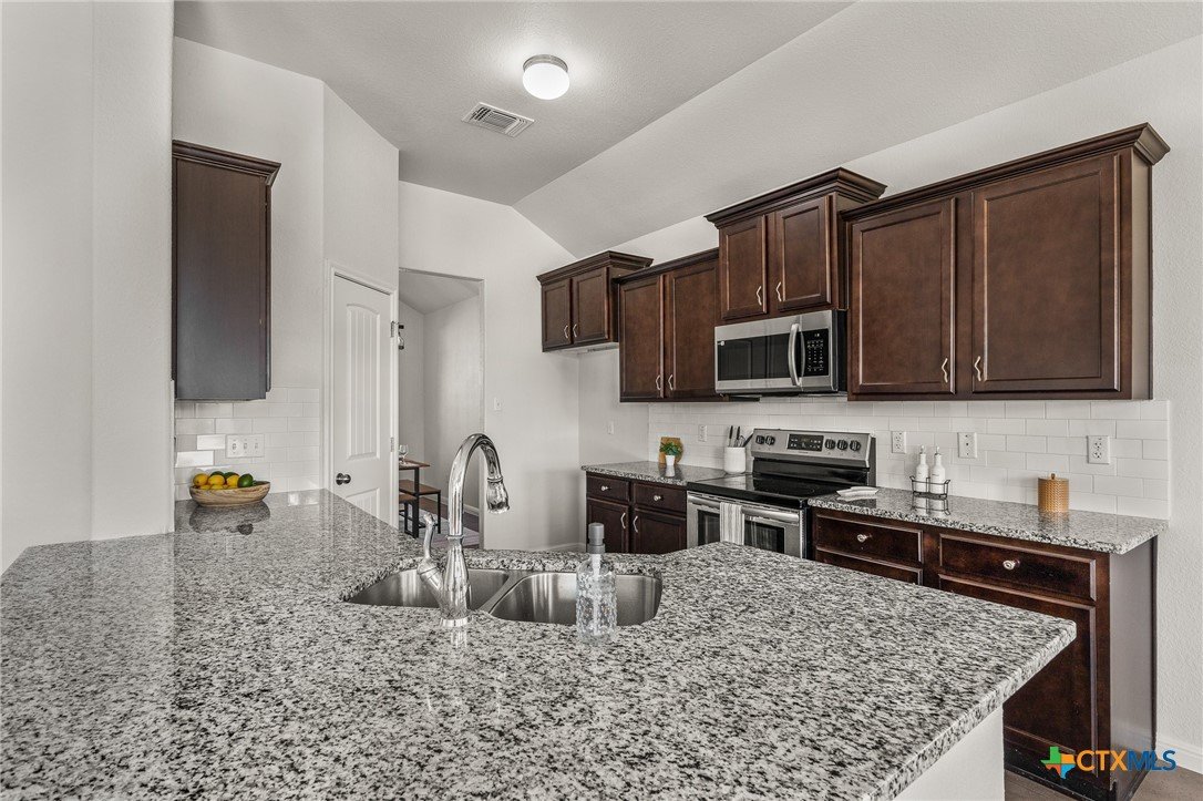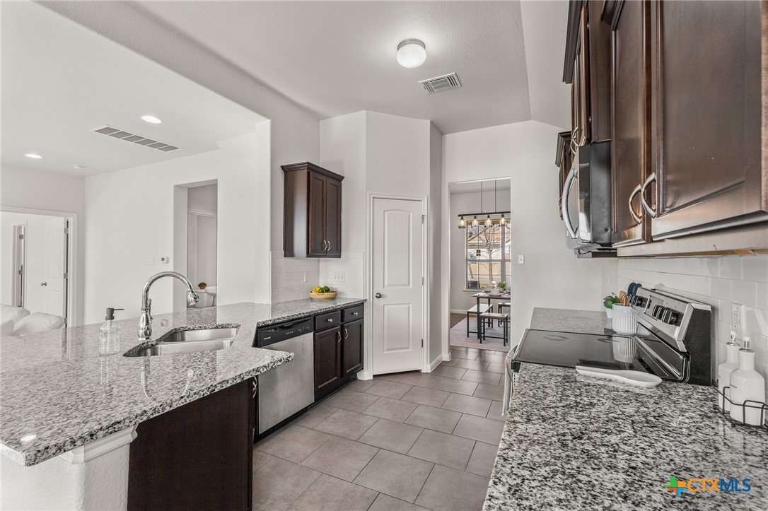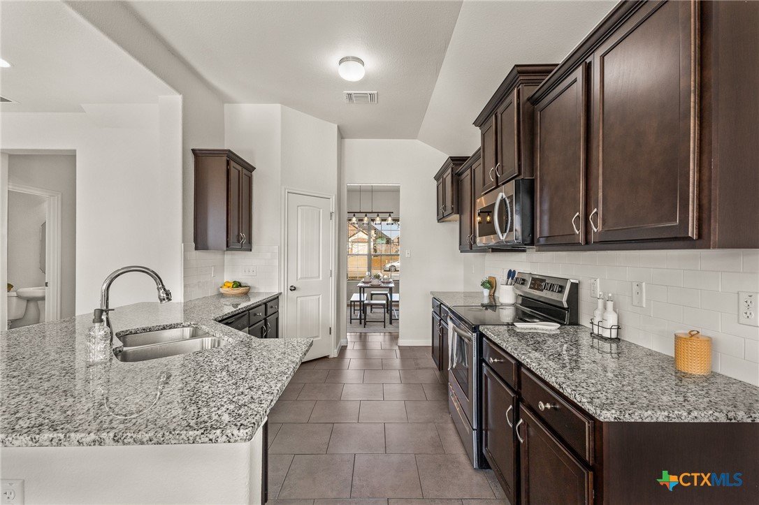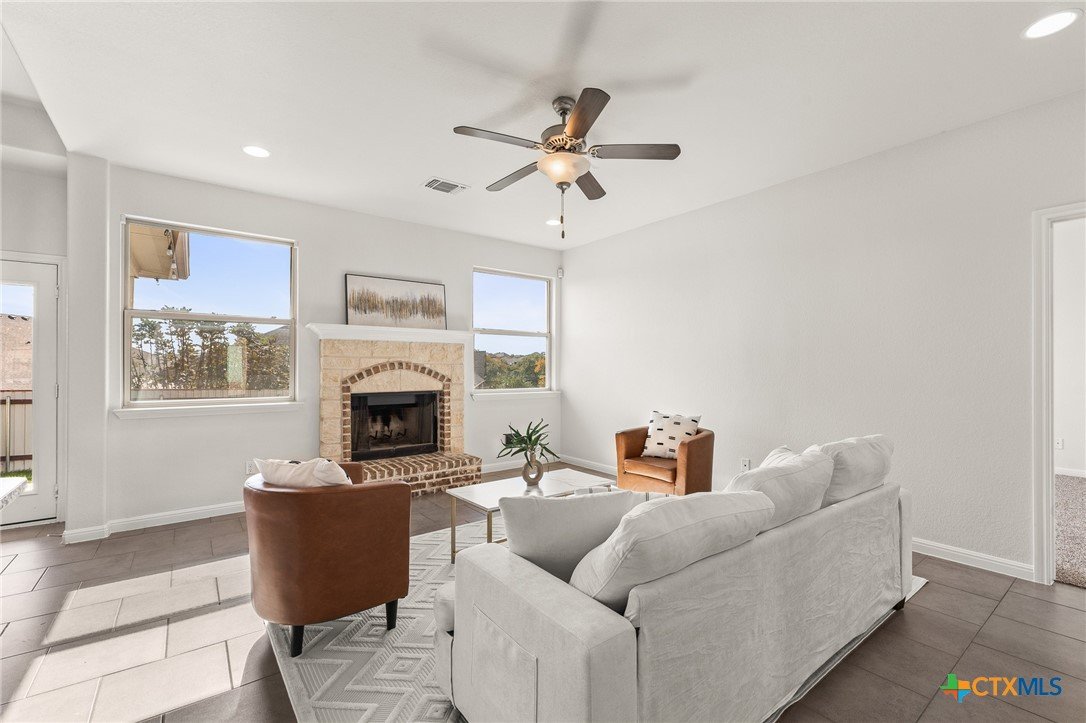 SELLER OFFERING RATE BUY DOWN! Built in 2017, this two-story residence offers 2,390 square feet of thoughtfully designed living space with 4 bedrooms, 2.5 bathrooms, a formal dining area, and an upstairs second living space that is perfect for family gatherings or a game room. Step inside to find an open concept main level featuring wood look tile flooring, a spacious living room with a wood burning fireplace, and a formal dining area ideal for entertaining. The kitchen is the heart of the home, complete with granite countertops, stainless steel appliances, a pantry, and ample cabinet space, all open to the dining and living areas for effortless flow. Upstairs, enjoy a large secondary living area offering flexibility for a playroom, media space, or home office. The primary suite includes a spa like bathroom with dual vanities, a soaking tub, separate shower, and a generous walk in closet. Additional bedrooms are well sized and versatile for guests, family, or work from home setups. Outside, unwind in your private backyard featuring a covered patio, privacy fencing, and room to entertain. The two car garage and extended driveway add functionality and convenience. Located near schools, shopping, parks, and major highways, this home combines comfort, space, and modern design in one of Killeen’s most desirable neighborhoods.