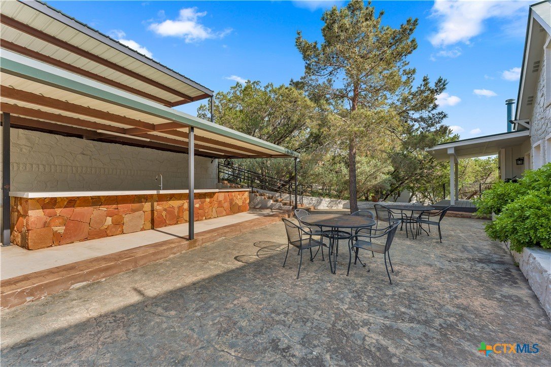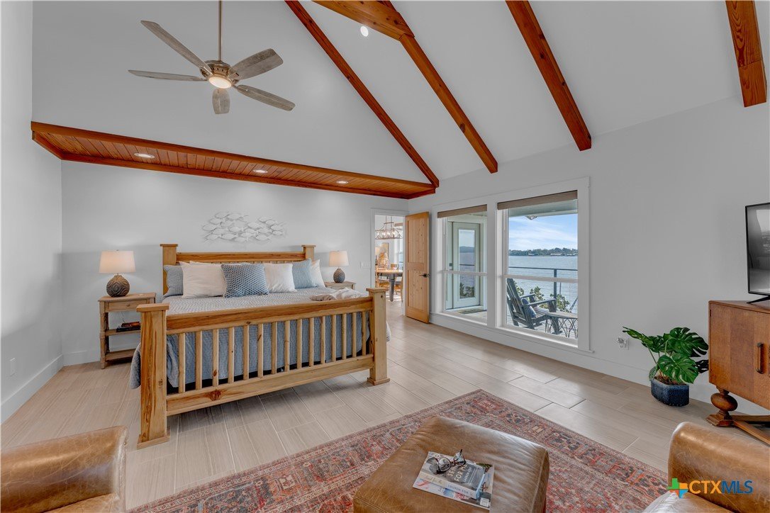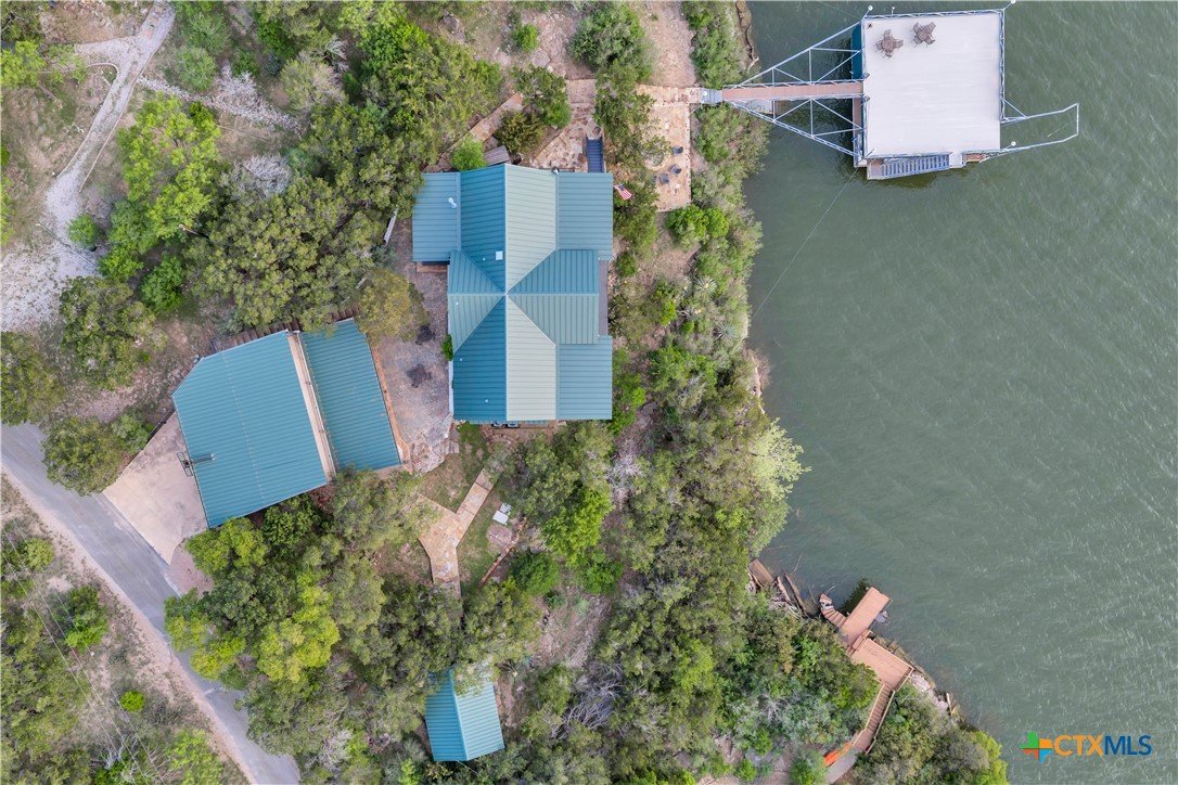 Experience the ultimate lakeside retreat on the eastern shores of Lake Buchanan, created for those who appreciate both serenity and outdoor adventure, this remarkable waterfront estate provides deep water access and some of the most desirable fishing. This beautifully appointed home is filled with natural light and sweeping lake views, showcasing expansive windows throughout, each fitted with Legacy blinds, several of which are remote controlled for added convenience. The primary suite offers a peaceful escape, highlighted by a luxurious walk-in shower with lighting and a custom music system for a spa inspired experience. A private guest suite is tucked into the loft, while a spacious bunkroom, also ideal as an additional lounge area, includes a full bath and comfortable seating space. A large game room creates the perfect environment for leisure and hosting. At the center of the home, elegant Taj Mahal marble countertops enhance the kitchen and main living areas, leaving a lasting impression. The property also features a detached one bedroom guest cottage complete with a full bath and kitchenette, providing added privacy and comfort for visitors. The outdoor kitchen and patio set the stage for grilling and dining under the open sky, while evenings can be spent gathered around the fire pit enjoying s’mores and meaningful moments beneath the stars. A standout feature is the custom engineered two story boat dock, designed with a specialized cable system that allows for smooth adjustment to changing water levels. Built with both strength and ease of use in mind, the dock includes two boat slips with lifts for secure and convenient lake access. A dedicated storage room keeps equipment organized, while on site rod holders and a fish cleaning station, equipped with electricity and a water pump, cater to fishing enthusiasts. This exceptional waterfront feature blends durability, thoughtful design, and practicality for an elevated lakefront lifestyle.
