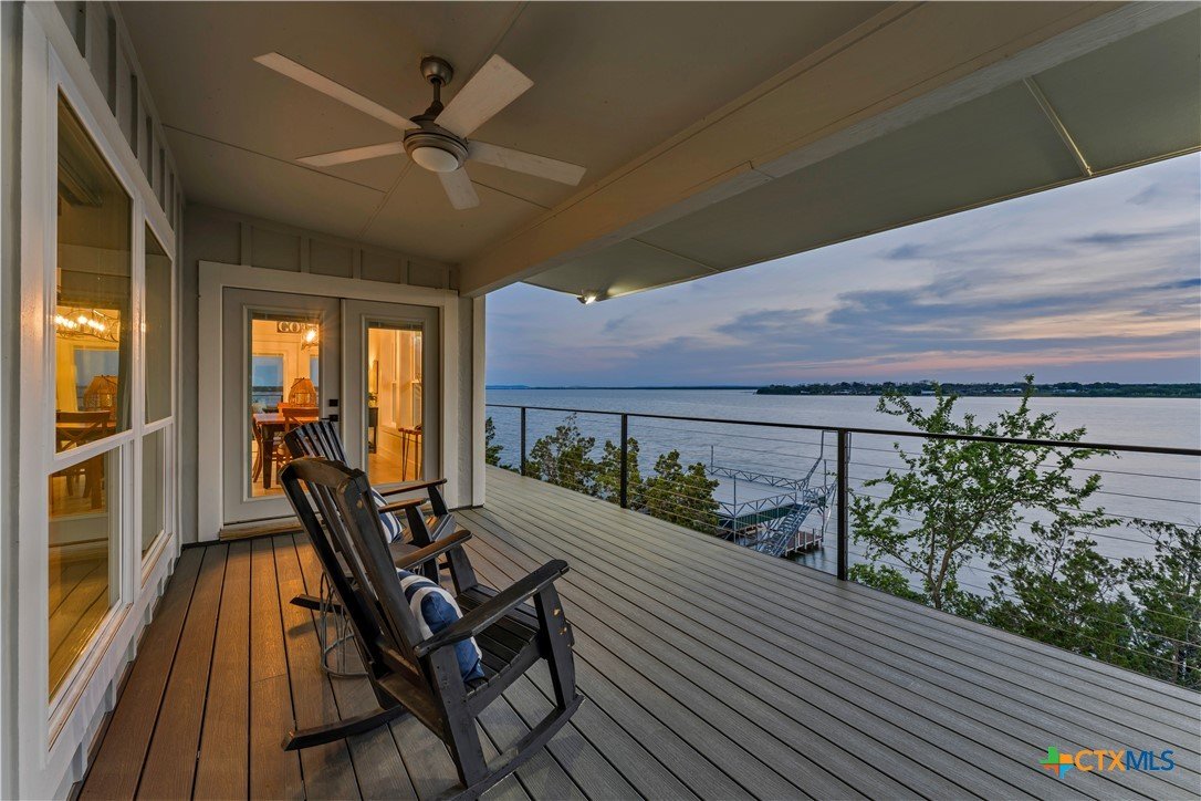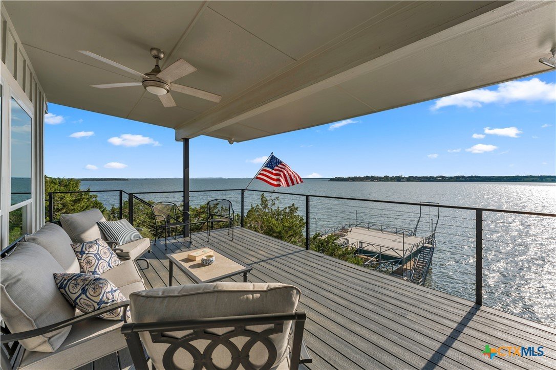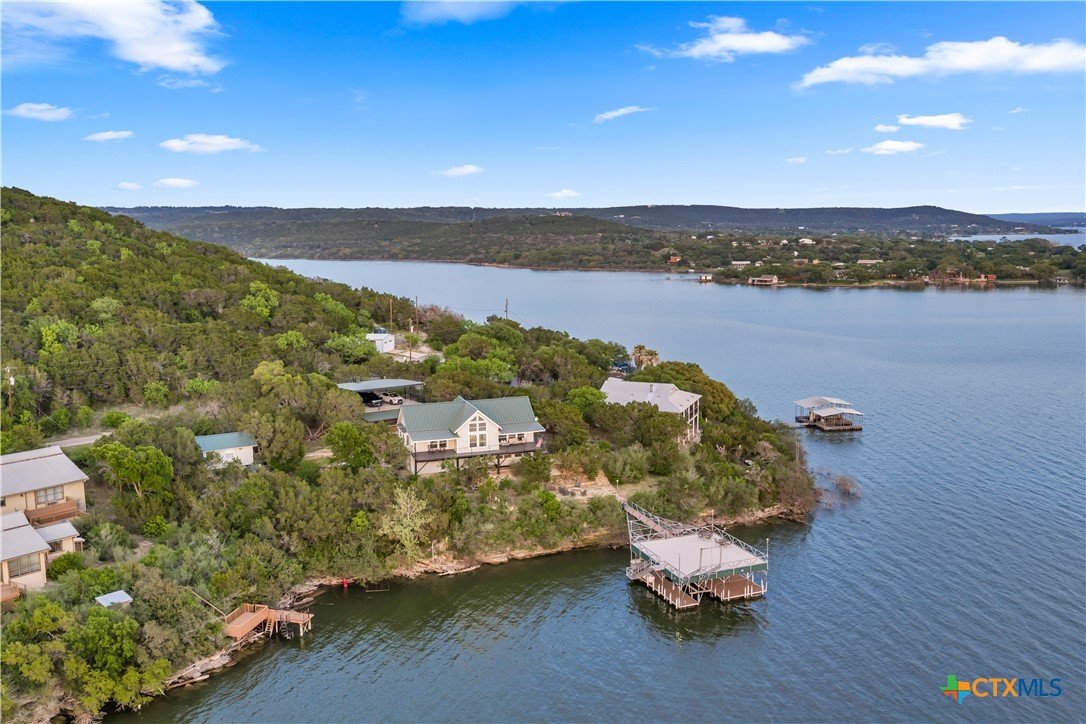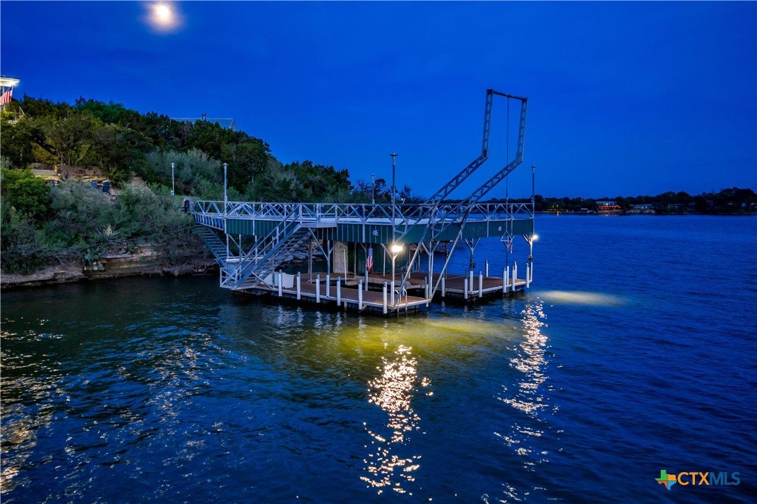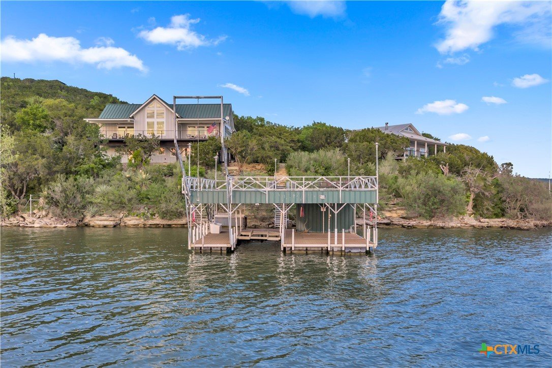 Experience the ultimate lakeside retreat on the eastern shores of Lake Buchanan, created for those who appreciate both serenity and outdoor adventure, this remarkable waterfront estate provides deep water access and some of the most desirable fishing. This beautifully appointed home is filled with natural light and sweeping lake views, showcasing expansive windows throughout, each fitted with Legacy blinds, several of which are remote controlled for added convenience. The primary suite offers a peaceful escape, highlighted by a luxurious walk-in shower with lighting and a custom music system for a spa inspired experience. A private guest suite is tucked into the loft, while a spacious bunkroom, also ideal as an additional lounge area, includes a full bath and comfortable seating space. A large game room creates the perfect environment for leisure and hosting. At the center of the home, elegant Taj Mahal marble countertops enhance the kitchen and main living areas, leaving a lasting impression. The property also features a detached one bedroom guest cottage complete with a full bath and kitchenette, providing added privacy and comfort for visitors. The outdoor kitchen and patio set the stage for grilling and dining under the open sky, while evenings can be spent gathered around the fire pit enjoying s’mores and meaningful moments beneath the stars. A standout feature is the custom engineered two story boat dock, designed with a specialized cable system that allows for smooth adjustment to changing water levels. Built with both strength and ease of use in mind, the dock includes two boat slips with lifts for secure and convenient lake access. A dedicated storage room keeps equipment organized, while on site rod holders and a fish cleaning station, equipped with electricity and a water pump, cater to fishing enthusiasts. This exceptional waterfront feature blends durability, thoughtful design, and practicality for an elevated lakefront lifestyle.