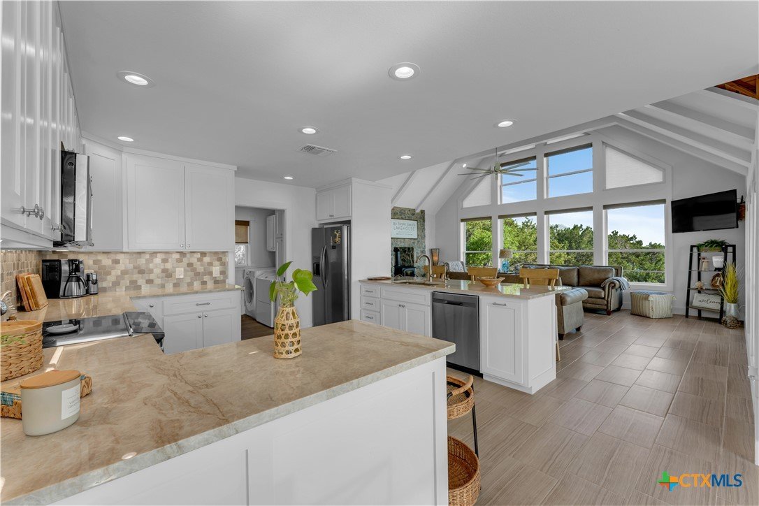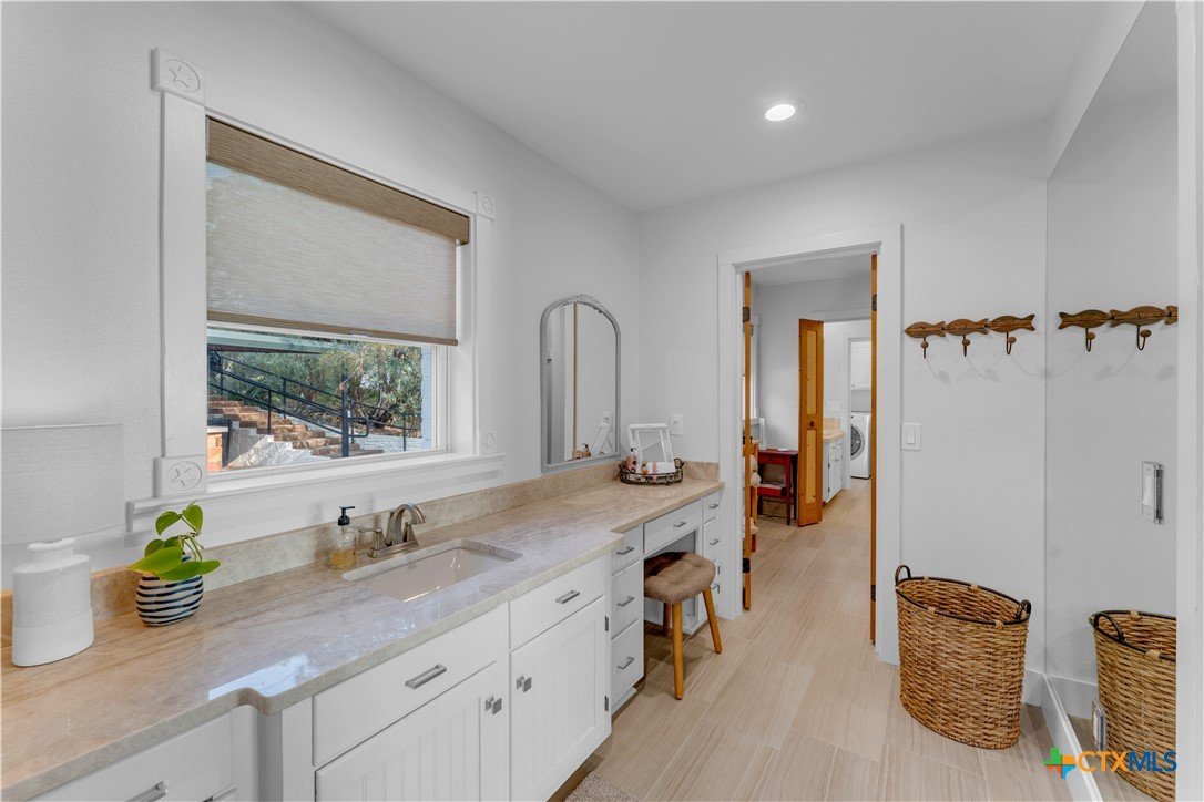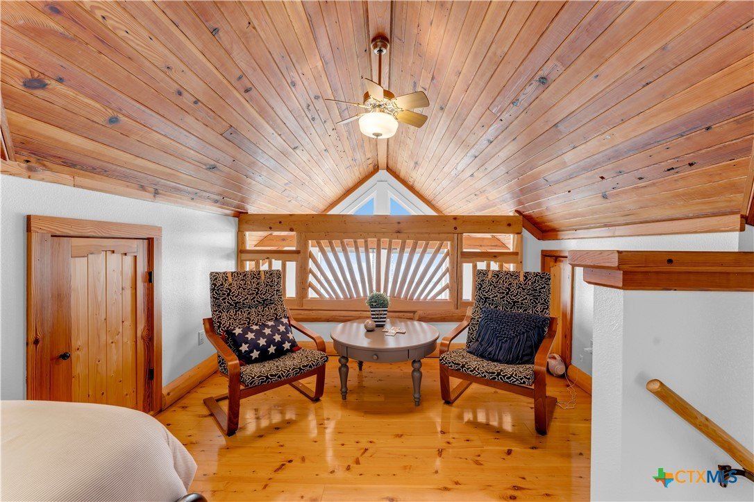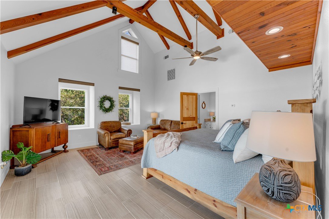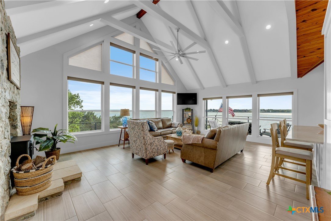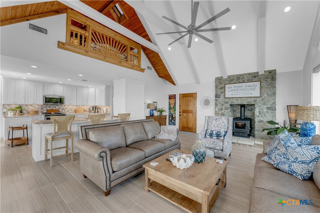 Experience the ultimate lakeside retreat on the eastern shores of Lake Buchanan, created for those who appreciate both serenity and outdoor adventure, this remarkable waterfront estate provides deep water access and some of the most desirable fishing. This beautifully appointed home is filled with natural light and sweeping lake views, showcasing expansive windows throughout, each fitted with Legacy blinds, several of which are remote controlled for added convenience. The primary suite offers a peaceful escape, highlighted by a luxurious walk-in shower with lighting and a custom music system for a spa inspired experience. A private guest suite is tucked into the loft, while a spacious bunkroom, also ideal as an additional lounge area, includes a full bath and comfortable seating space. A large game room creates the perfect environment for leisure and hosting. At the center of the home, elegant Taj Mahal marble countertops enhance the kitchen and main living areas, leaving a lasting impression. The property also features a detached one bedroom guest cottage complete with a full bath and kitchenette, providing added privacy and comfort for visitors. The outdoor kitchen and patio set the stage for grilling and dining under the open sky, while evenings can be spent gathered around the fire pit enjoying s’mores and meaningful moments beneath the stars. A standout feature is the custom engineered two story boat dock, designed with a specialized cable system that allows for smooth adjustment to changing water levels. Built with both strength and ease of use in mind, the dock includes two boat slips with lifts for secure and convenient lake access. A dedicated storage room keeps equipment organized, while on site rod holders and a fish cleaning station, equipped with electricity and a water pump, cater to fishing enthusiasts. This exceptional waterfront feature blends durability, thoughtful design, and practicality for an elevated lakefront lifestyle.