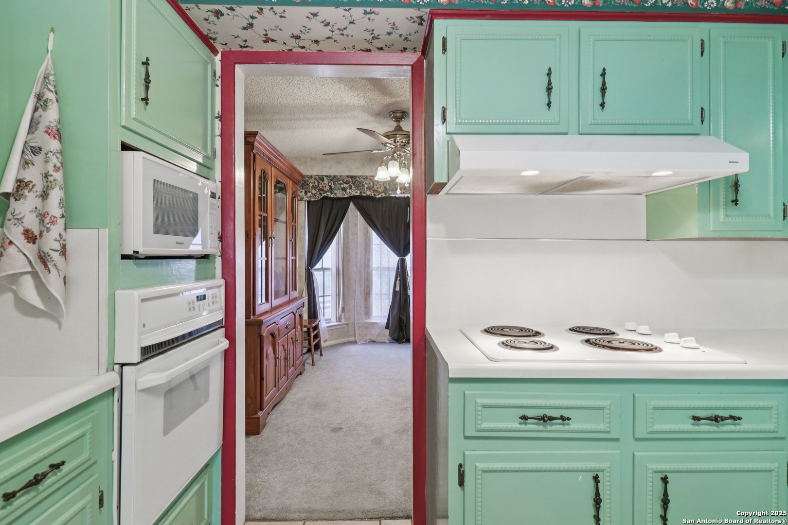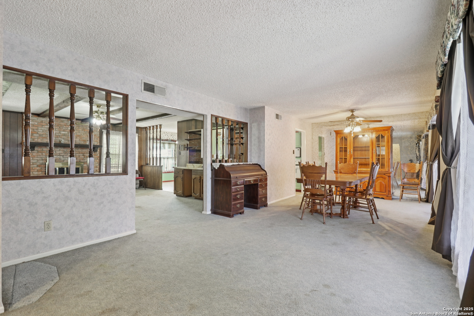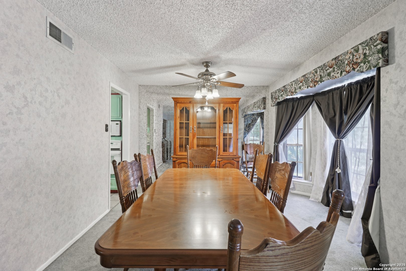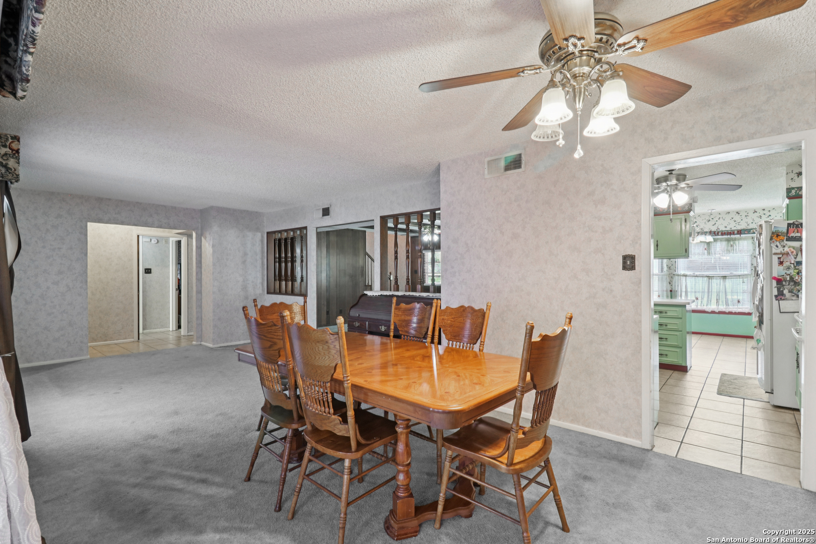 Welcome to a Home Full of Charm and Space! Come see this delightful 5-bedroom, 3-bathroom home on a spacious lot in the heart of Leon Valley. This older home is full of character and offers plenty of room to live, work, and relax. You'll love the flexible layout with generous living and dining areas, a cozy breakfast/reading nook, and a big kitchen, which is great for home cooks. The garage is oversized with space for large vehicles, a workstation, and extra storage. There's even additional parking -perfect for an RV or boat! Enjoy the outdoors on the covered patio or in the large front and back yards. There's a laundry room inside the home. Located near parks, schools, shopping, and dining, with easy access to Loop 410 and downtown San Antonio. No HOA and walking trails nearby make this a fantastic place. The refrigerator stays in the home. Please verify schools and room dimensions.
