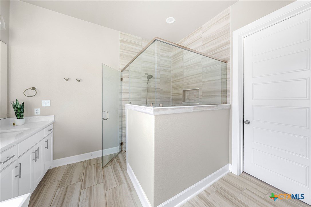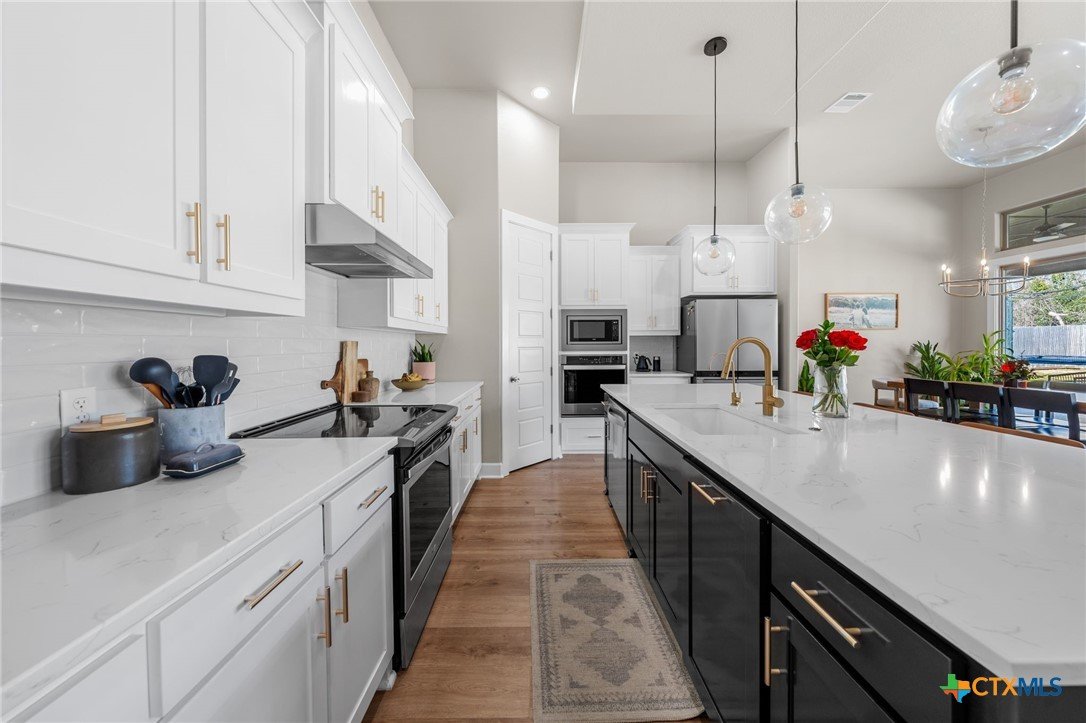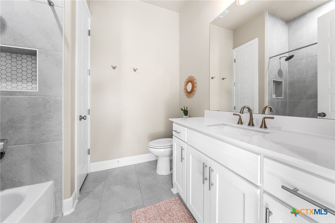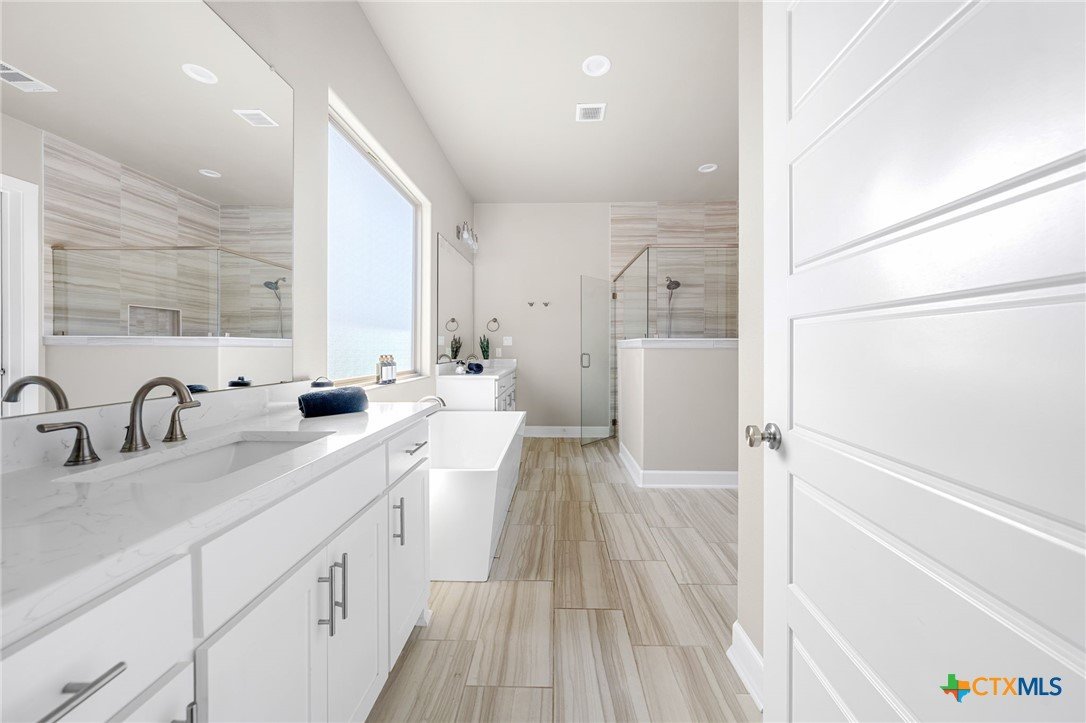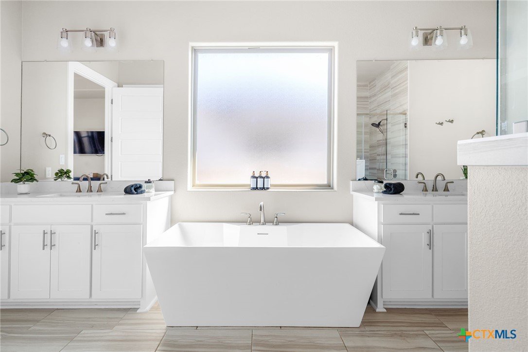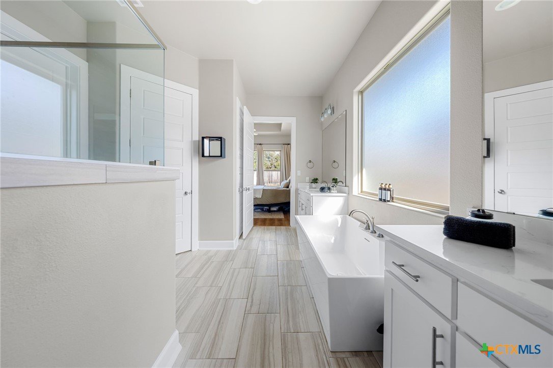 Welcome to this stunning 5-bedroom, 3-bathroom home spanning 2,538 sq. ft., where modern elegance meets comfort. Nestled against a serene greenbelt, this home offers privacy and picturesque views. Inside, the warm modern design is highlighted by quartz countertops, sleek stainless steel appliances, and an open-concept layout perfect for entertaining. The spacious primary suite features dual sinks, a luxurious standalone bathtub, and a walk-in shower. The 5th bedroom can also be dedicated as an office providing the ideal space for remote work or study. With a large backyard for outdoor gatherings and a three-car garage for ample storage, this home is both stylish and functional. Don’t miss this exceptional opportunity!