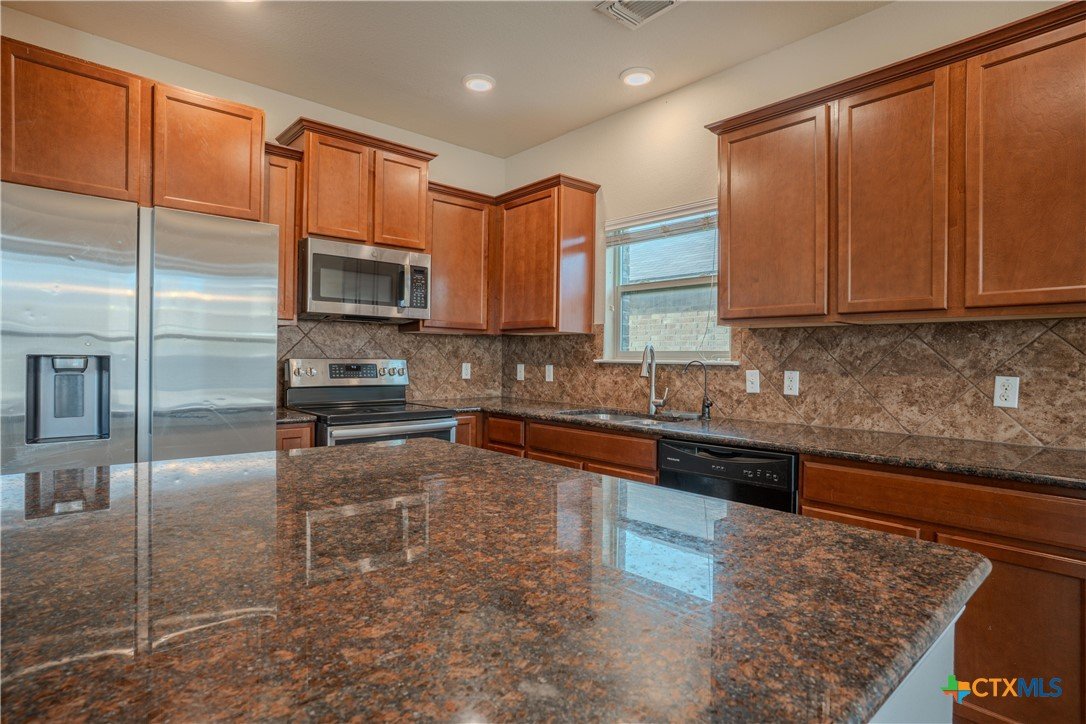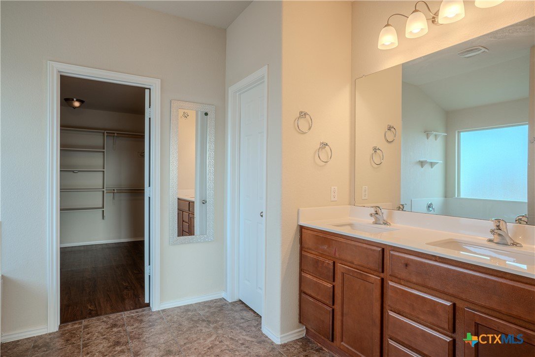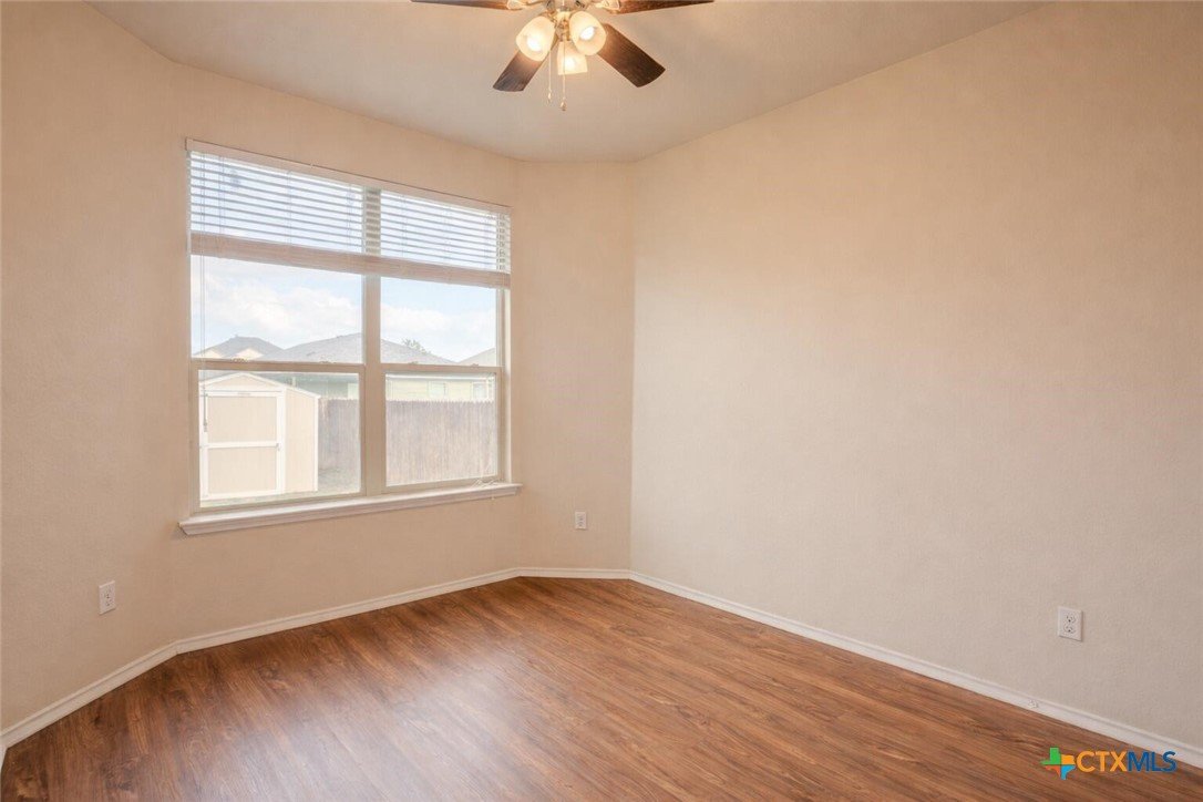 Spacious move-in ready 5-bedroom, 3-bath two-story home with over 3,150 sqft of living space. This spacious floor plan includes multiple living and dining areas, a large kitchen with generous cabinet and counter space, and a flexible layout with a downstairs bedroom and full bath. Upstairs features an additional living area or game room, secondary bedrooms, and a large primary suite with double vanities, separate shower, garden tub, and walk-in closet. Covered front and back porches, fenced backyard, and storage shed add to the appeal. Conveniently located near shopping, dining, medical facilities, schools, and major road access.