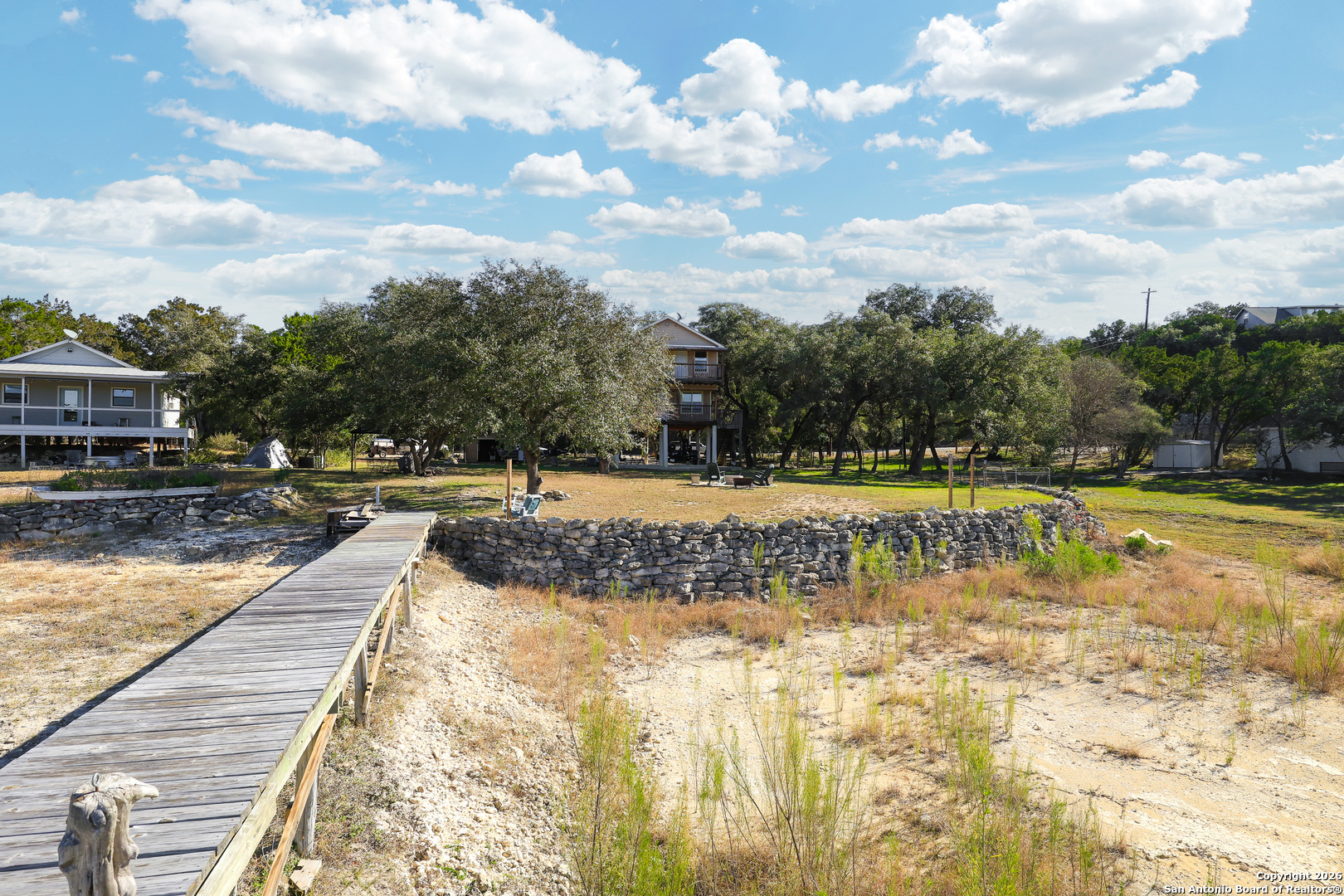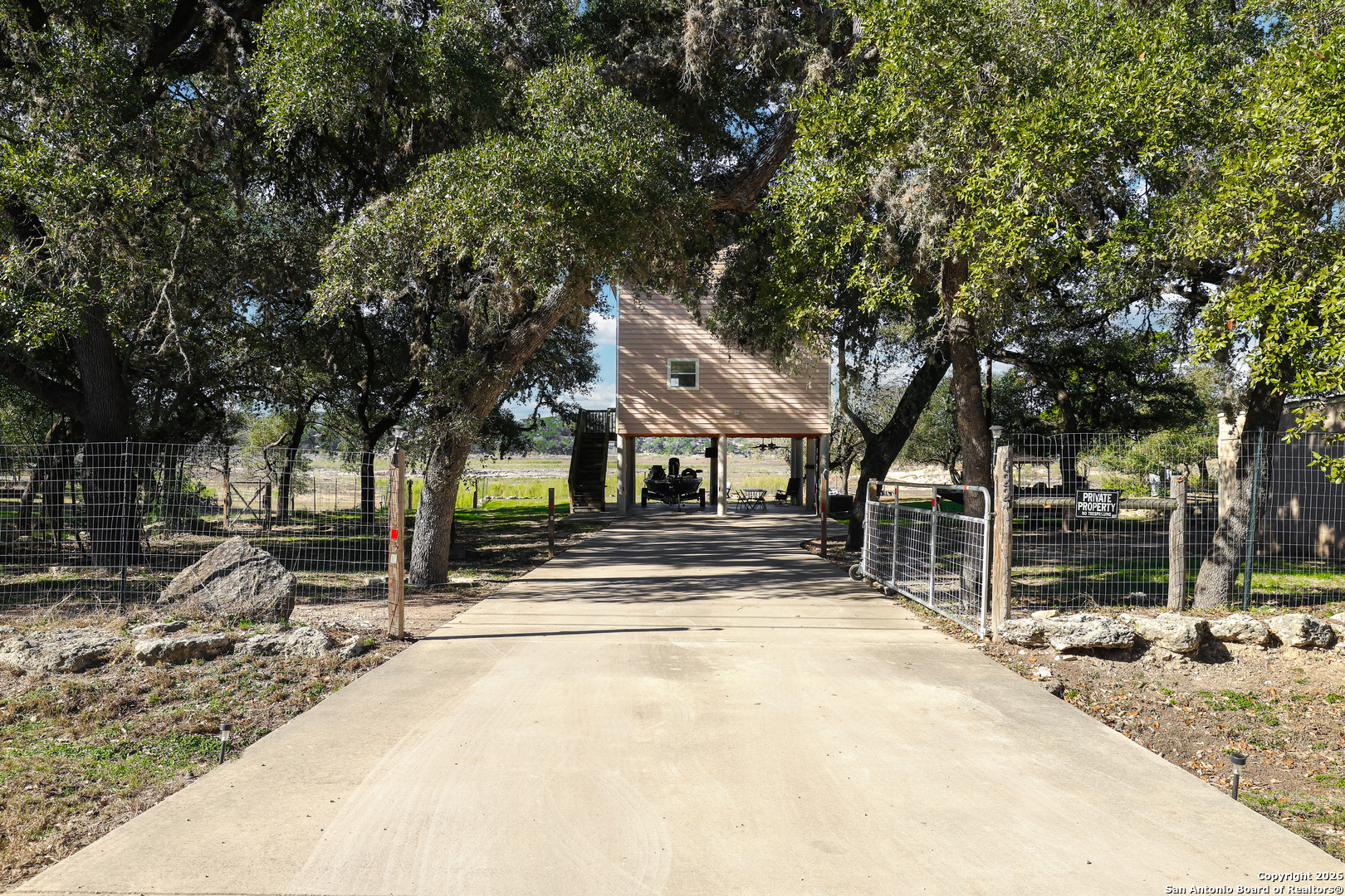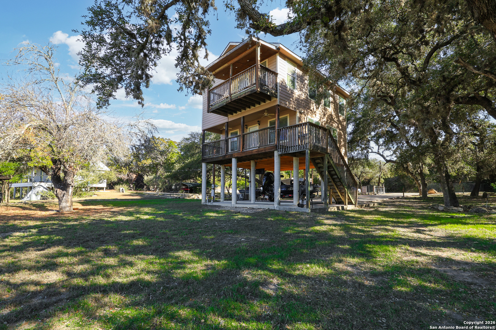 Welcome to Pebble Beach in Lakehills. This beautiful home has 3 bedrooms, 2 bathrooms, and is on .445 acres. It is right on Medina Lake with its own private peer and boat ramp. The home includes a covered porch under the house as well as a storage building with a lot of space. There is a covered porch on the first level and an additional balcony outside the master bedroom. Both overlook the lake. It includes RV hookups and plenty of shade trees which keeps the area cool and ready to entertain. Inside, you'll find an open living area and kitchen on the first level with a full bath and laundry room. Upstairs are 3 bedrooms with another full bathroom. The master has a large walk in closet and door leading to its own private balcony. This home has everything for your family or as a vacation destination. Come and see what it has to offer.