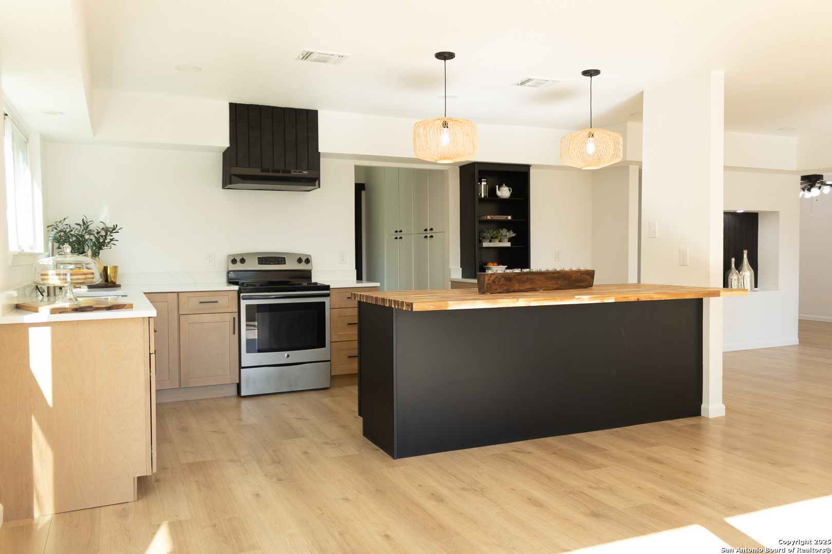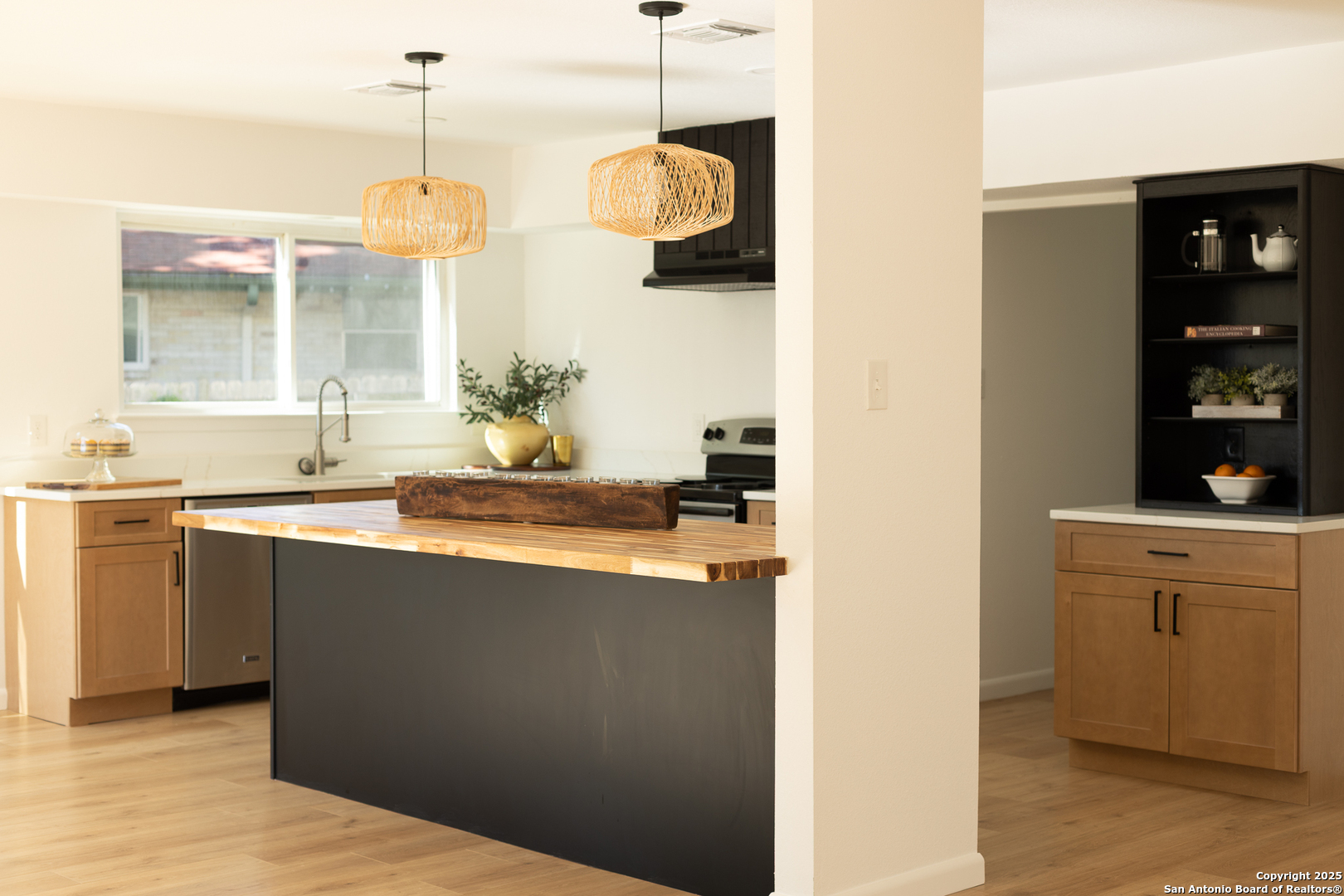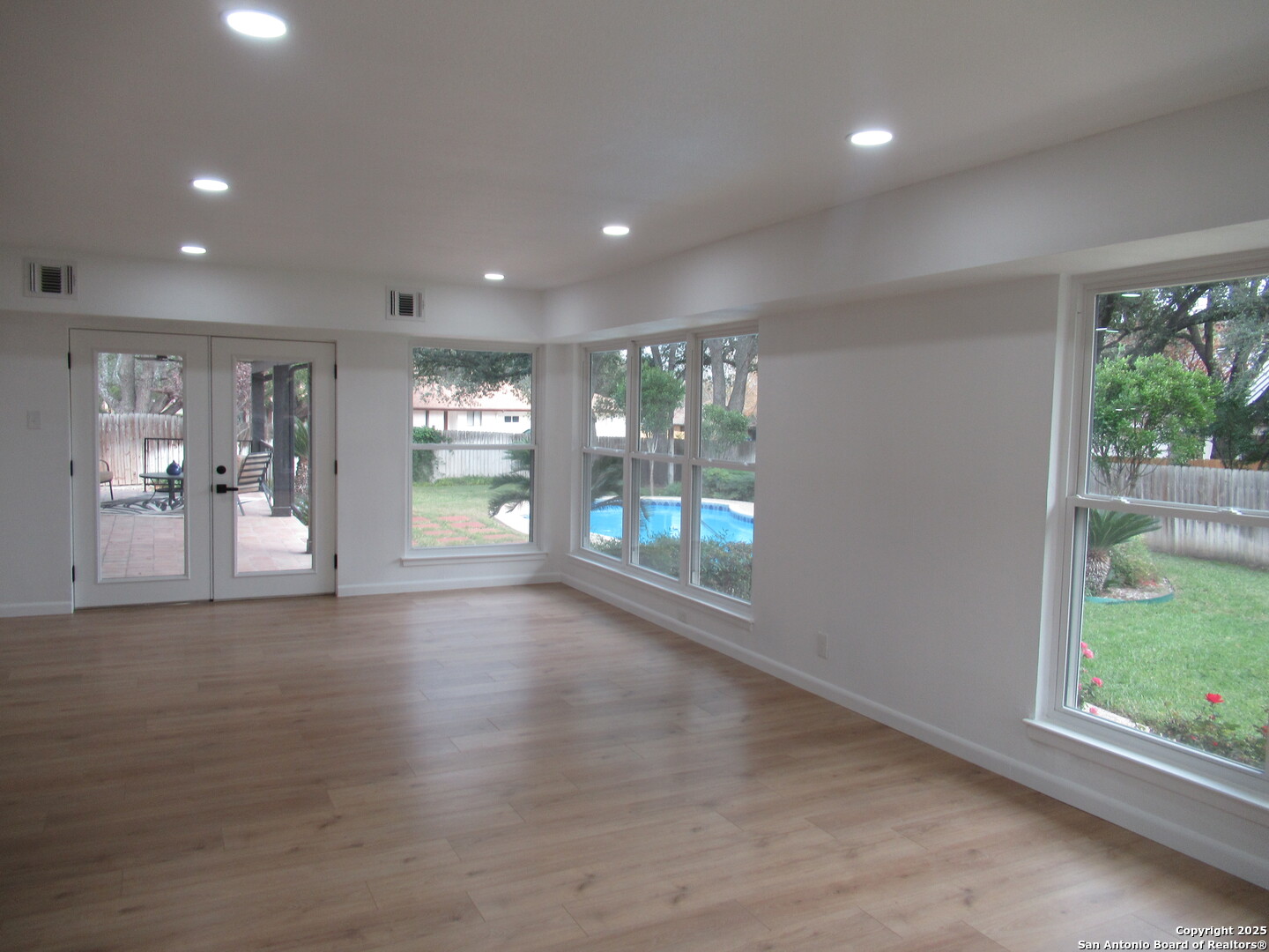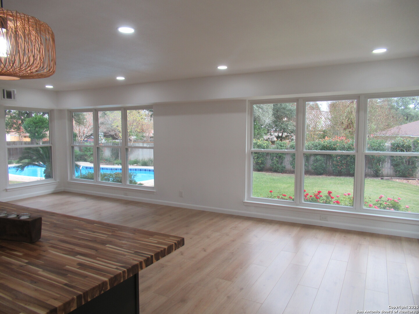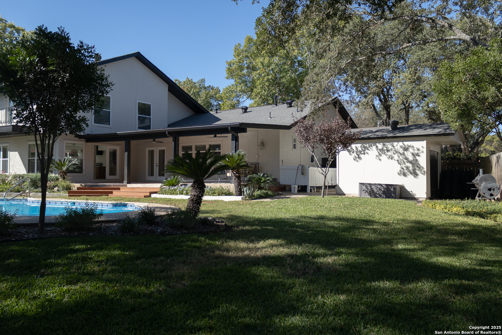 NICELY RENOVATED HOME ON CORNER LOT IN WINDCREST; BETTER THAN NEW WITH CURB APPEAL! 38X4 FRONT PORCH, NEW FRONT DOOR, AND LANDSCAPING. THE INSIDE OF THE HOME HAS BEEN FINISHED OUT LIKE A MAGAZINE SHOOT. NEW PAINT, NEW FLOORING, NEW LIGHTING, AND UPDATED BATHS. THE OPEN FLOOR PLAN HAS AN ISLAND KITCHEN/COMBINED FAMILY ROOM WITH LOTS OF WINDOWS AND LIGHT, PLUS NEW KITCHEN CABINETS, NEW SOLID SURFACE COUNTER TOPS, NEW RECRSSED LIGHTING, WALK-IN PANTRY, AND NEW FIXTURES. PLENTY OF PLACES TO PUT BREAKFAST AREA, PLUS DOUBLE GLASS DOORS WHICH LEAD OUT TO THE 34X11 COVERED PATIO OVER LOOKING IN-GROUND POOL! AMAZING ENTRY LEADS TO HUGE LIVING/DINNING AREA WITH HIGH CEILING, UPDATED LARGE WINDOWS AND NEW DORMERS MAKE IT BRIGHT AND LIGHT, PLUS BUTLER PANTRY TYPE AREA WITH WINE FRIG ALONG WITH SMART ELECTRIC FIREPLACE. SECONDARY BEDROOM DOWNSTAIRS COULD BE SECOND PRIMARY OR MOTHER-IN-LAW AND HAS VIEW TO THE POOL. UPSTAIRS MAIN BEDROOM FEATURES DECORATIVE TRAY CEILING, WALK-IN CLOSEST WITH BUILT-INS, UPDATED MAIN BATH WITH LARGE WALK-IN SHOWER, PLUS WROUGHT IRON BALCONY WITH TREX DECKING. EVEN THE LAUDRY ROOM HAS A PICTURE WINDOW; LOOKS NICE! BOTTOM LINE IS THIS CUSTOM HOME HAS MANY EXTRA DETAILS AND FEATURES AND IS READY FOR MOVE IN!!