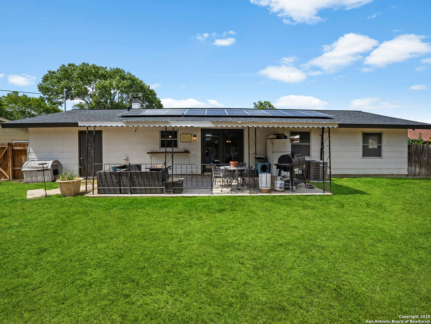 Well-maintained 4-bedroom, 2-bath home with a 1-car garage, situated on a spacious 0.21-acre lot with a greenbelt for added privacy. Built in 1966, this property features a new roof (2022) and new AC compressor (2022) for peace of mind. Gas water heater installed in 2013. The kitchen is equipped with a natural gas stove, refrigerator, microwave, and dishwasher-all included. Enjoy outdoor living on the covered back patio, perfect for relaxing or entertaining. Plus save a ton on energy bills with a 500MwH Solar System. Conveniently located near schools, shopping, and major highways. Don't miss this great opportunity in an established neighborhood!