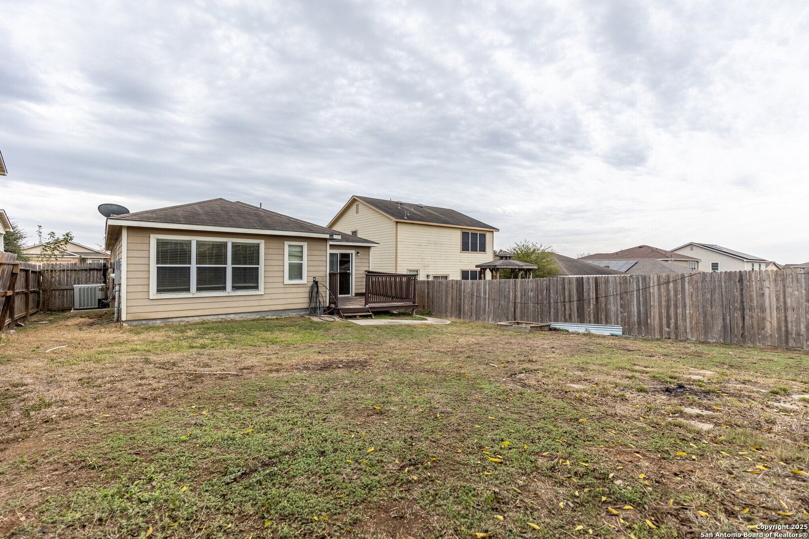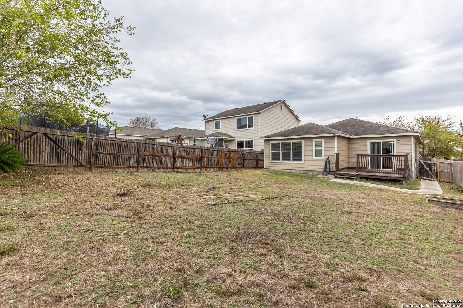 Available Immediately! Additional showing options available! Great 3-bedroom, 2-bathroom, one-story home with an open floor plan, featuring wide open spaces, plenty of natural light, and nicely sized bedrooms. Vaulted ceilings and a built-in desk. Upgraded countertops, bay window in kitchen, laminate floors, 42" garden tub in Master. Gorgeous large backyard with deck and lots of outdoor living space. 10 minutes to SAMMC/Ft. Sam. Short commute to Randolph AFB. Shopping nearby. Don t miss this one and Schedule your showing today!
