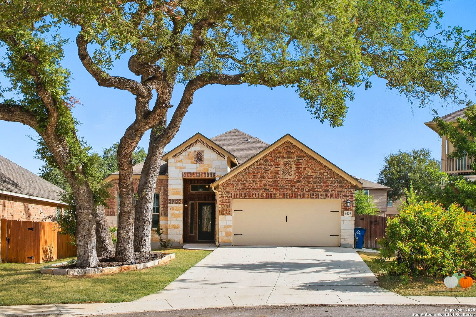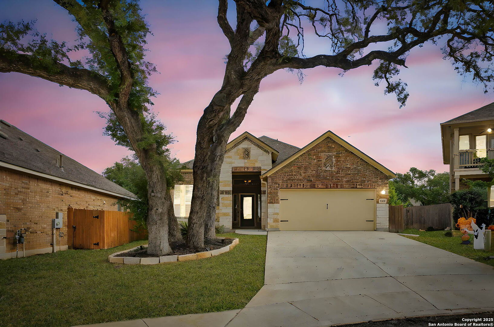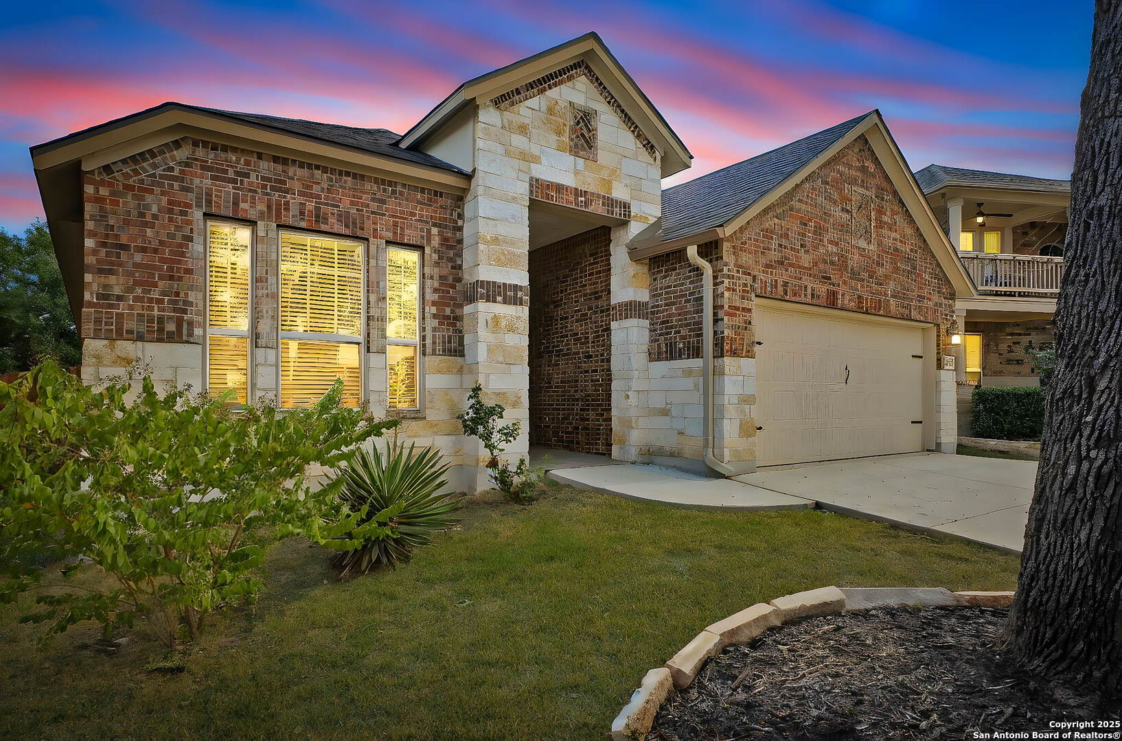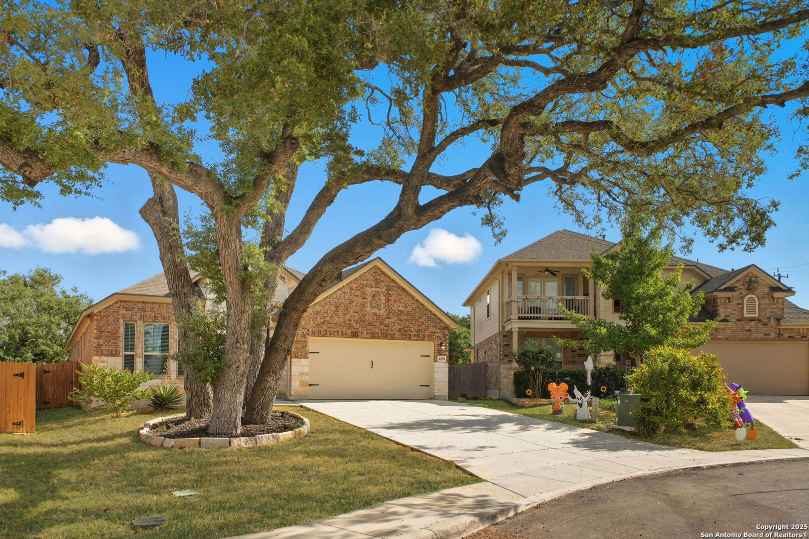 Stunning One-Story Home with Dual Master Suites in Gated Community! This beautifully designed one-story home is perfectly situated on a quiet cul-de-sac in a secure gated neighborhood with no steps throughout - a rare find in this community! As you step inside you are greeted by a beautiful glass and wood front door then welcomed by soaring 10-foot ceilings, a bright open floor plan, and elegant finishes that create a warm and inviting atmosphere. The heart of the home features a gourmet kitchen with granite countertops, stainless steel appliances, a gas stove, undermount sink, and rich mocha 42-inch cabinets, ideal for both daily living and entertaining. This floor plan stands out with two spacious primary suites, providing exceptional flexibility and comfort for multi-generational living, guests, or private retreats. The home also includes a versatile flex space perfect for a home office, game room, or theater room, offering even more room to fit your lifestyle. Enjoy outdoor living on the charming front porch and large covered back patio, surrounded by mature oak trees that provide shade and natural beauty. Located within walking distance to the school and just steps from amazing community amenities, including two community centers, swimming pools, playgrounds, walking trails, and activity courts, this home truly offers a lifestyle of comfort and convenience. With quick and easy access to major highways like 281, 1604, and 35 all your entertaining, dinning, and shopping needs are just minutes away. 10 minutes away from the JW Marriot resort and hotel also offers world class golfing and amenities just minutes away. Don't miss your chance to own this rare single-story gem in a prime location - schedule your showing today!