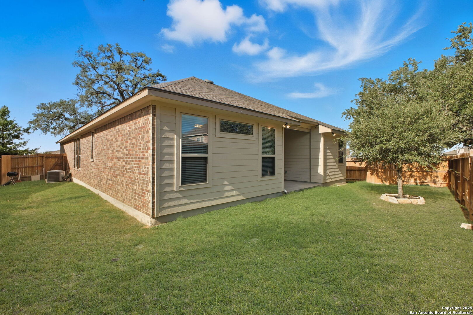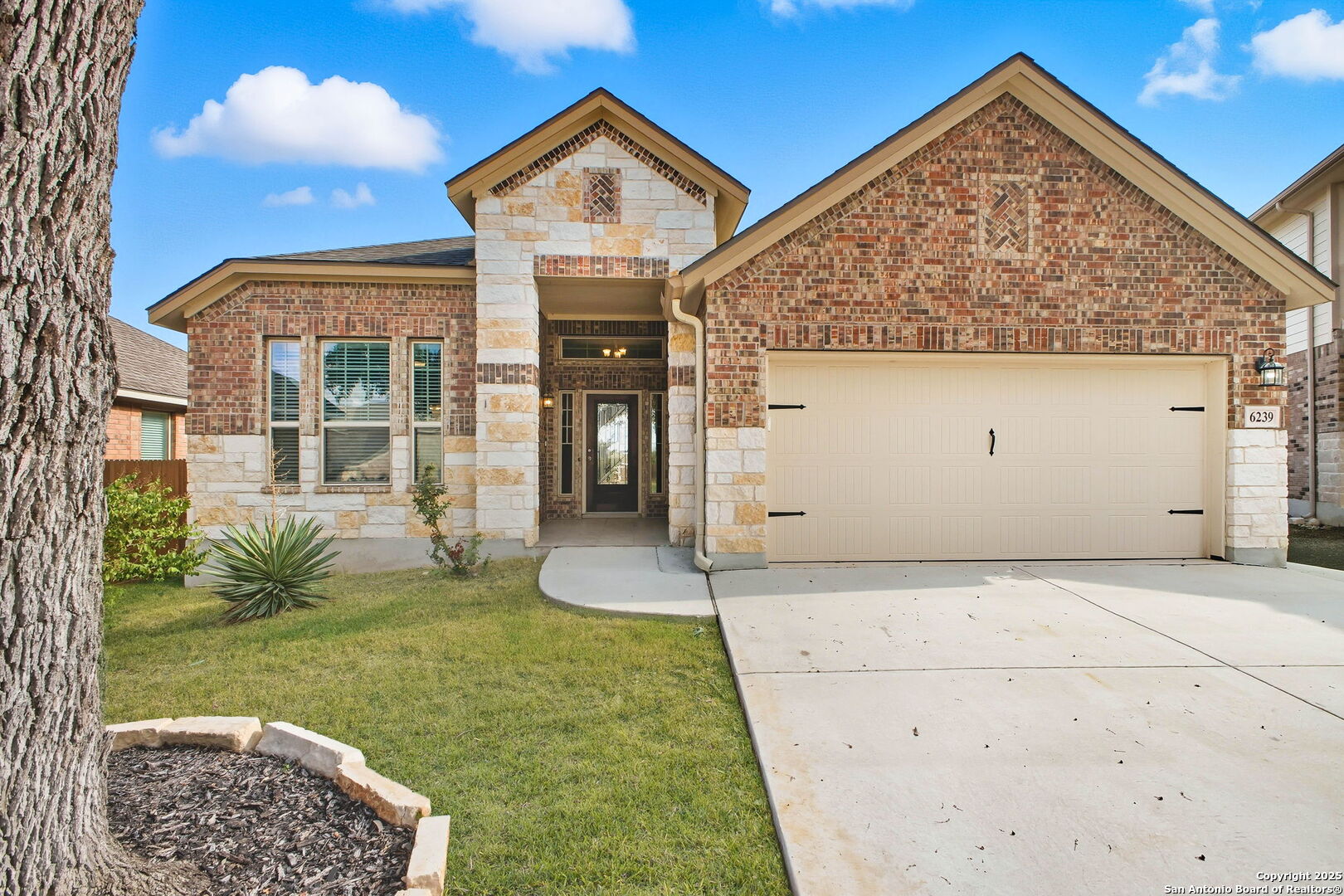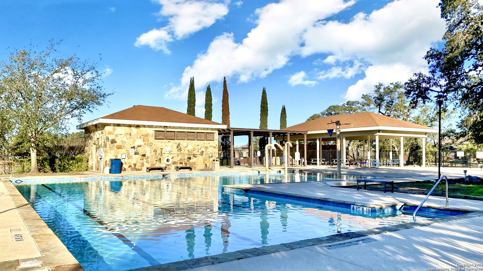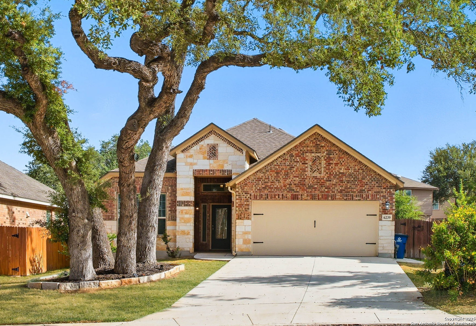 Stunning One-Story Home with Dual Master Suites in Gated Community! This beautifully designed one-story home is perfectly situated on a quiet cul-de-sac in a secure gated neighborhood with no steps throughout - a rare find in this community! As you step inside you are greeted by a beautiful glass and wood front door then welcomed by soaring 10-foot ceilings, a bright open floor plan, and elegant finishes that create a warm and inviting atmosphere. The heart of the home features a gourmet kitchen with granite countertops, stainless steel appliances, a gas stove, undermount sink, and rich mocha 42-inch cabinets, ideal for both daily living and entertaining. This floor plan stands out with two spacious primary suites, providing exceptional flexibility and comfort for multi-generational living, guests, or private retreats. The home also includes a versatile flex space perfect for a home office, game room, or theater room, offering even more room to fit your lifestyle. Enjoy outdoor living on the charming front porch and large covered back patio, surrounded by mature oak trees that provide shade and natural beauty. Located within walking distance to the school and just steps from amazing community amenities, including two community centers, swimming pools, playgrounds, walking trails, and activity courts, this home truly offers a lifestyle of comfort and convenience. With quick and easy access to major highways like 281, 1604, and 35 all your entertaining, dinning, and shopping needs are just minutes away. 10 minutes away from the JW Marriot resort and hotel also offers world class golfing and amenities just minutes away. Don't miss your chance to own this rare single-story gem in a prime location - schedule your showing today!