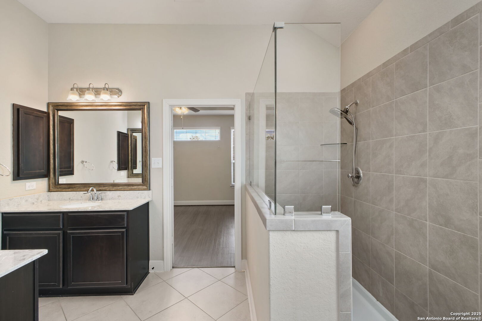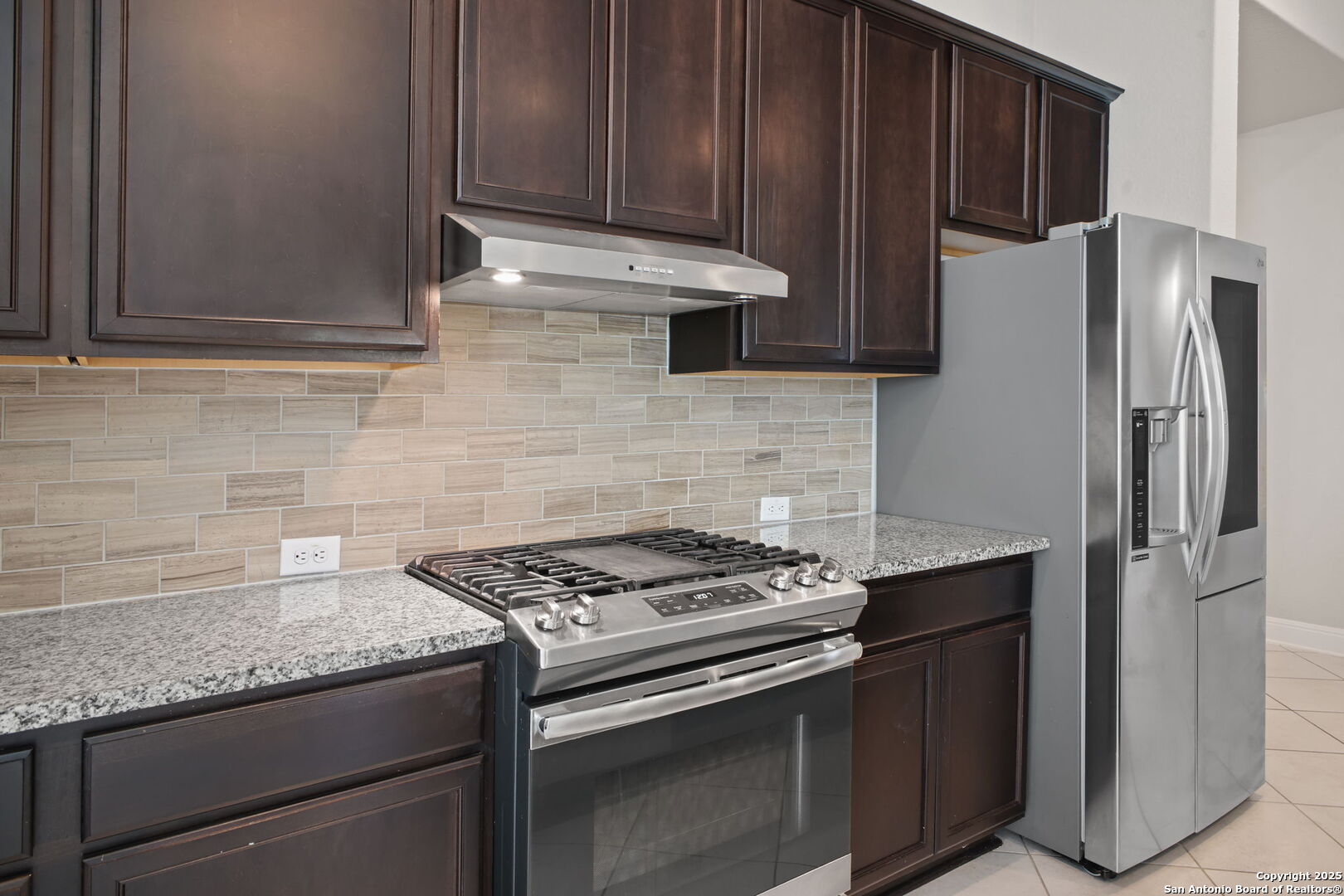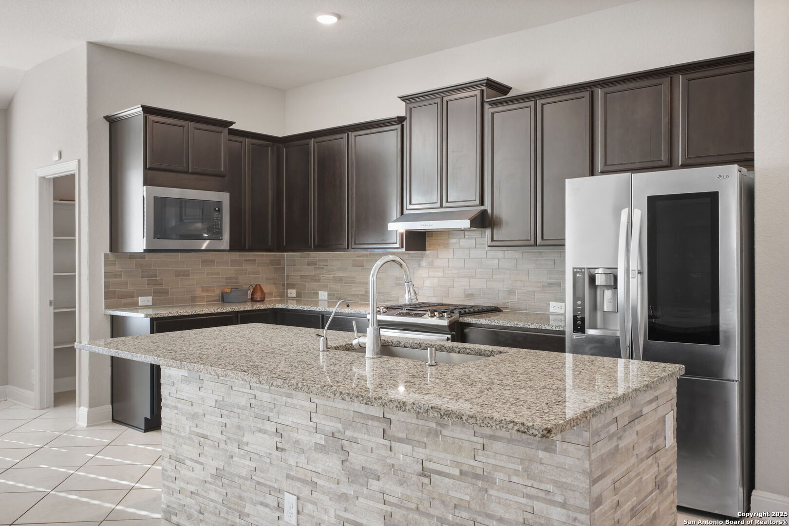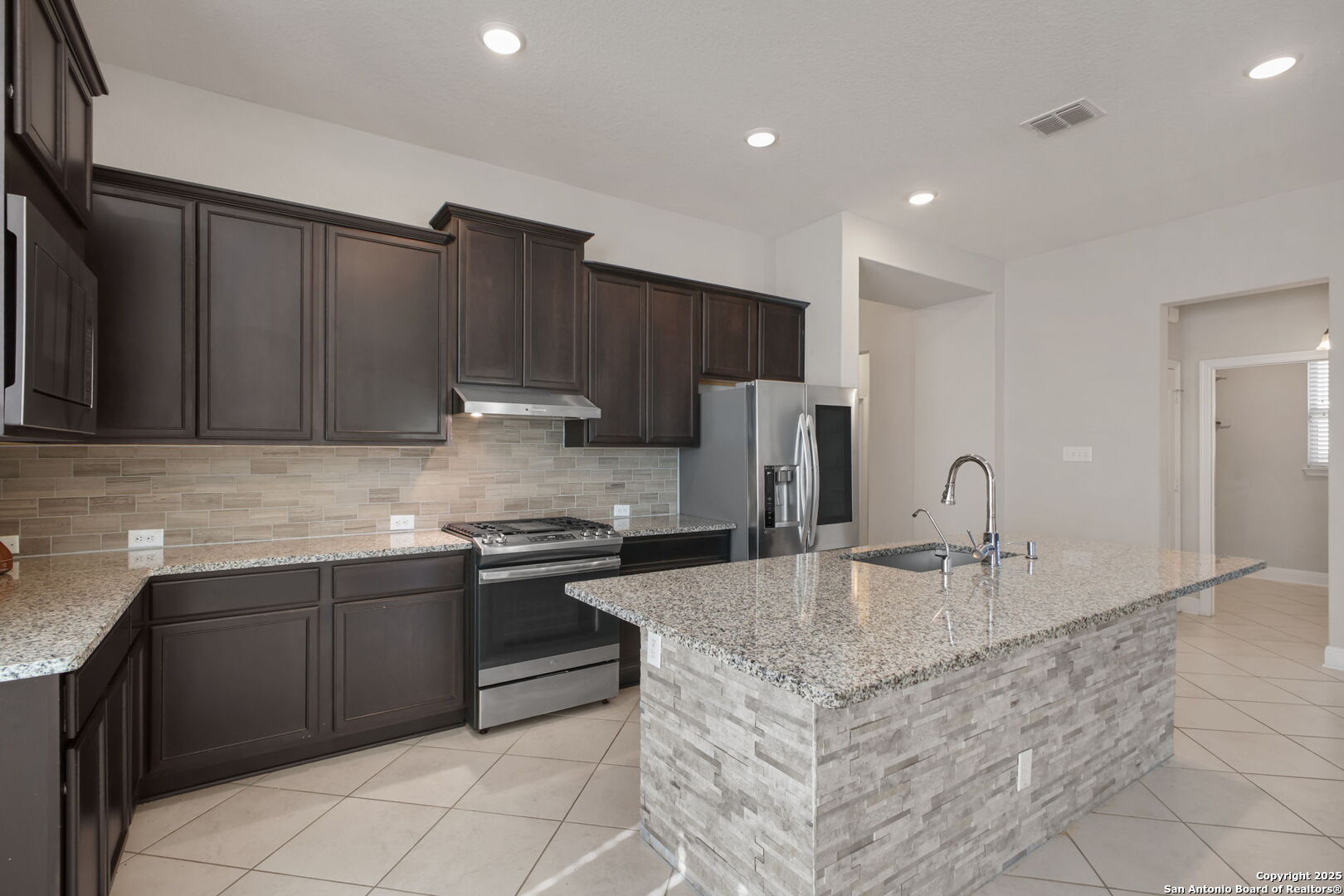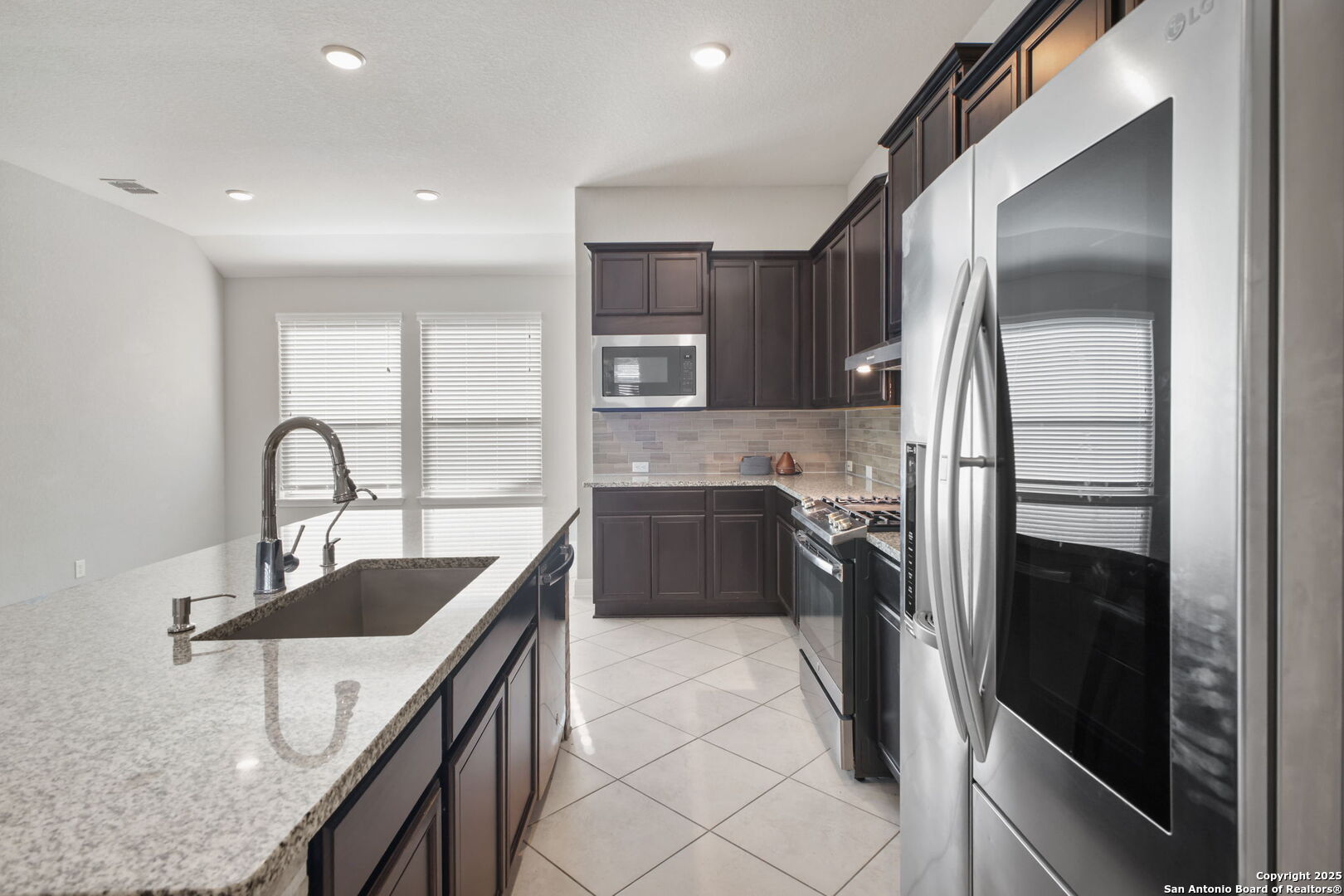 Stunning One-Story Home with Dual Master Suites in Gated Community! This beautifully designed one-story home is perfectly situated on a quiet cul-de-sac in a secure gated neighborhood with no steps throughout - a rare find in this community! As you step inside you are greeted by a beautiful glass and wood front door then welcomed by soaring 10-foot ceilings, a bright open floor plan, and elegant finishes that create a warm and inviting atmosphere. The heart of the home features a gourmet kitchen with granite countertops, stainless steel appliances, a gas stove, undermount sink, and rich mocha 42-inch cabinets, ideal for both daily living and entertaining. This floor plan stands out with two spacious primary suites, providing exceptional flexibility and comfort for multi-generational living, guests, or private retreats. The home also includes a versatile flex space perfect for a home office, game room, or theater room, offering even more room to fit your lifestyle. Enjoy outdoor living on the charming front porch and large covered back patio, surrounded by mature oak trees that provide shade and natural beauty. Located within walking distance to the school and just steps from amazing community amenities, including two community centers, swimming pools, playgrounds, walking trails, and activity courts, this home truly offers a lifestyle of comfort and convenience. With quick and easy access to major highways like 281, 1604, and 35 all your entertaining, dinning, and shopping needs are just minutes away. 10 minutes away from the JW Marriot resort and hotel also offers world class golfing and amenities just minutes away. Don't miss your chance to own this rare single-story gem in a prime location - schedule your showing today!