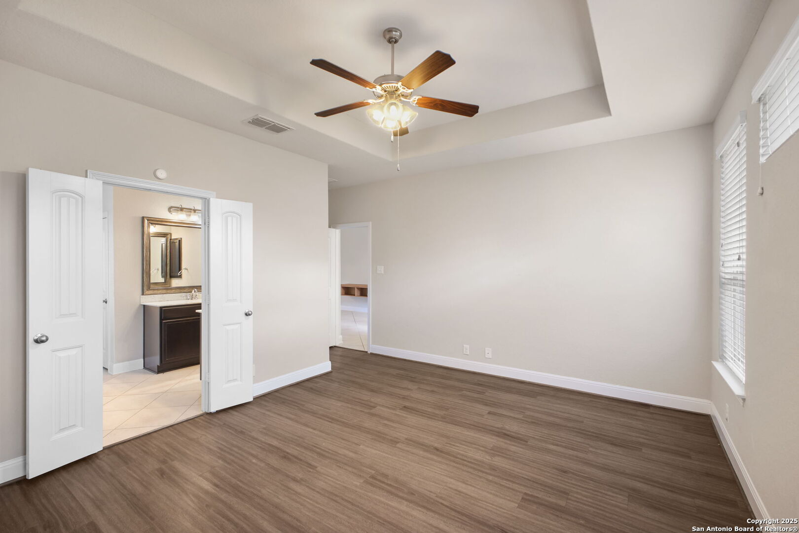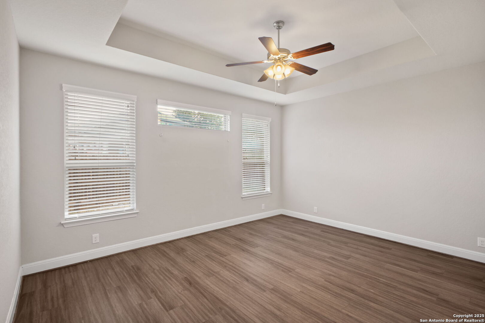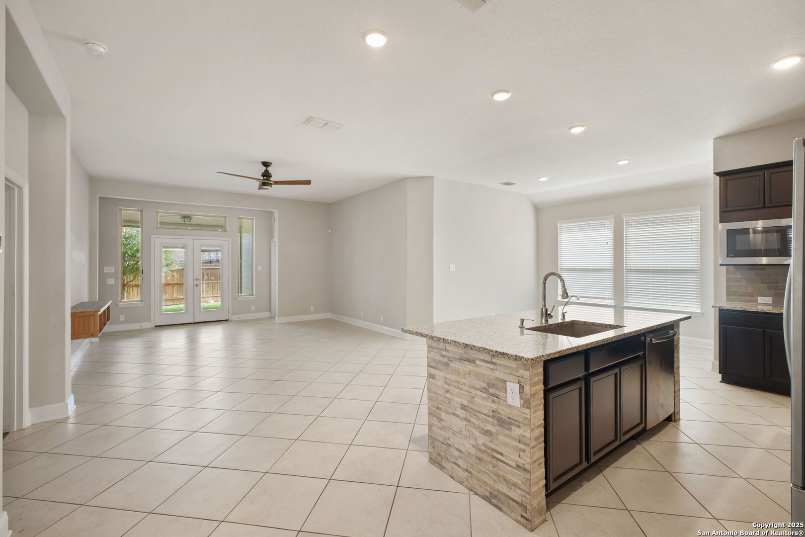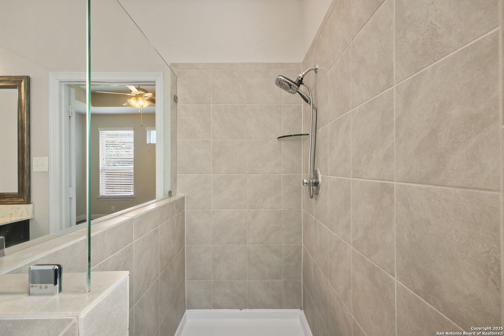 Stunning One-Story Home with Dual Master Suites in Gated Community! This beautifully designed one-story home is perfectly situated on a quiet cul-de-sac in a secure gated neighborhood with no steps throughout - a rare find in this community! As you step inside you are greeted by a beautiful glass and wood front door then welcomed by soaring 10-foot ceilings, a bright open floor plan, and elegant finishes that create a warm and inviting atmosphere. The heart of the home features a gourmet kitchen with granite countertops, stainless steel appliances, a gas stove, undermount sink, and rich mocha 42-inch cabinets, ideal for both daily living and entertaining. This floor plan stands out with two spacious primary suites, providing exceptional flexibility and comfort for multi-generational living, guests, or private retreats. The home also includes a versatile flex space perfect for a home office, game room, or theater room, offering even more room to fit your lifestyle. Enjoy outdoor living on the charming front porch and large covered back patio, surrounded by mature oak trees that provide shade and natural beauty. Located within walking distance to the school and just steps from amazing community amenities, including two community centers, swimming pools, playgrounds, walking trails, and activity courts, this home truly offers a lifestyle of comfort and convenience. With quick and easy access to major highways like 281, 1604, and 35 all your entertaining, dinning, and shopping needs are just minutes away. 10 minutes away from the JW Marriot resort and hotel also offers world class golfing and amenities just minutes away. Don't miss your chance to own this rare single-story gem in a prime location - schedule your showing today!