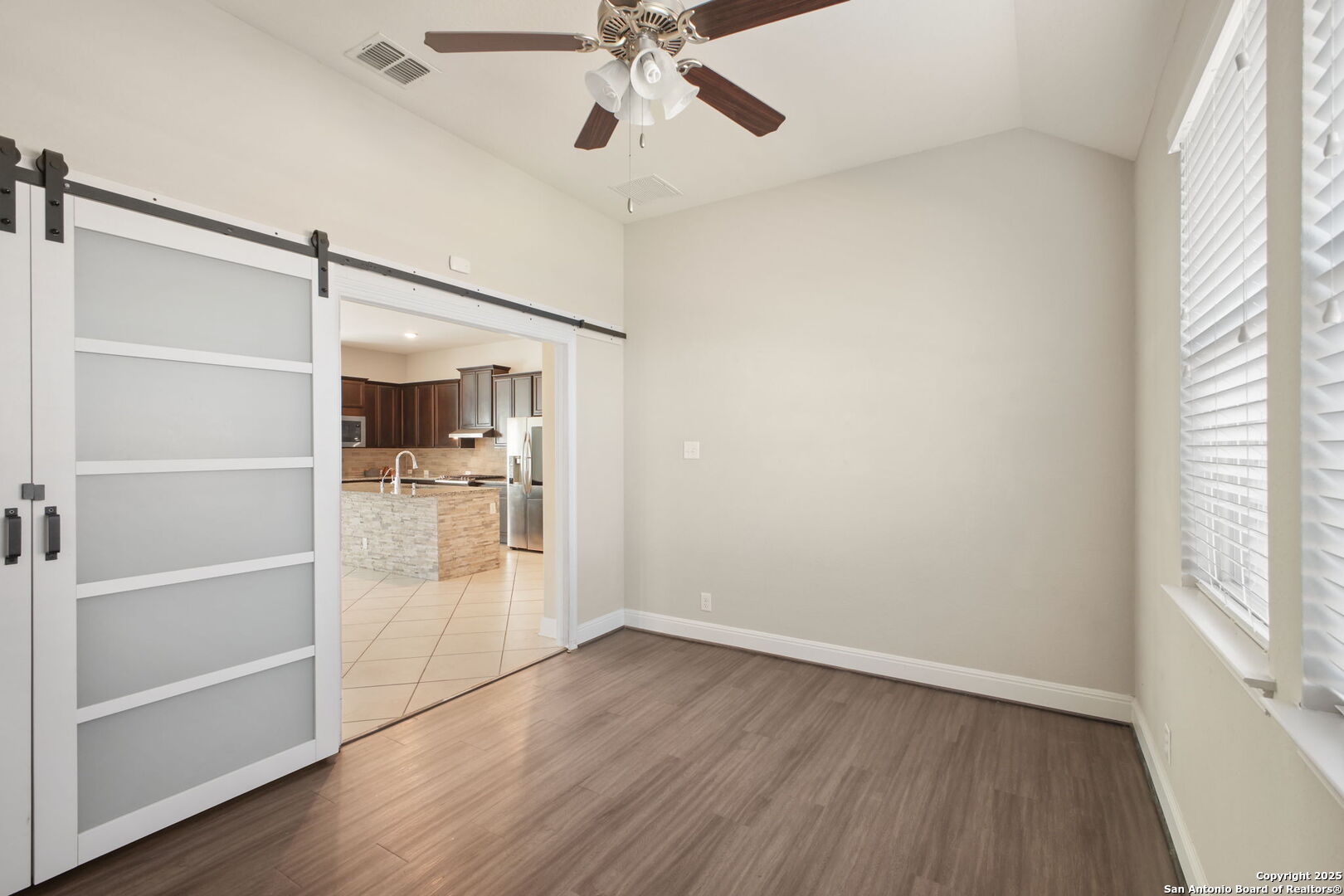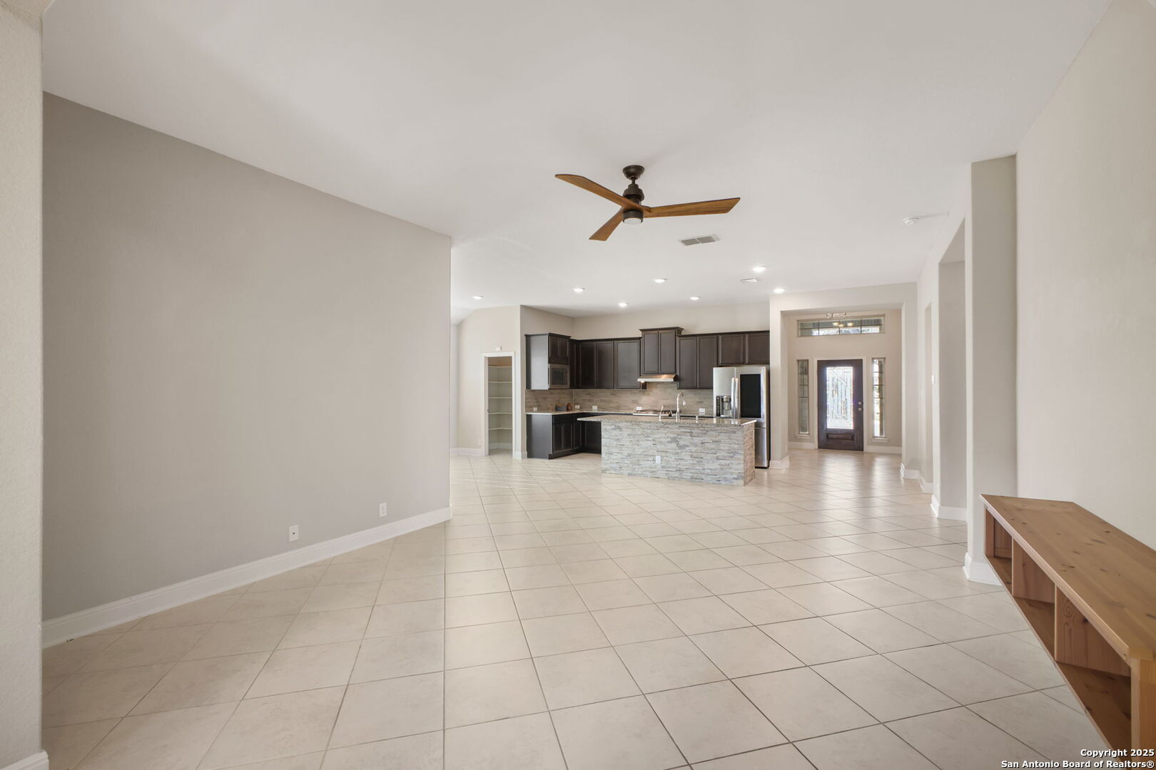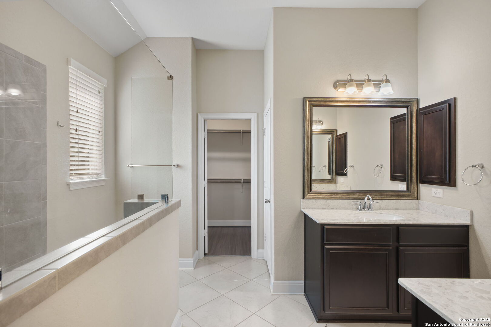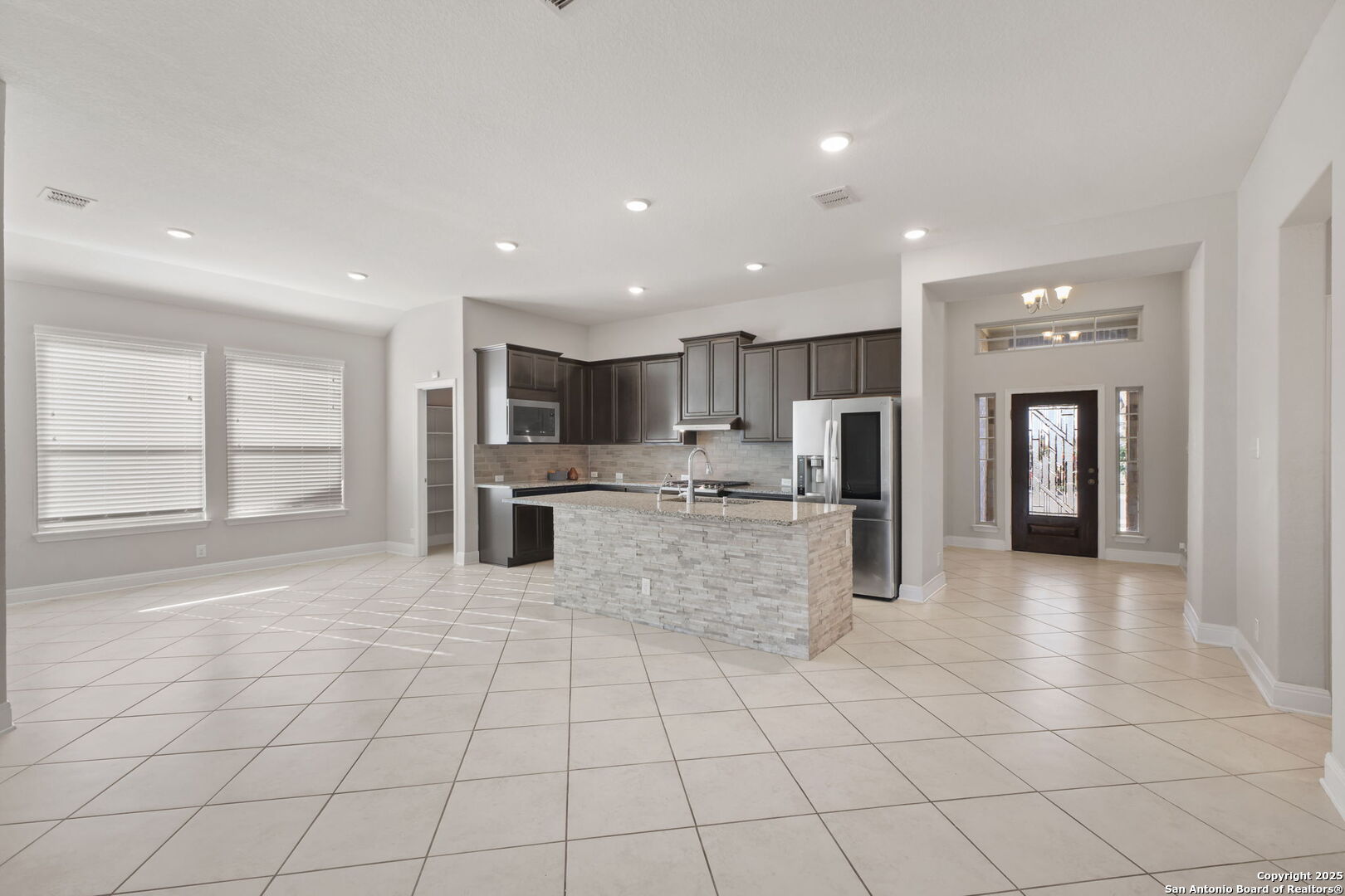 Stunning One-Story Home with Dual Master Suites in Gated Community! This beautifully designed one-story home is perfectly situated on a quiet cul-de-sac in a secure gated neighborhood with no steps throughout - a rare find in this community! As you step inside you are greeted by a beautiful glass and wood front door then welcomed by soaring 10-foot ceilings, a bright open floor plan, and elegant finishes that create a warm and inviting atmosphere. The heart of the home features a gourmet kitchen with granite countertops, stainless steel appliances, a gas stove, undermount sink, and rich mocha 42-inch cabinets, ideal for both daily living and entertaining. This floor plan stands out with two spacious primary suites, providing exceptional flexibility and comfort for multi-generational living, guests, or private retreats. The home also includes a versatile flex space perfect for a home office, game room, or theater room, offering even more room to fit your lifestyle. Enjoy outdoor living on the charming front porch and large covered back patio, surrounded by mature oak trees that provide shade and natural beauty. Located within walking distance to the school and just steps from amazing community amenities, including two community centers, swimming pools, playgrounds, walking trails, and activity courts, this home truly offers a lifestyle of comfort and convenience. With quick and easy access to major highways like 281, 1604, and 35 all your entertaining, dinning, and shopping needs are just minutes away. 10 minutes away from the JW Marriot resort and hotel also offers world class golfing and amenities just minutes away. Don't miss your chance to own this rare single-story gem in a prime location - schedule your showing today!