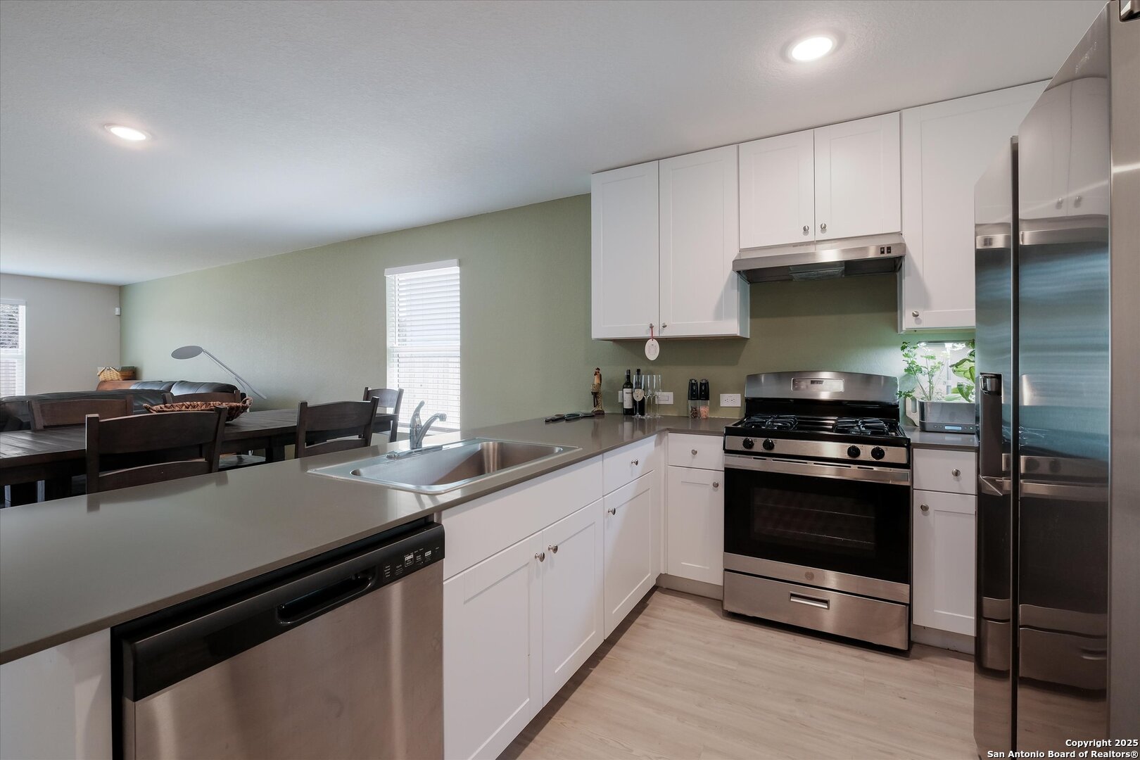 Beautiful One-Story Home in Sought-After Johnson Ranch area - Comal ISD. Why wait to build when this better-than-new one-year-old home is ready for you now? Located in one of the highly desirable Johnson Ranch communities, served by award-winning Comal County Schools, this gently lived-in single-story offers thoughtful upgrades that make it truly move-in ready. Enjoy a copper line drip irrigation system, flagstone patio, new blinds throughout, and freshly painted accent walls-all the finishing touches already done for you. The open-concept living area flows seamlessly into a stunning kitchen with a gas stove, perfect for everyday meals and entertaining. Whether you're a growing family or an empty nester looking to "right-size," you'll love the easy, single-level living. Refrigerator and washer/dryer are available for purchase, making the move-in process even smoother. Johnson Ranch offers resort-style amenities including pools, playgrounds, walking trails, and more-plenty of opportunities for fun, relaxation, and connection. Come see why this home is the perfect blend of comfort, convenience, and community!