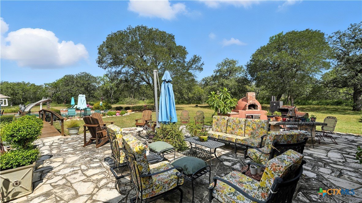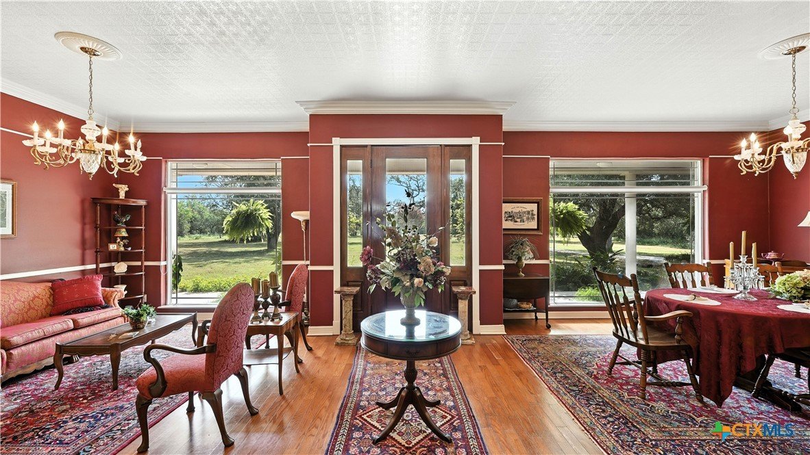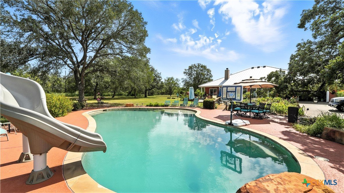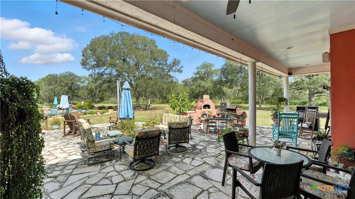 Exquisite 3,300 sq ft custom estate on 11+ unrestricted acres with a 1,000 sq ft covered porch, in-ground pool, and private guest casita. Chef’s kitchen with premium appliances, commercial grade gas range and refrigerator, butcher block island, and butler’s pantry. Thoughtful layout with formal living, dining, great room with fireplace, breakfast area, and office with murphy bed. Luxe primary suite with spa-style wet room, dual vanity, spacious his and hers closet, safe room and laundry access at the mudroom. Additional third bedroom with private en-suite. Outdoors offers a brick pizza oven, fire pit, greenhouse, garden, native brush, and abundant wildlife. 30x40 insulated workshop, 4-car carport, winding private driveway and ranch fencing. Ag valuation, new HVAC (2025), standing seam metal roof, and fiber internet. Select furnishings negotiable.