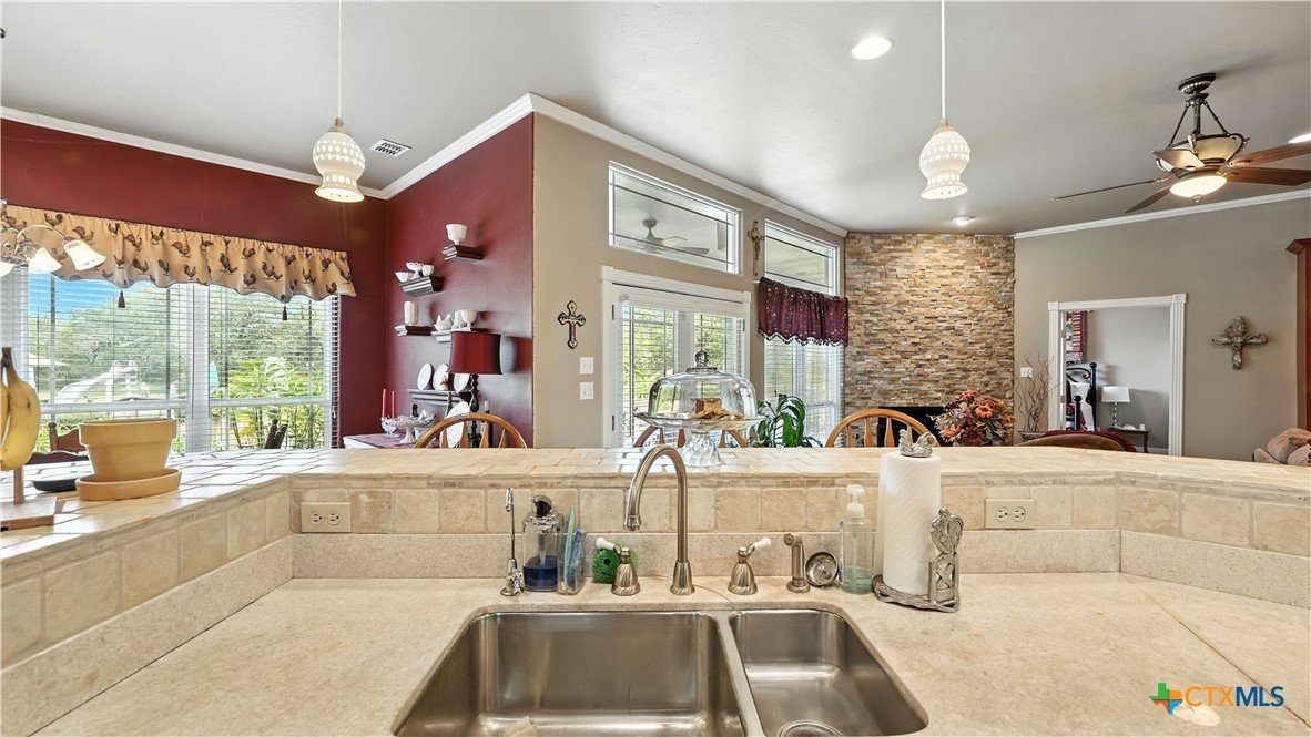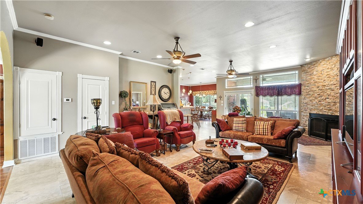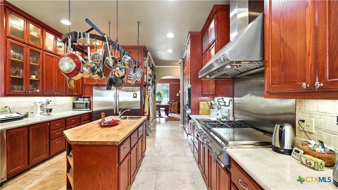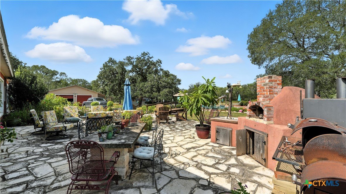 Exquisite 3,300 sq ft custom estate on 11+ unrestricted acres with a 1,000 sq ft covered porch, in-ground pool, and private guest casita. Chef’s kitchen with premium appliances, commercial grade gas range and refrigerator, butcher block island, and butler’s pantry. Thoughtful layout with formal living, dining, great room with fireplace, breakfast area, and office with murphy bed. Luxe primary suite with spa-style wet room, dual vanity, spacious his and hers closet, safe room and laundry access at the mudroom. Additional third bedroom with private en-suite. Outdoors offers a brick pizza oven, fire pit, greenhouse, garden, native brush, and abundant wildlife. 30x40 insulated workshop, 4-car carport, winding private driveway and ranch fencing. Ag valuation, new HVAC (2025), standing seam metal roof, and fiber internet. Select furnishings negotiable.