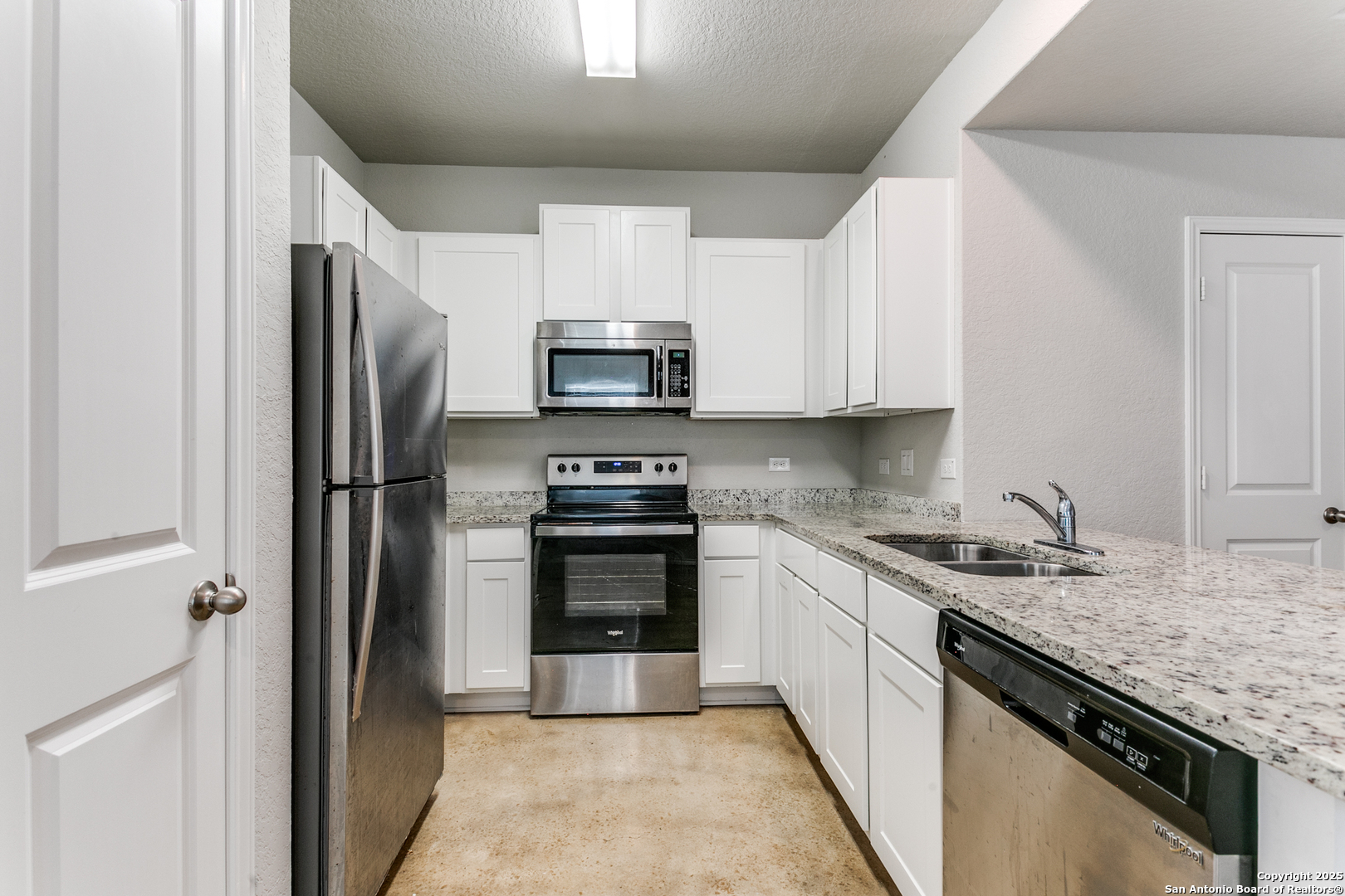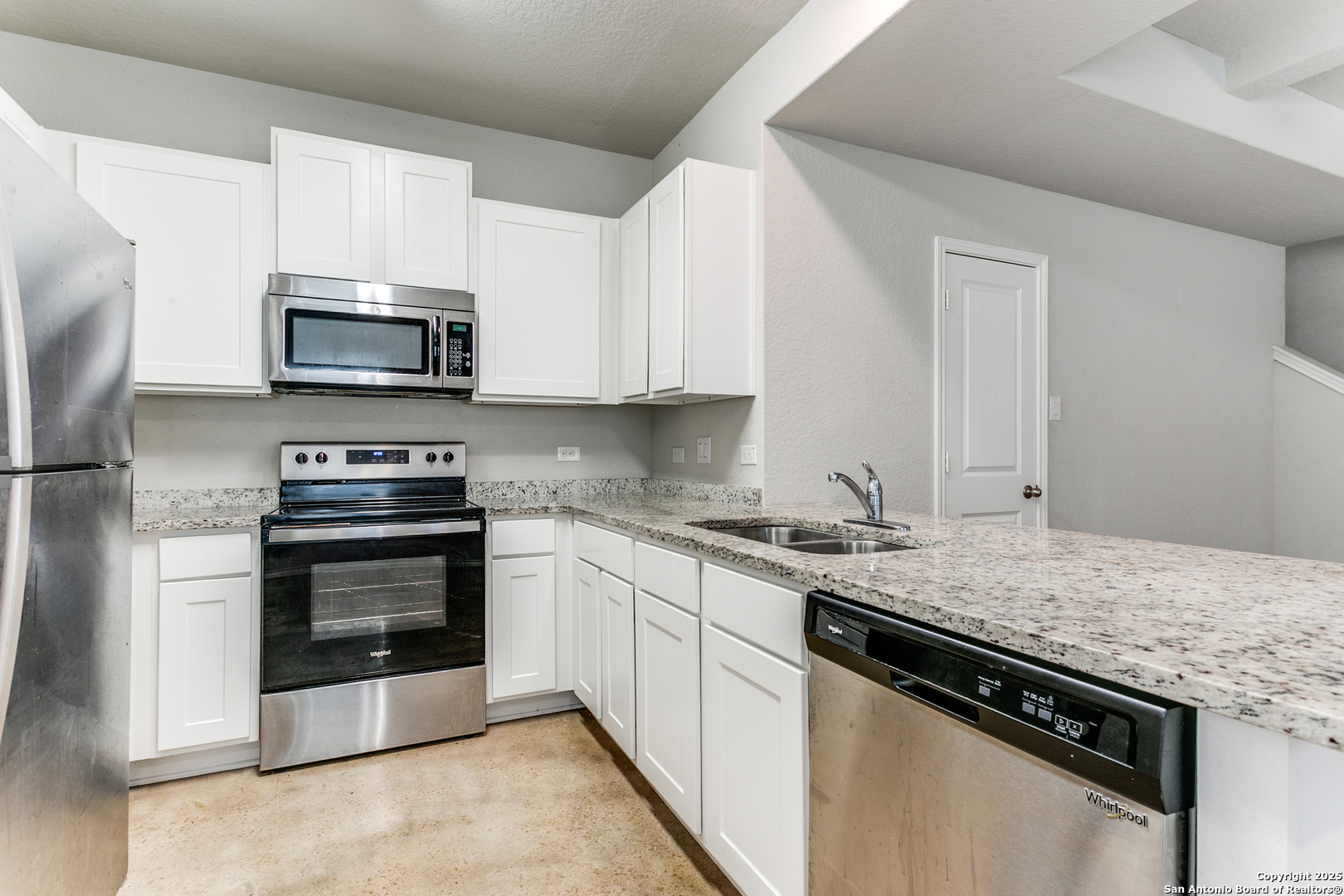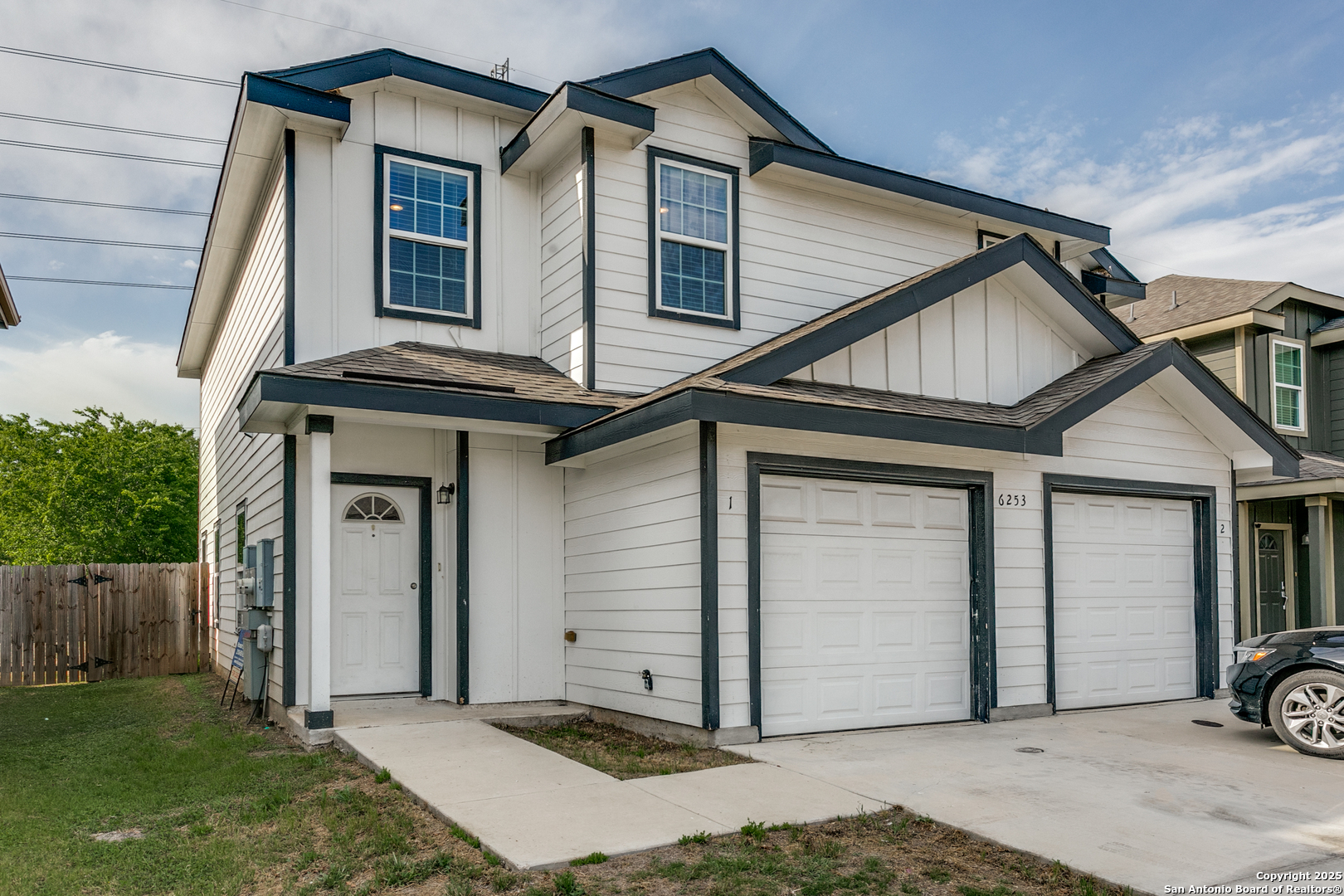 Awesome investment opportunity! Check out this amazing duplex in Northeast San Antonio- each unit has 3 bedrooms, 2.5 baths, a one-car garage, and a private fenced backyard. Downstairs, you'll find a welcoming entry that opens up to a spacious living area and a kitchen/dining combo with cool stained concrete floors and tall 9-foot ceilings. The kitchens come with stainless steel appliances, granite countertops, and stylish shaker cabinets. Upstairs, the master suites have their own bathrooms and walk-in clo